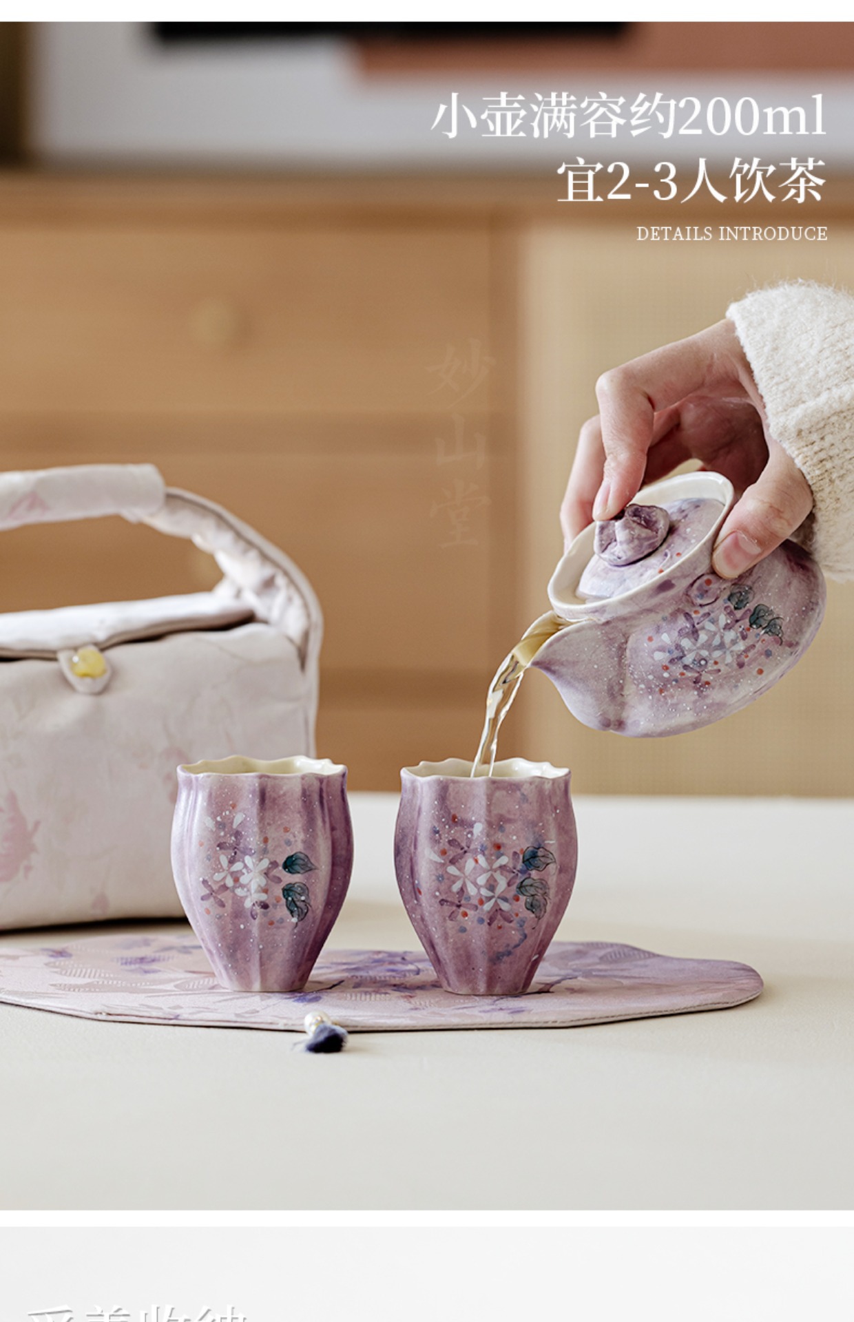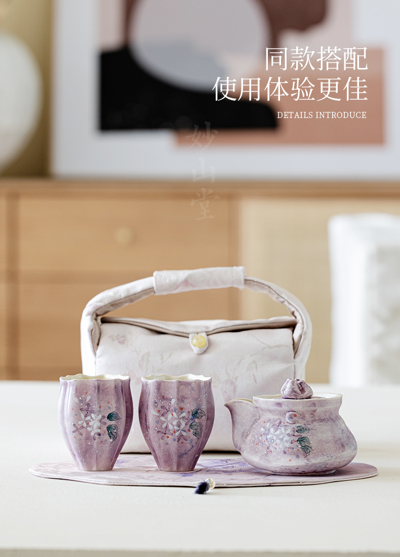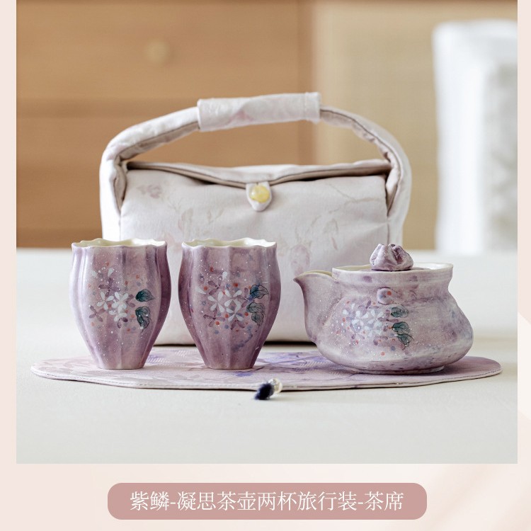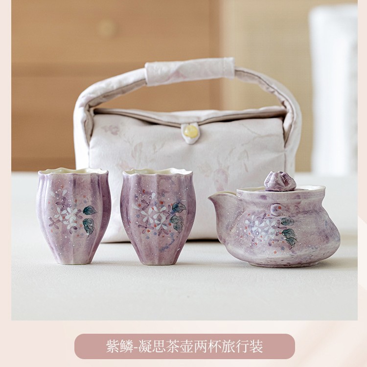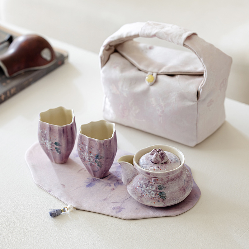 Outdoor portable tea set with one pot and two cups, high aesthetic travel tea set, tea making hand held pot, tea cup with storage bag