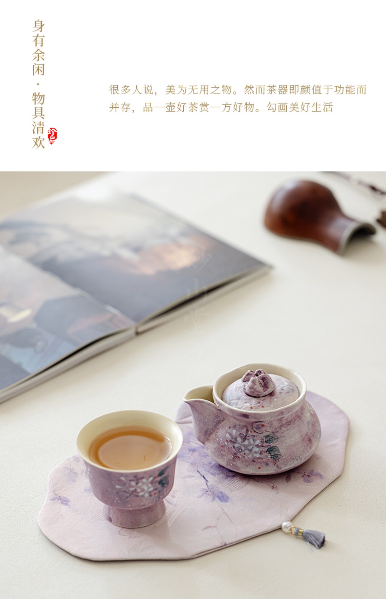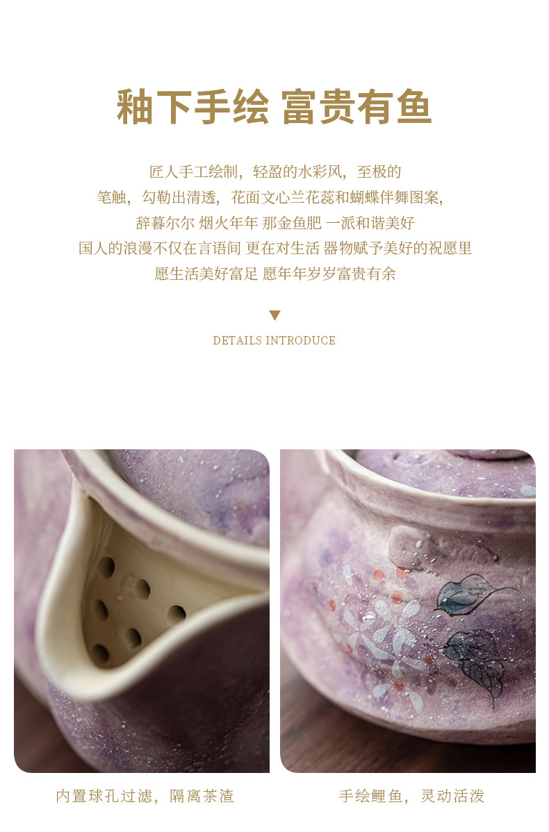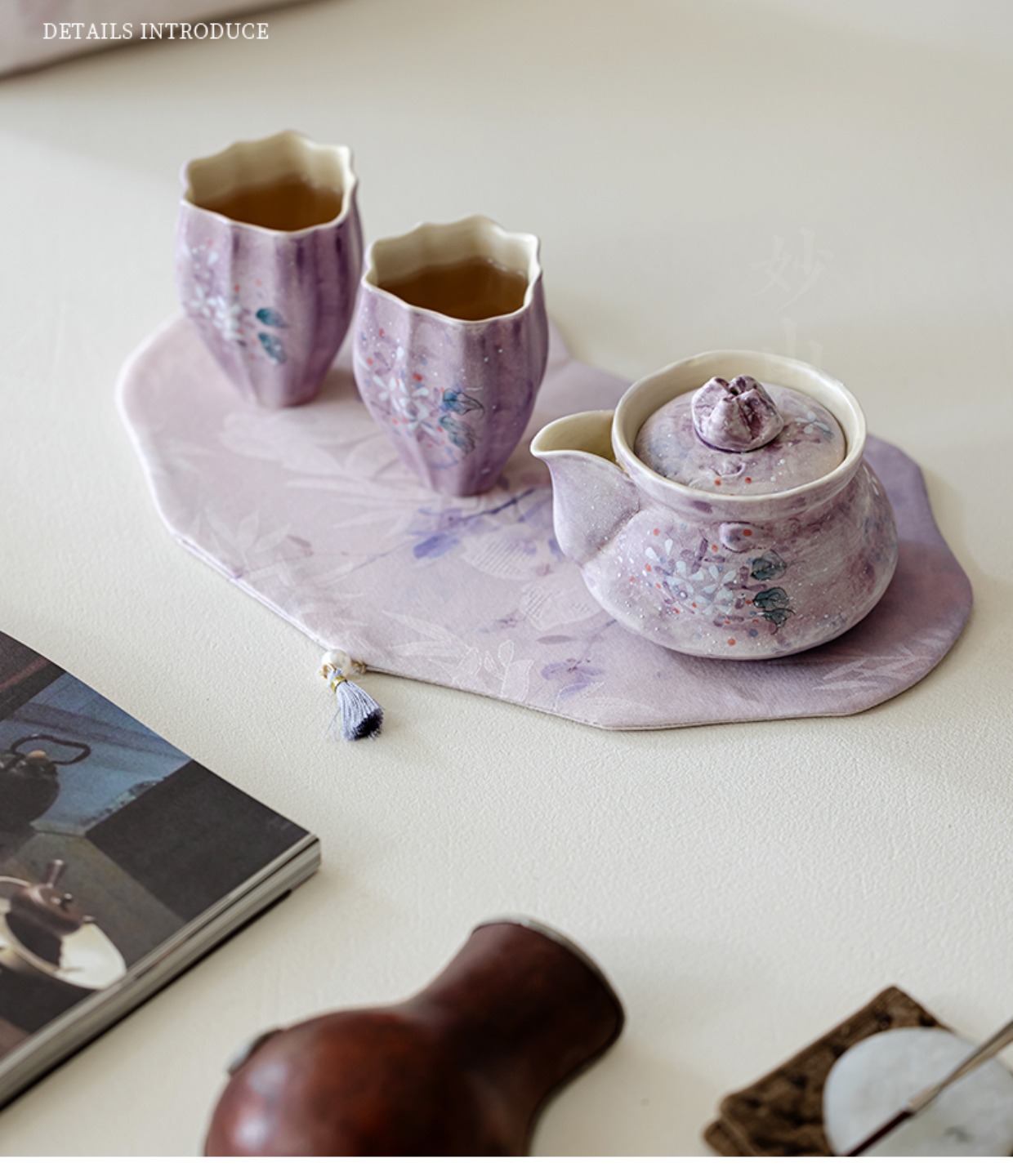 Outdoor portable tea set with one pot and two cups, high aesthetic travel tea set, tea making hand held pot, tea cup with storage bag