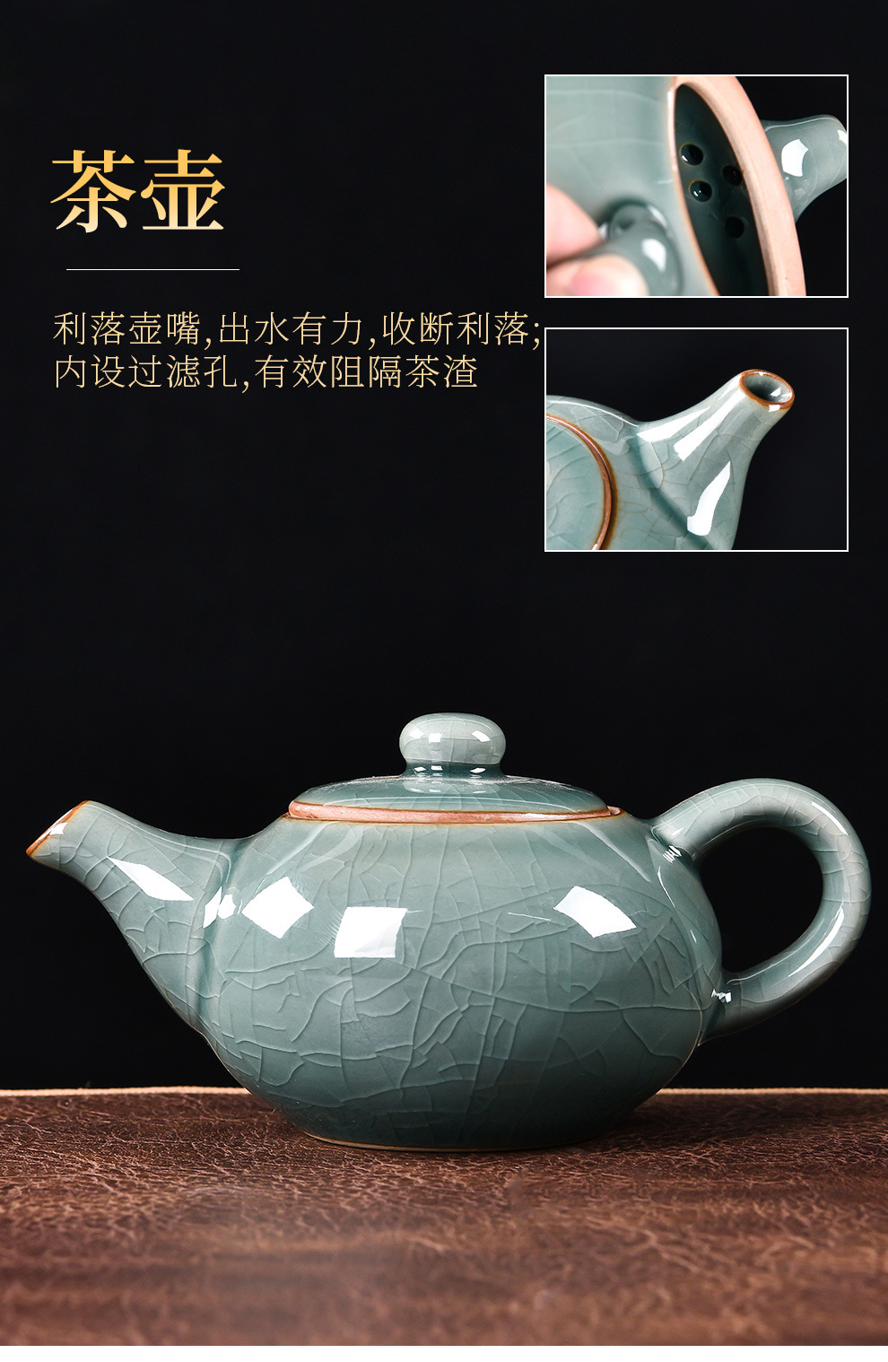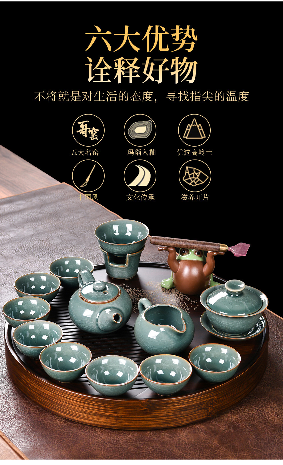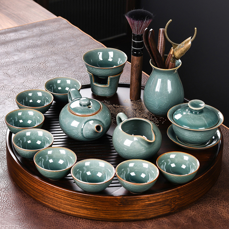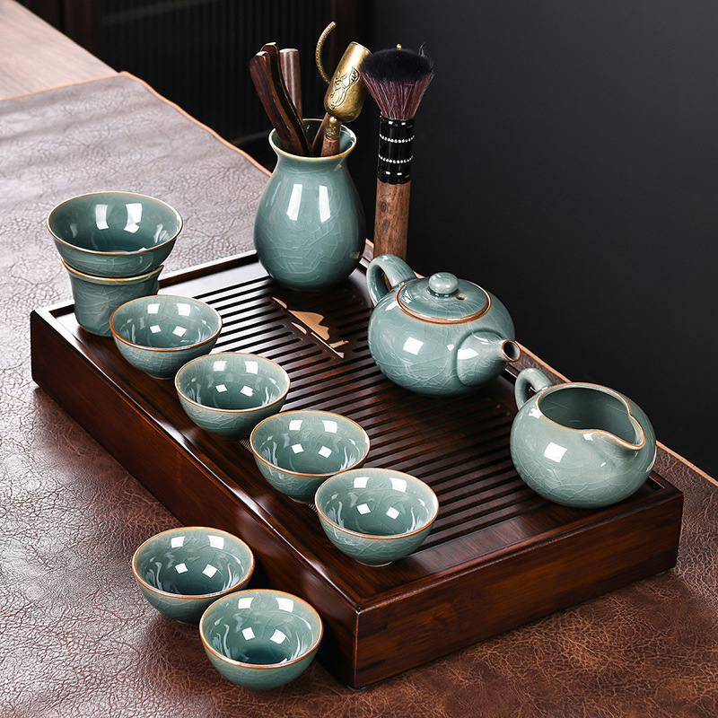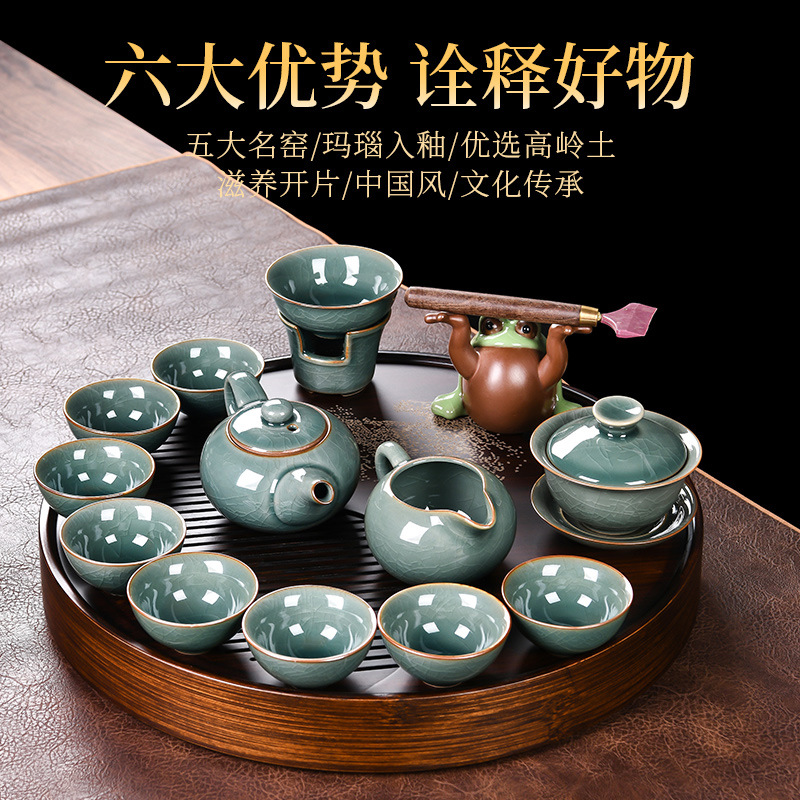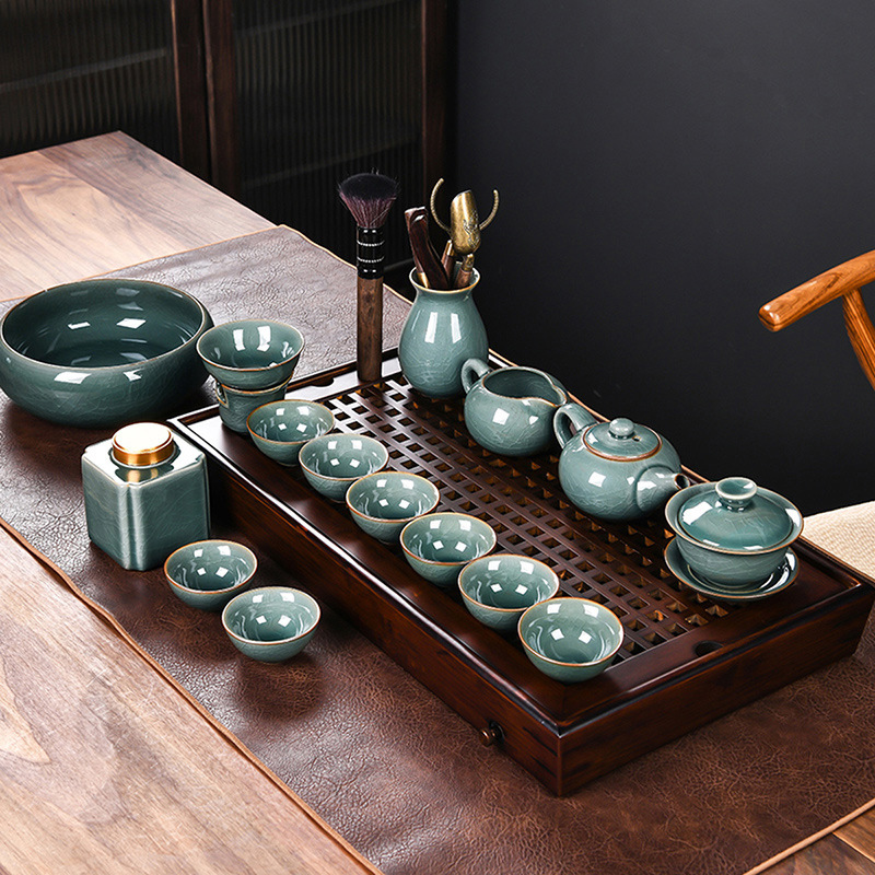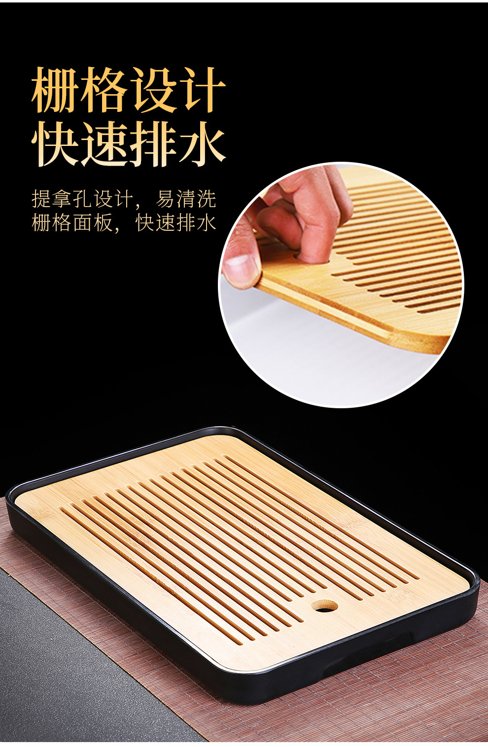 Bamboo made dry foam tray tea set, Chinese ceramic Ge kiln tea pot lid bowl, Kung Fu tea set, tea tray set, can be sent on behalf of others