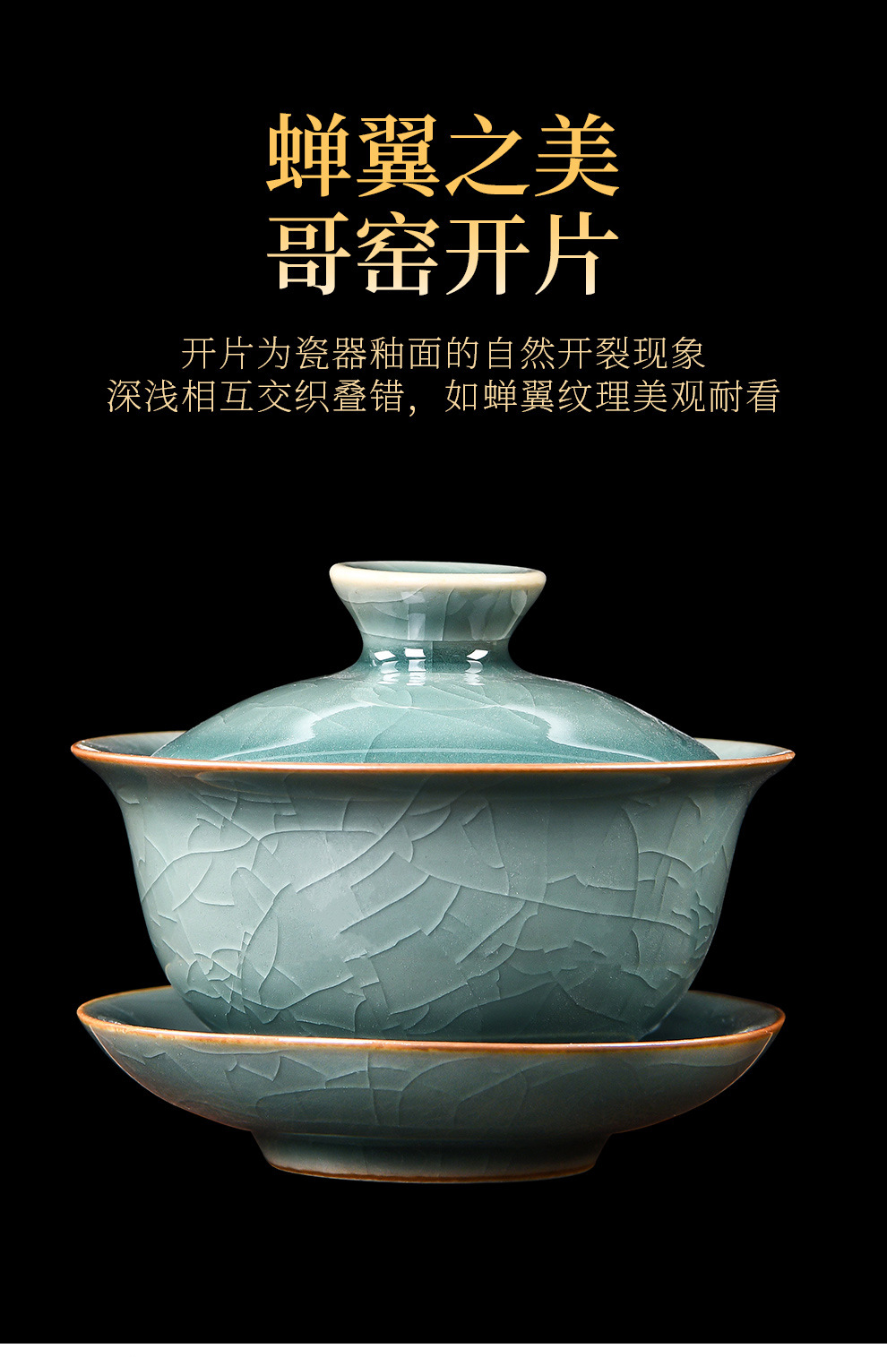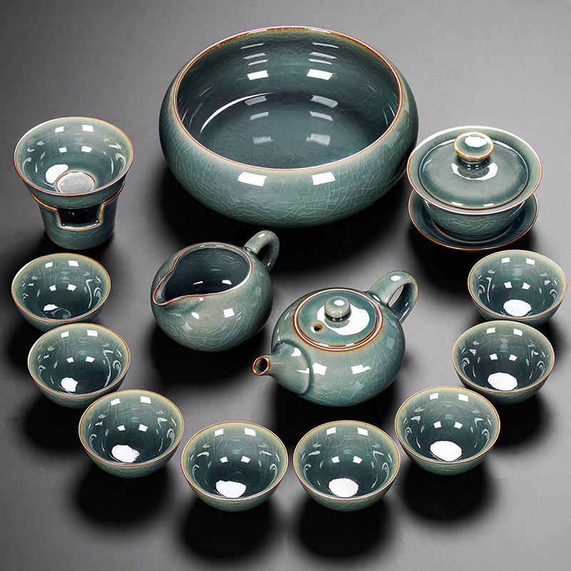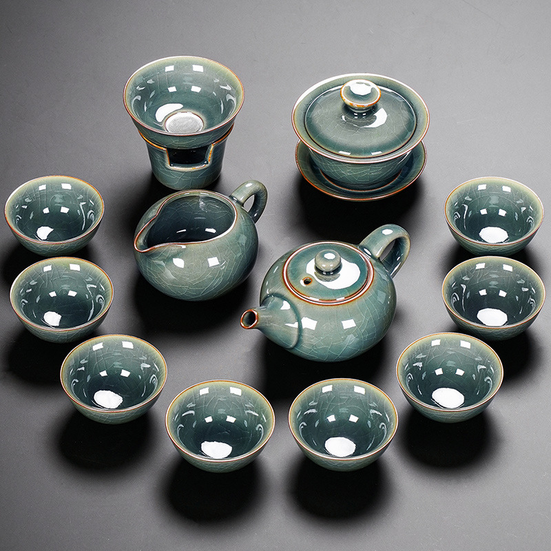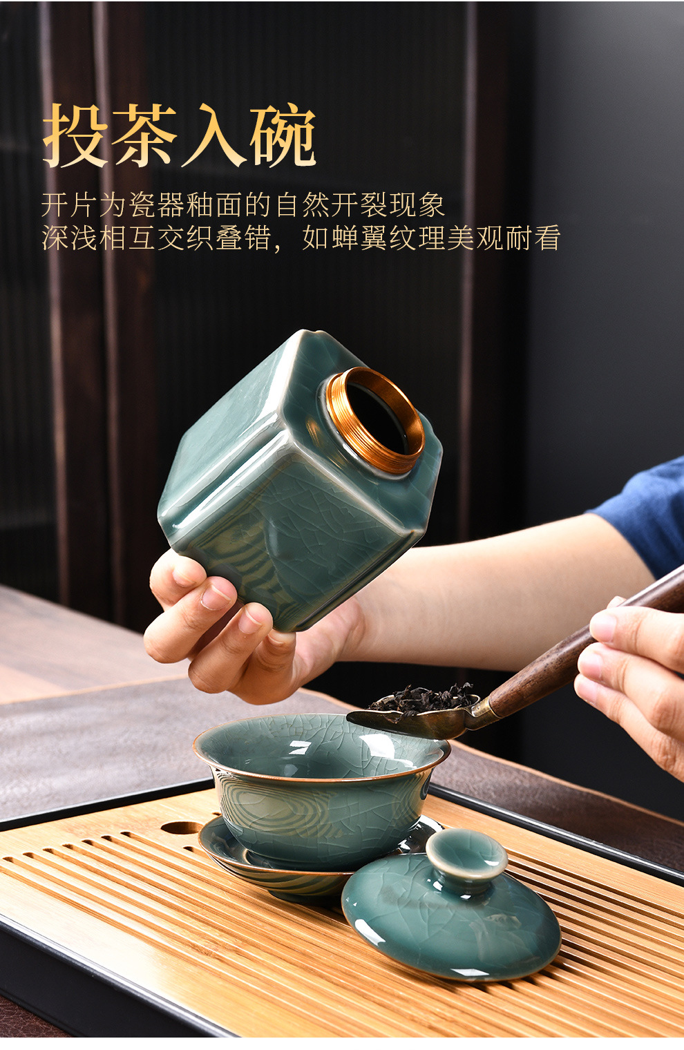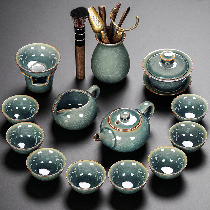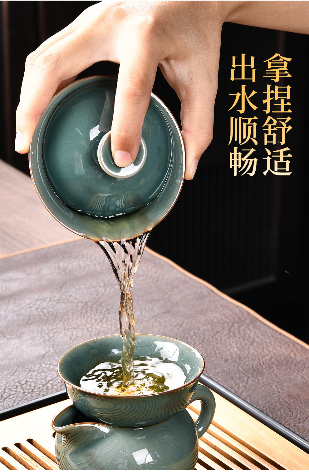Bamboo made dry foam tray tea set, Chinese ceramic Ge kiln tea pot lid bowl, Kung Fu tea set, tea tray set, can be sent on behalf of others