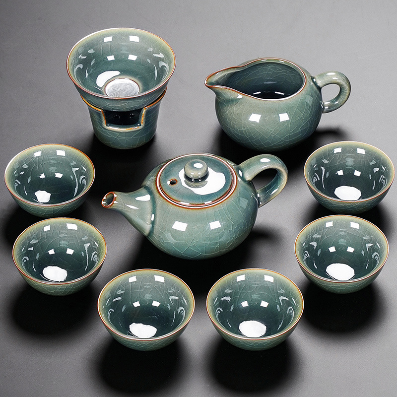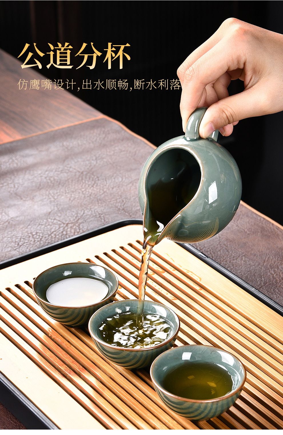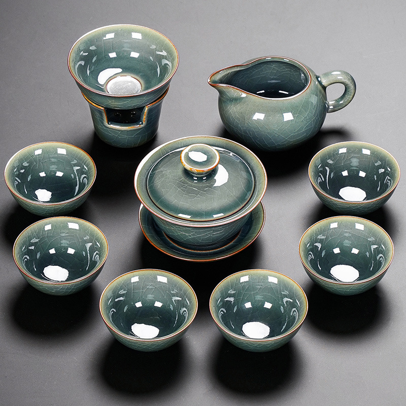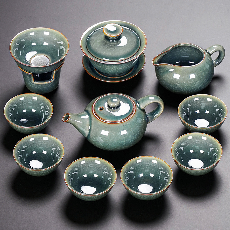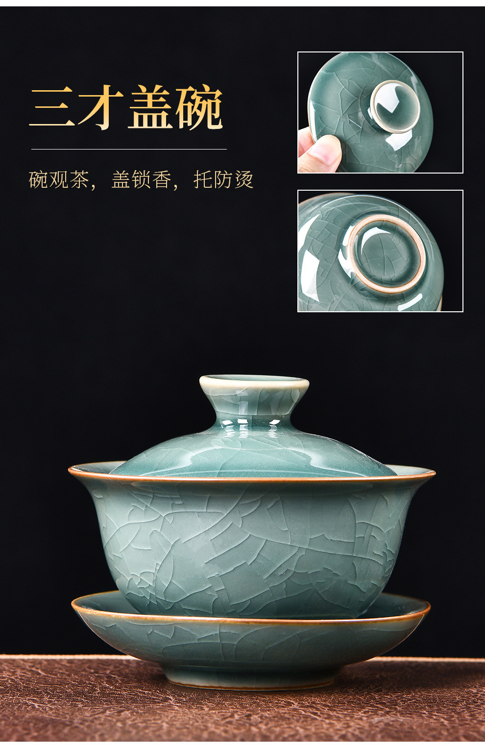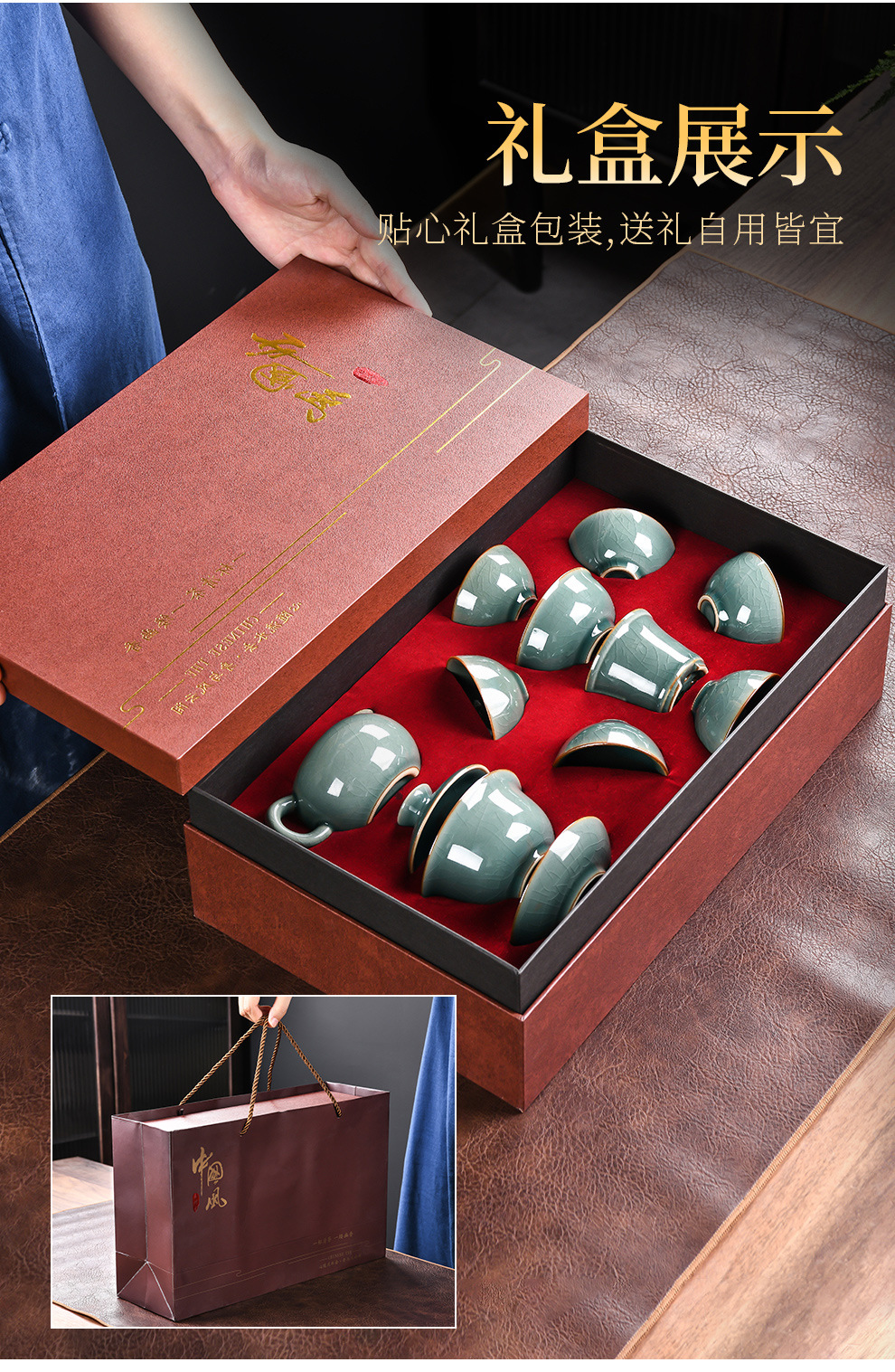 Bamboo made dry foam tray tea set, Chinese ceramic Ge kiln tea pot lid bowl, Kung Fu tea set, tea tray set, can be sent on behalf of others