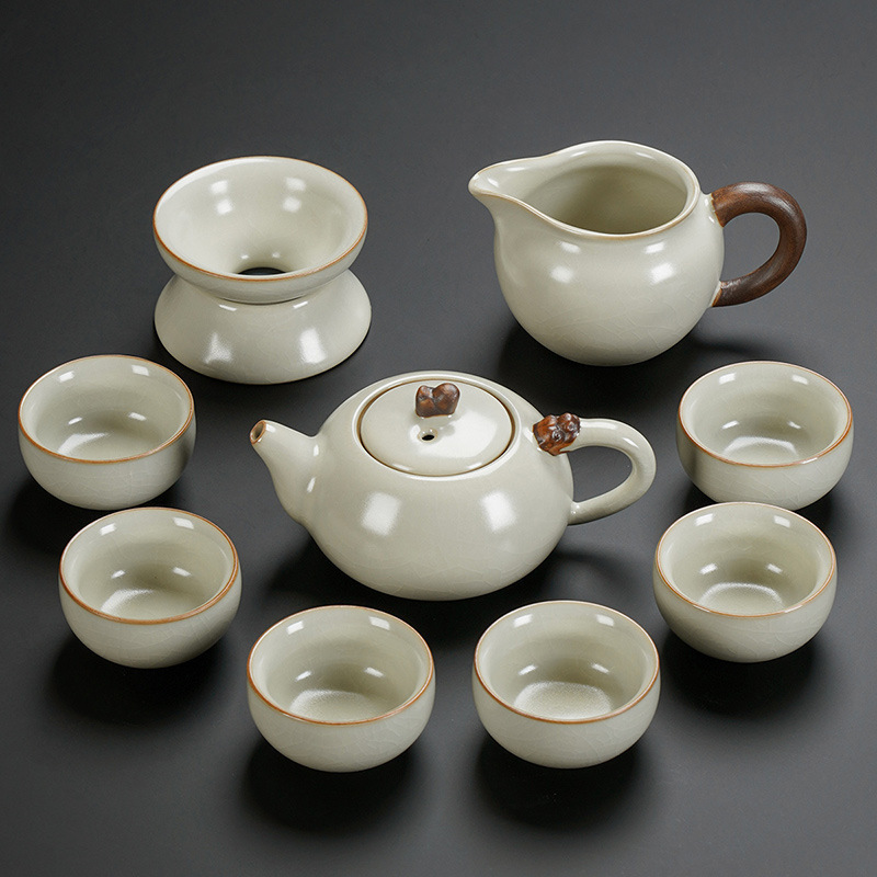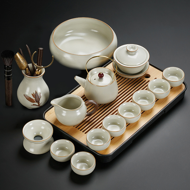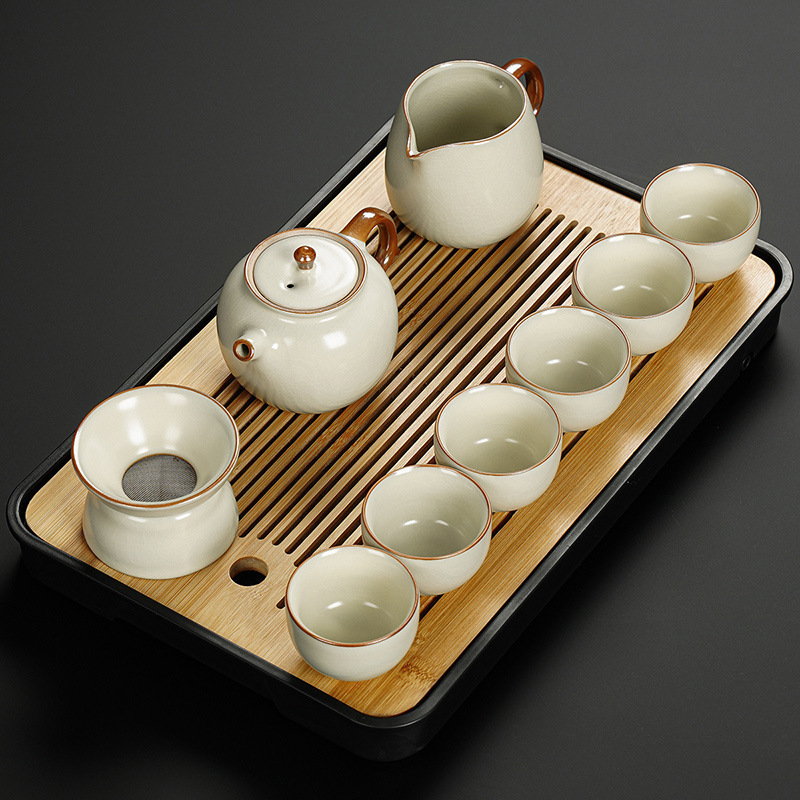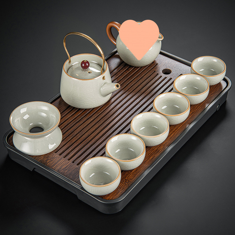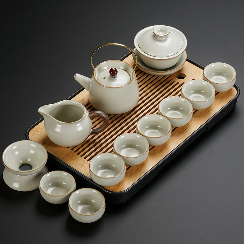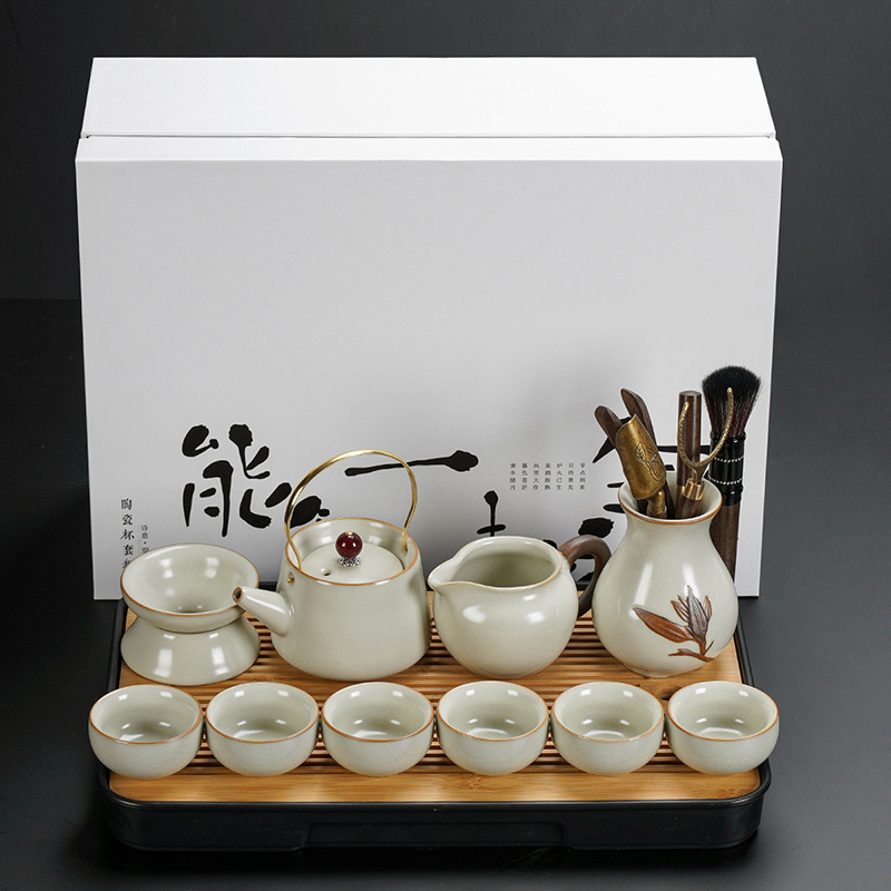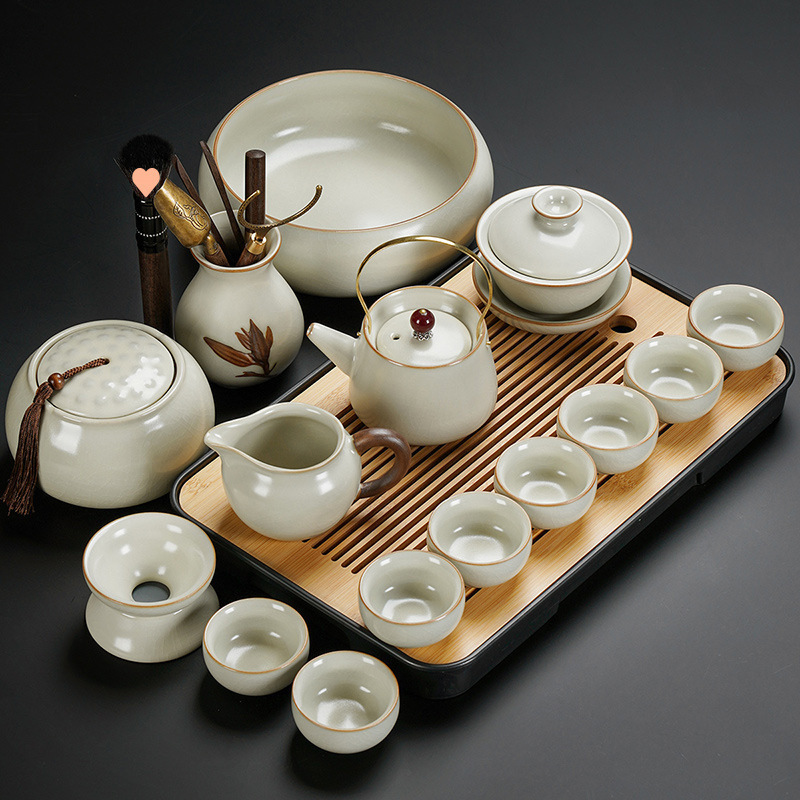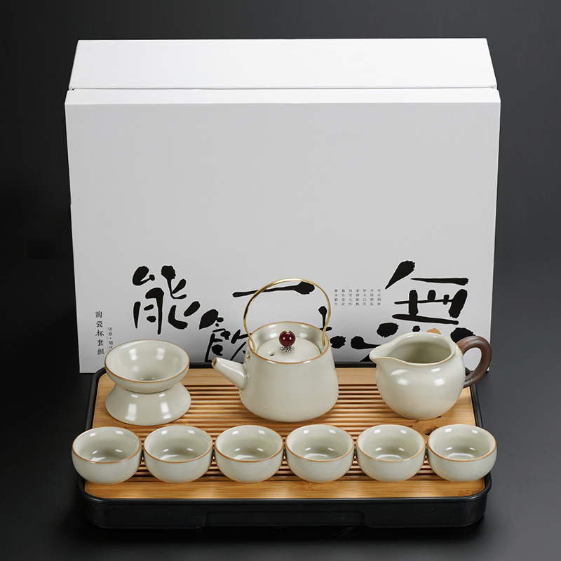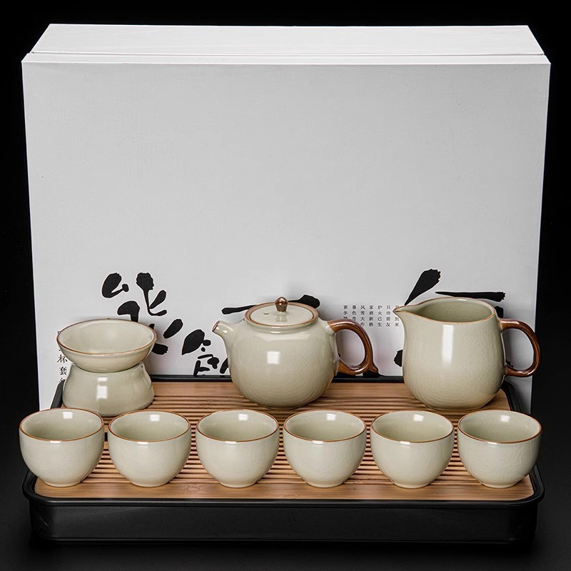 New Ru Kiln Kung Fu Tea Set Ceramic Teapot Lid Teacup Tea Tray Light Luxury High end Tea Home Free Shipping Wholesale