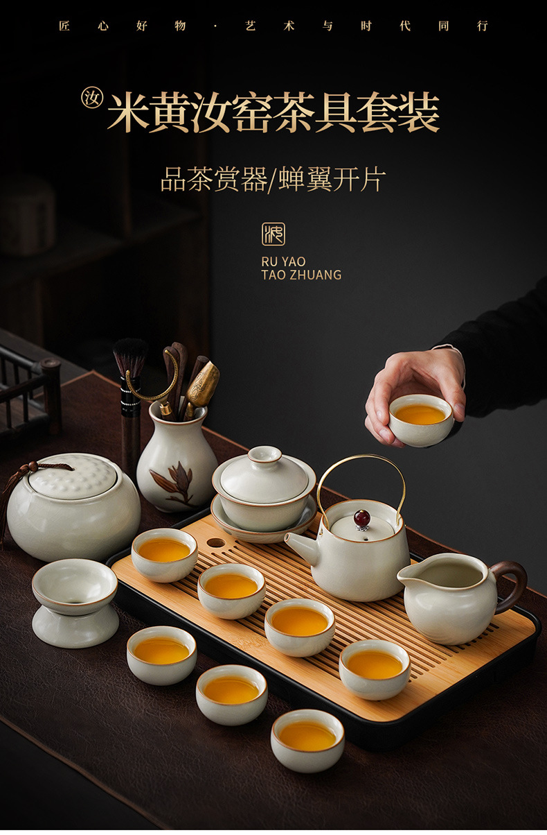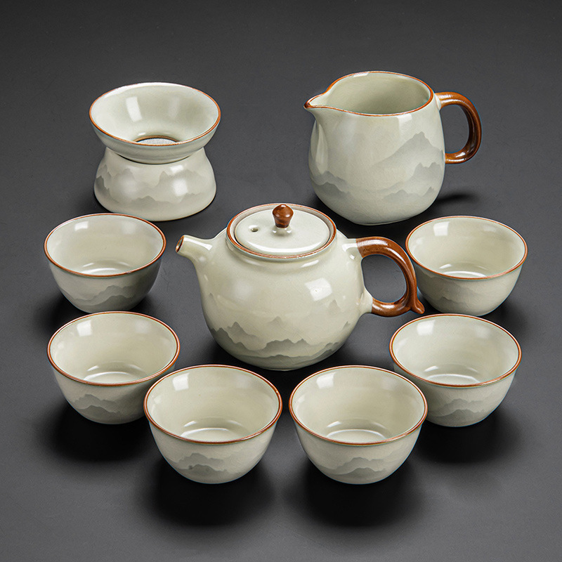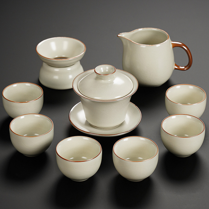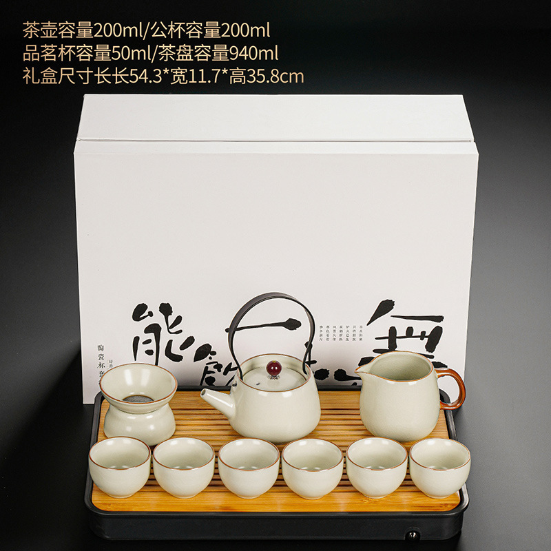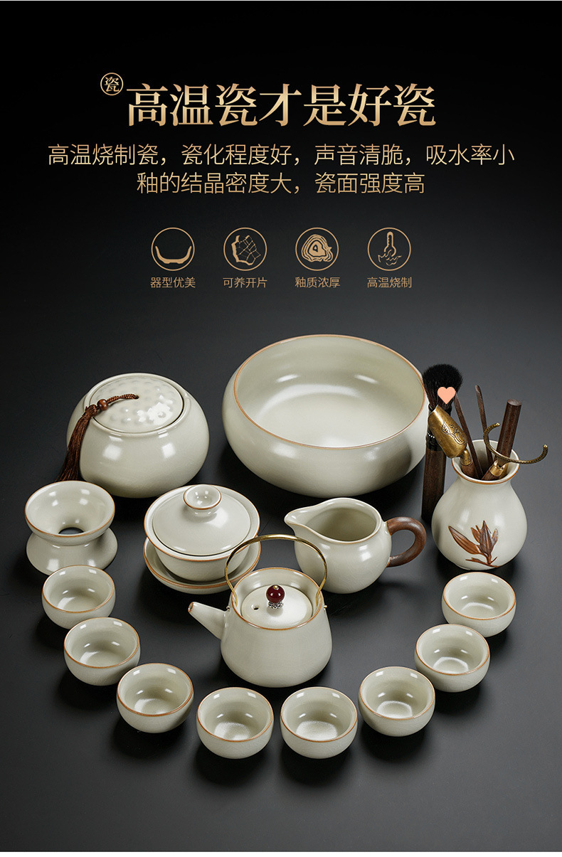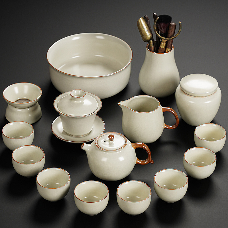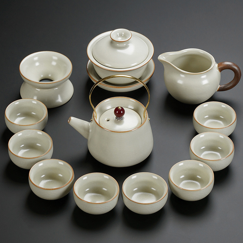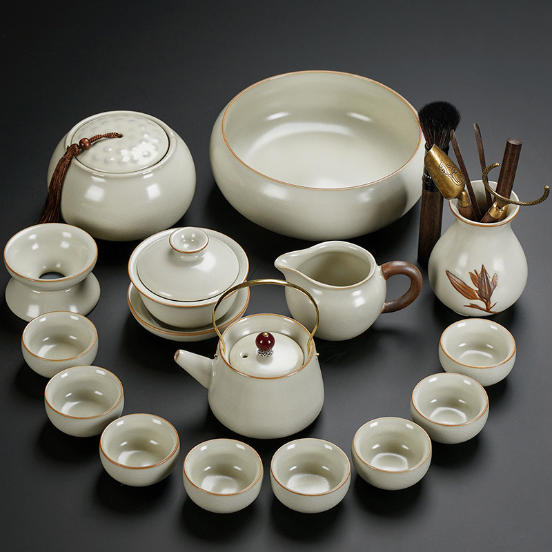 New Ru Kiln Kung Fu Tea Set Ceramic Teapot Lid Teacup Tea Tray Light Luxury High end Tea Home Free Shipping Wholesale