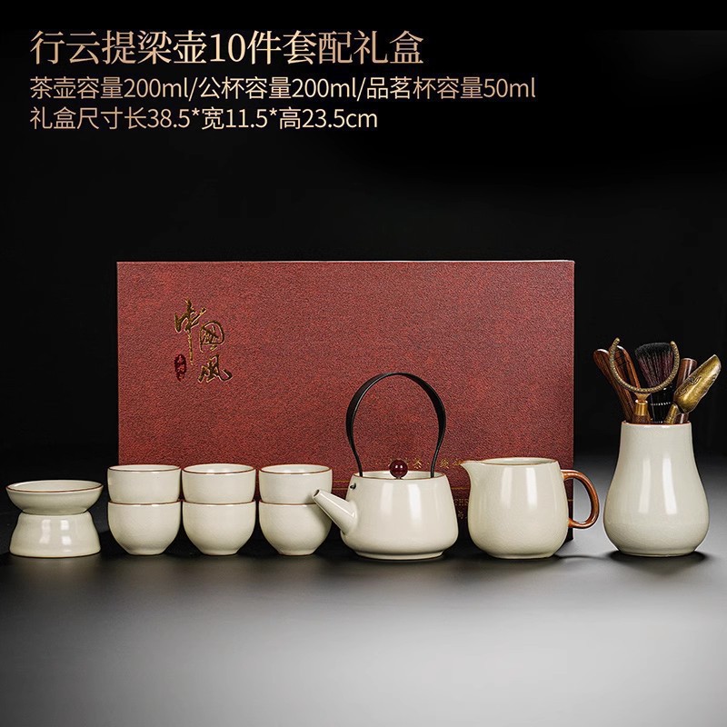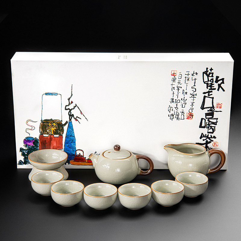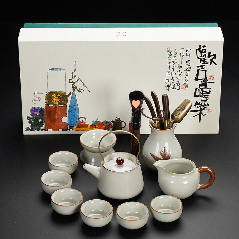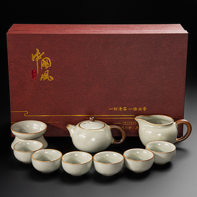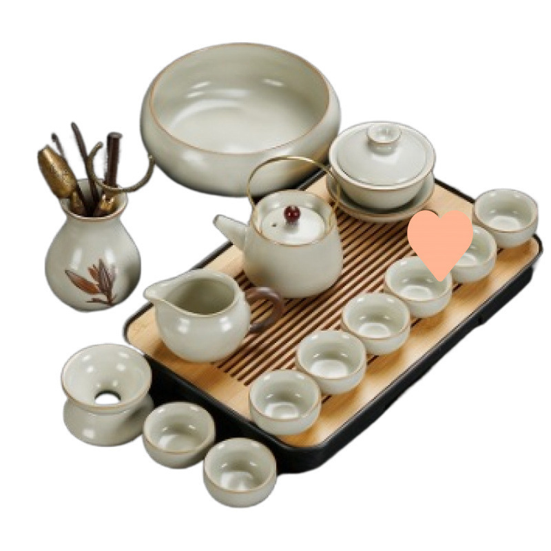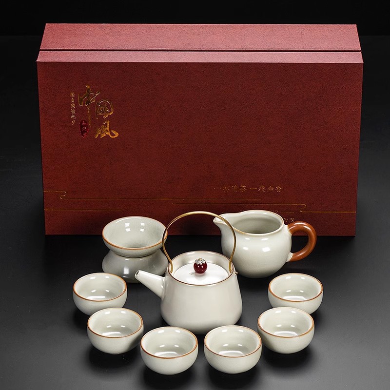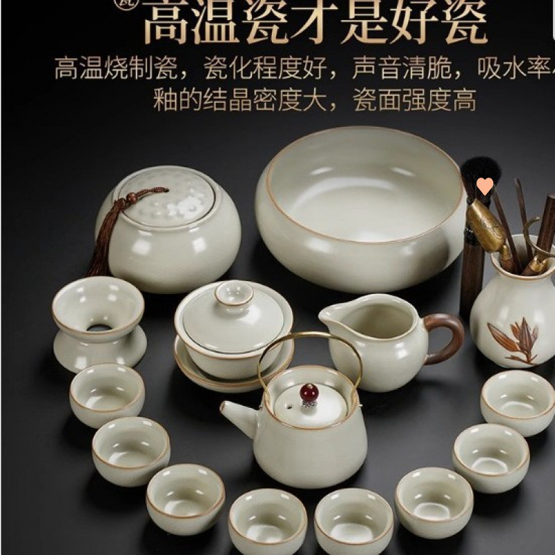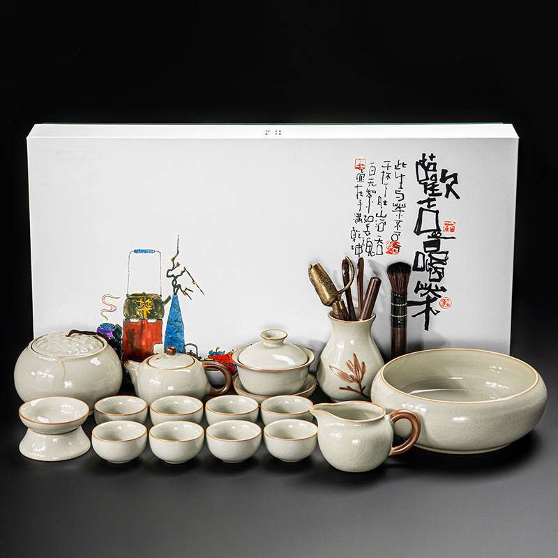 New Ru Kiln Kung Fu Tea Set Ceramic Teapot Lid Teacup Tea Tray Light Luxury High end Tea Home Free Shipping Wholesale