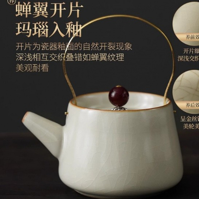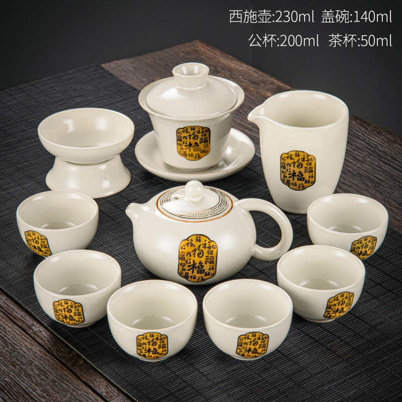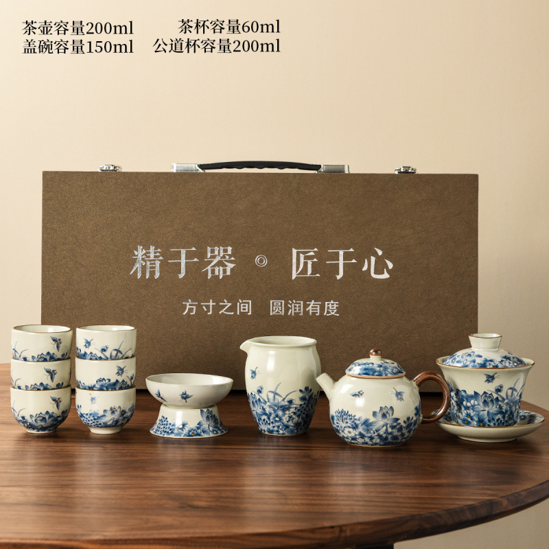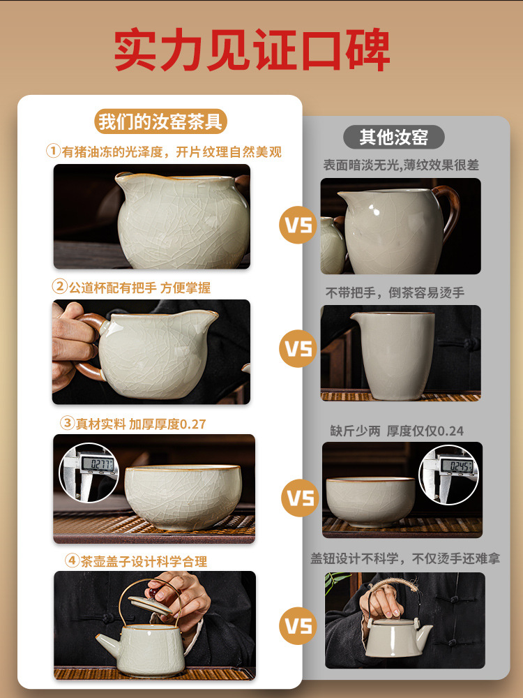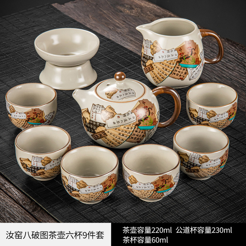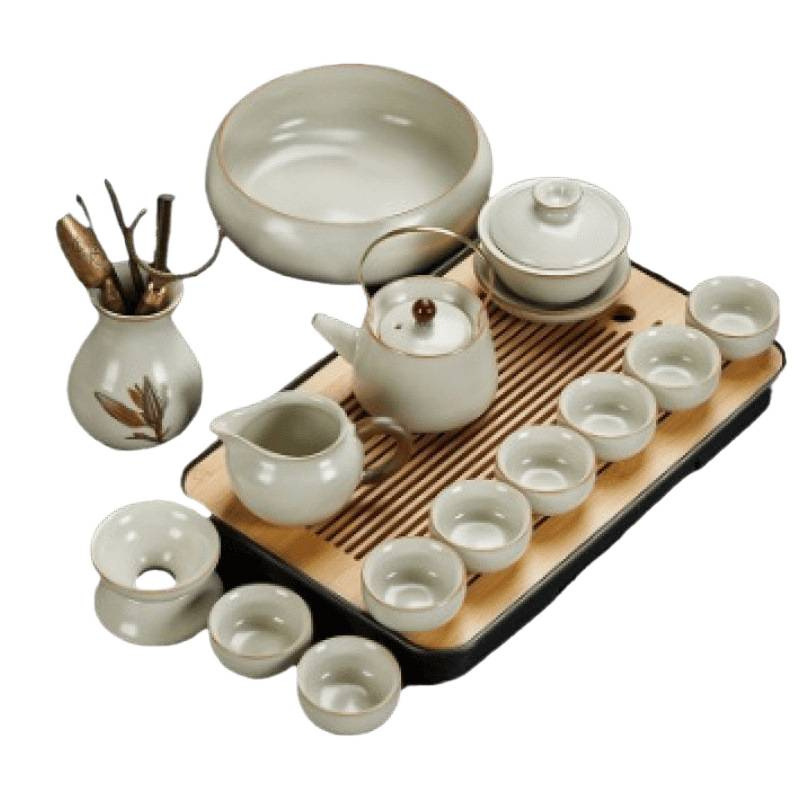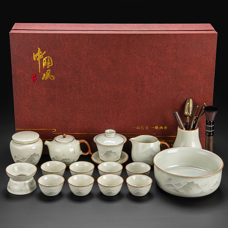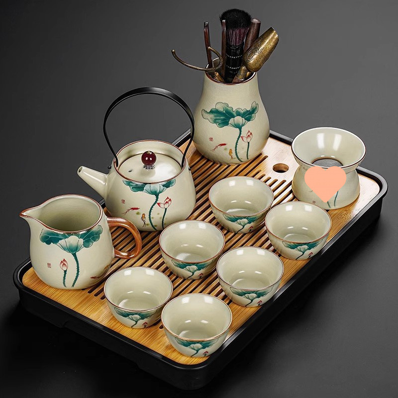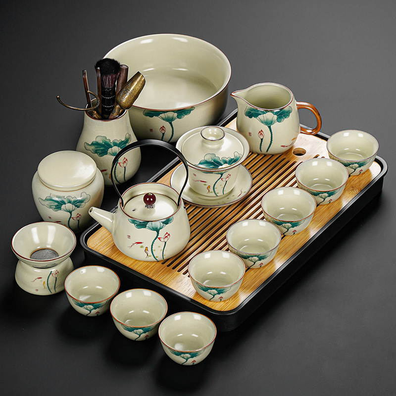 New Ru Kiln Kung Fu Tea Set Ceramic Teapot Lid Teacup Tea Tray Light Luxury High end Tea Home Free Shipping Wholesale