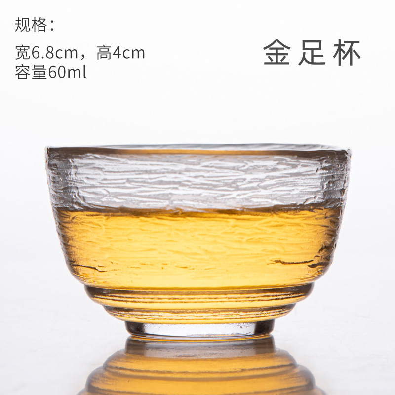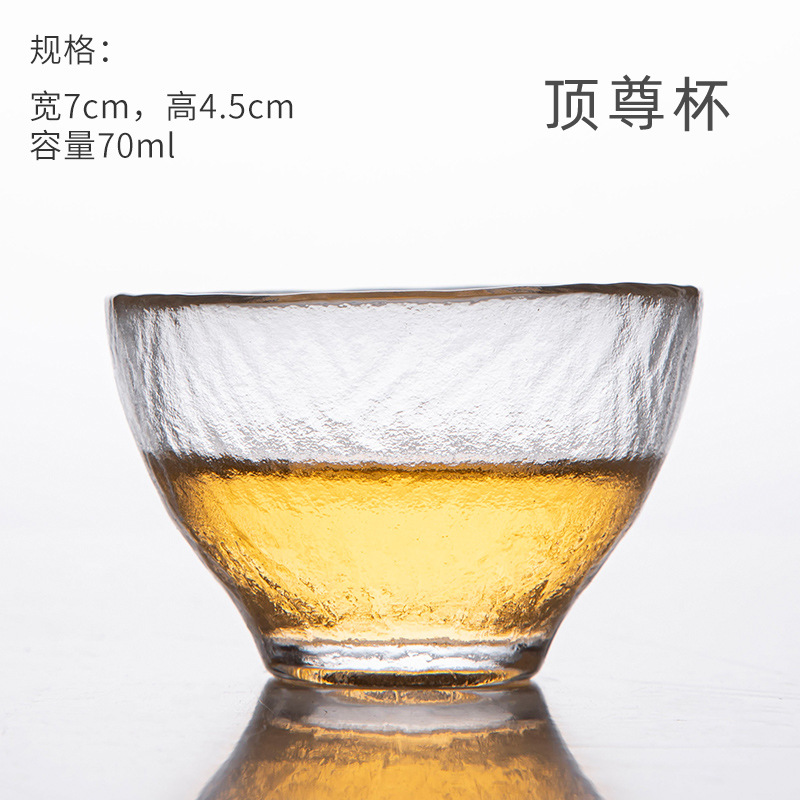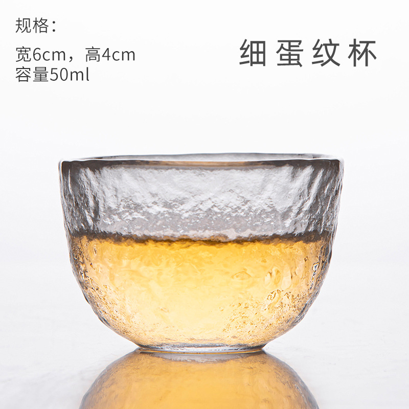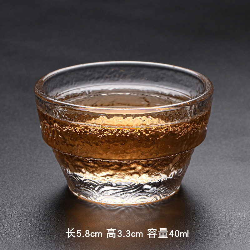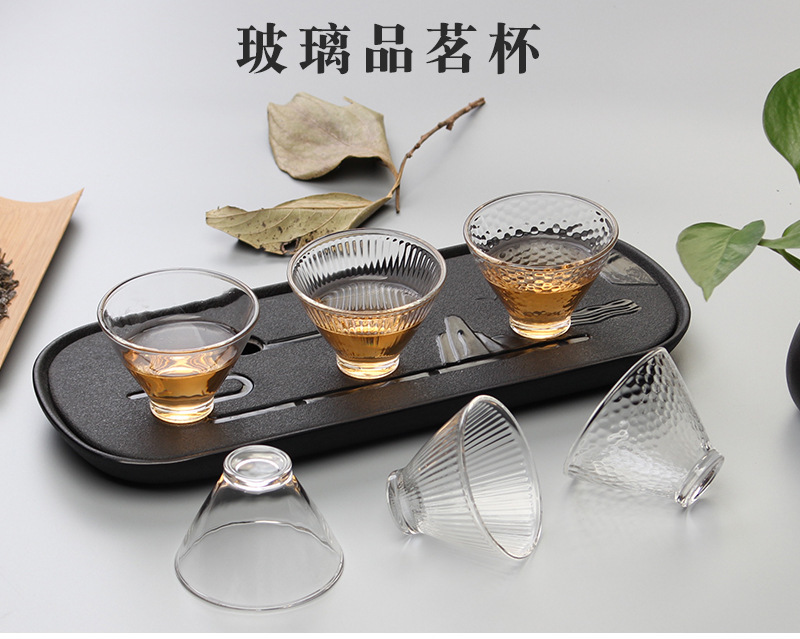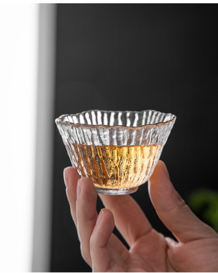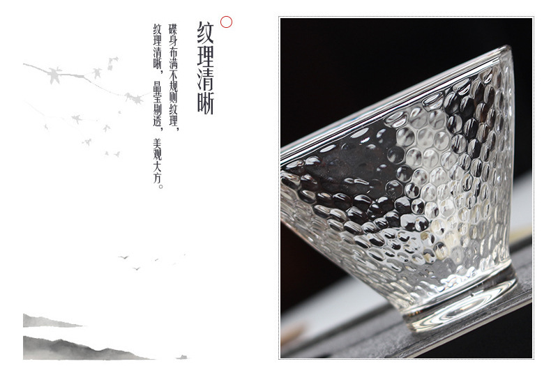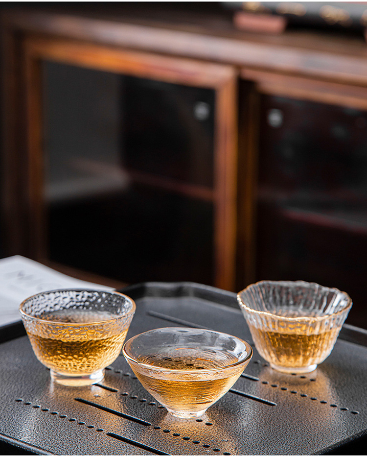 Glass tea cup set with hammer pattern Kung Fu tea cup, transparent bamboo hat cup, master cup, tea tasting cup, high foot tea cup