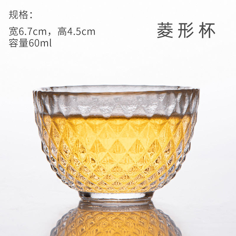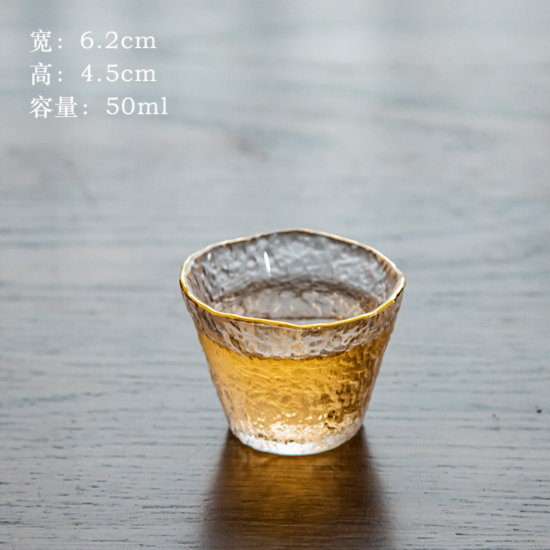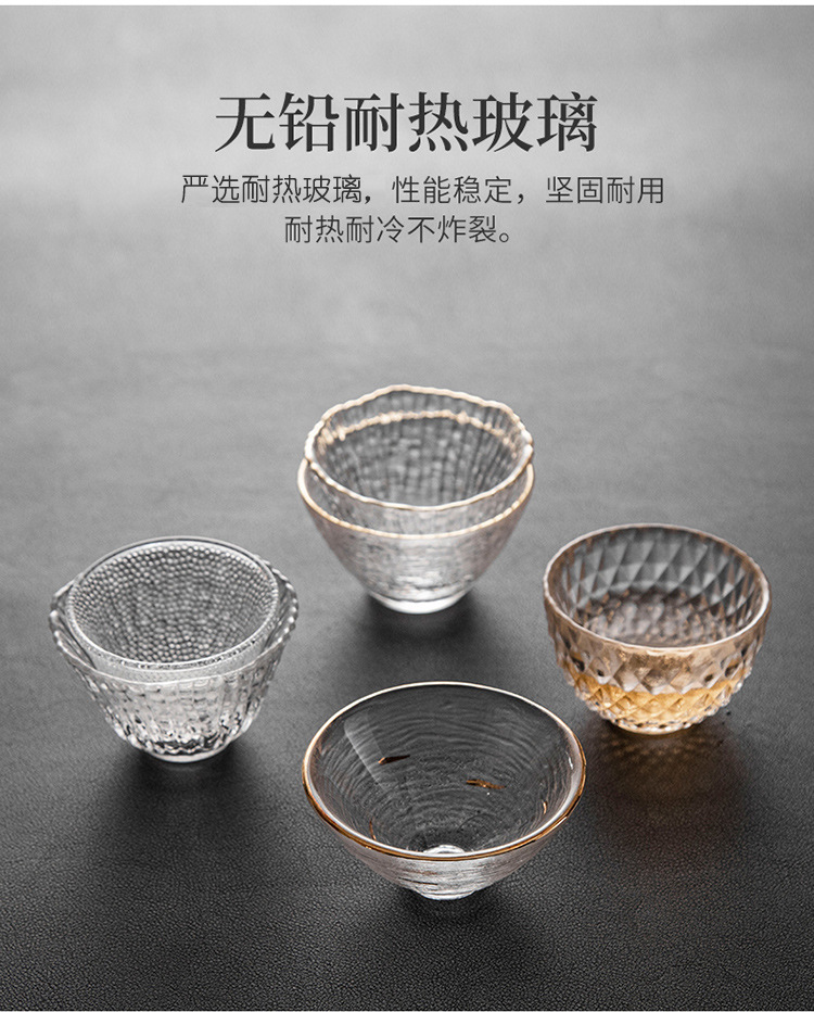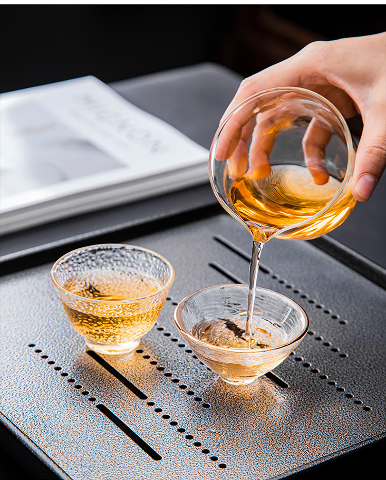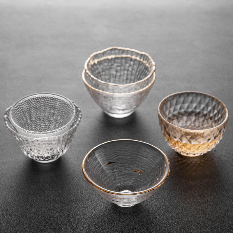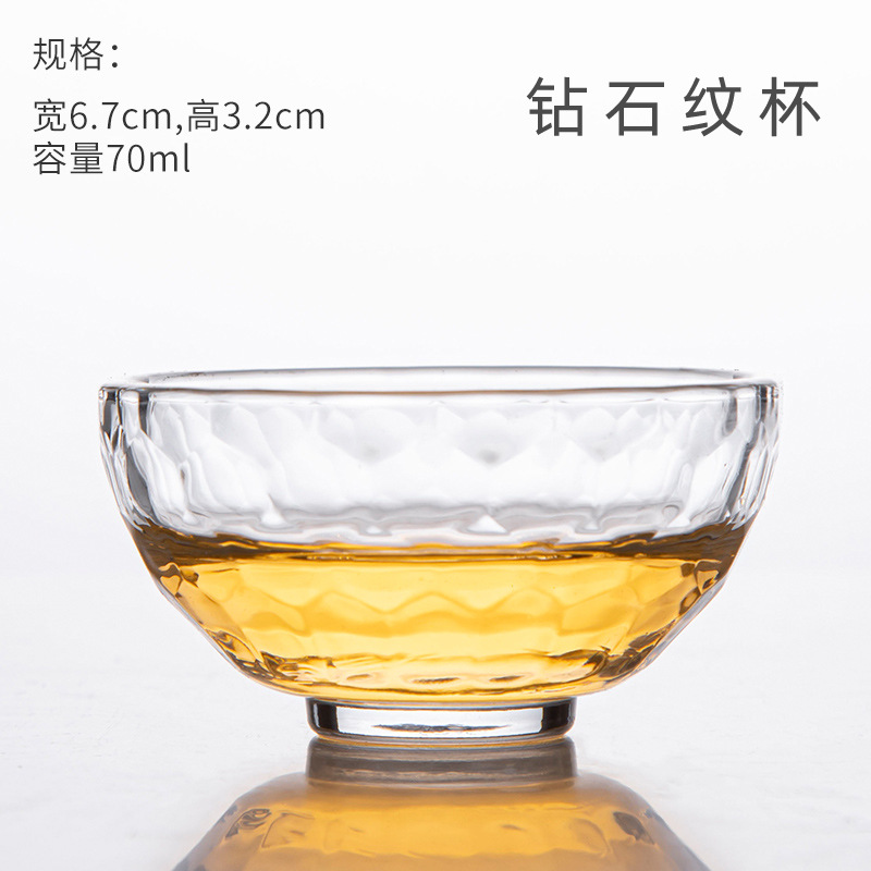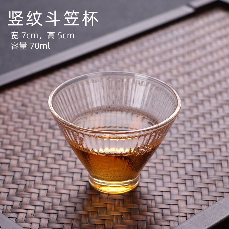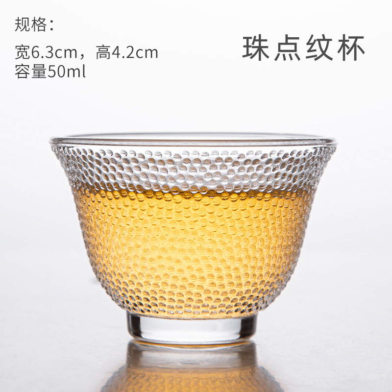 Glass tea cup set with hammer pattern Kung Fu tea cup, transparent bamboo hat cup, master cup, tea tasting cup, high foot tea cup