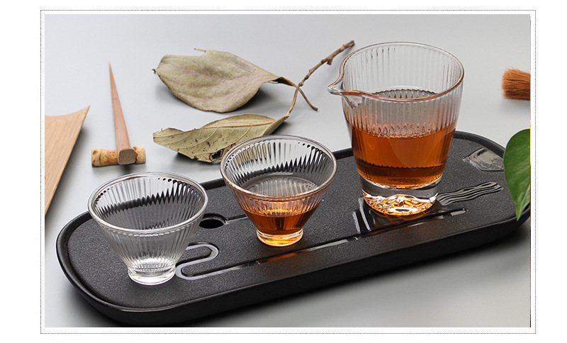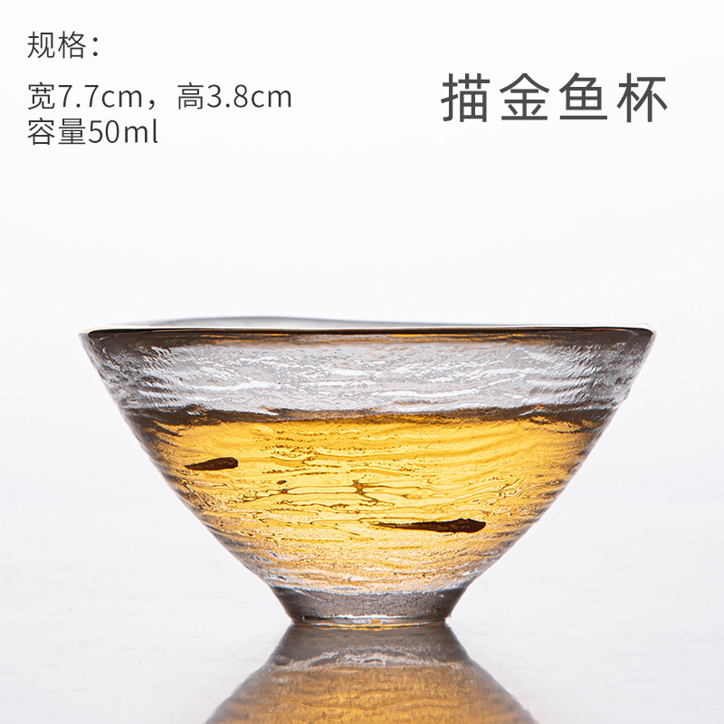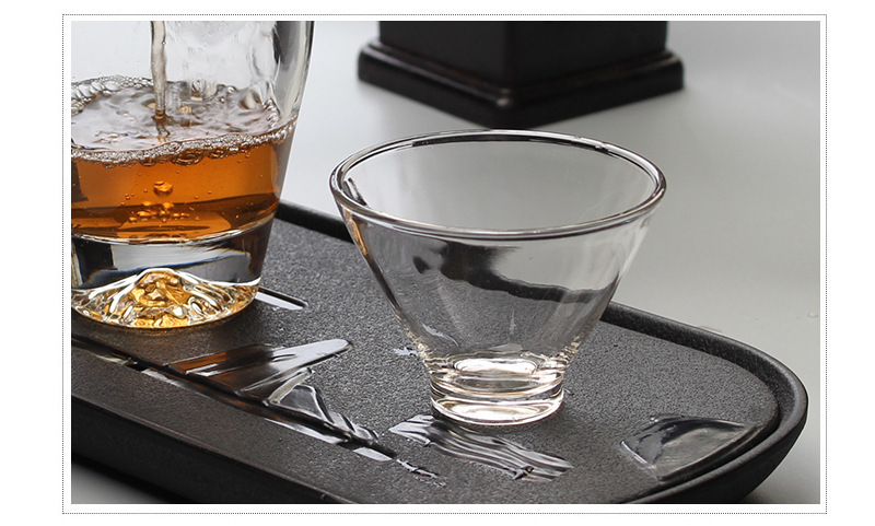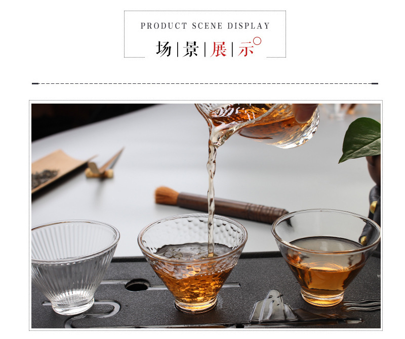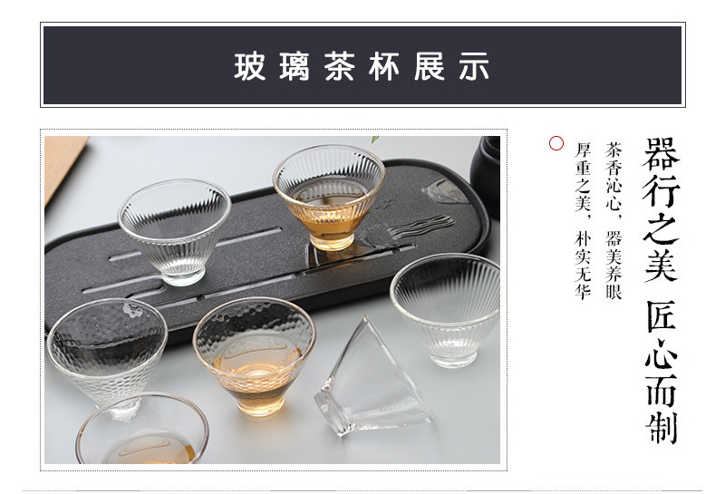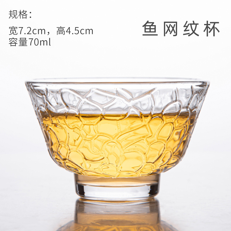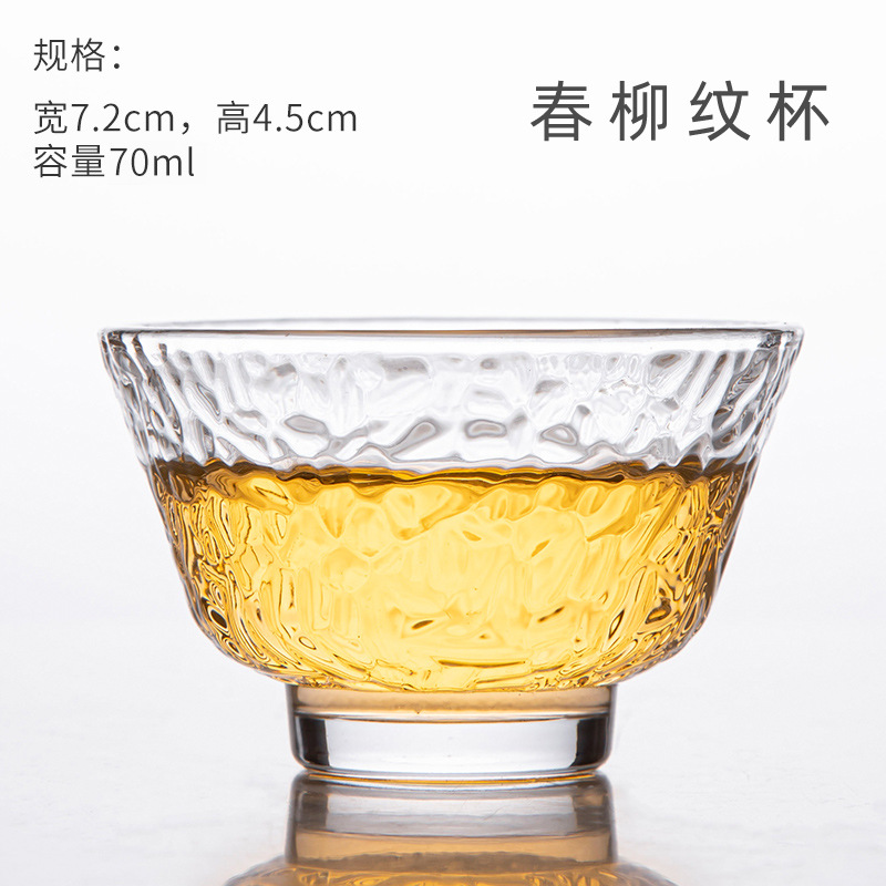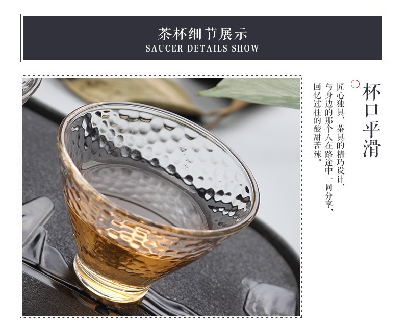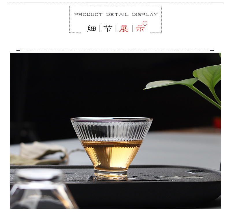 Glass tea cup set with hammer pattern Kung Fu tea cup, transparent bamboo hat cup, master cup, tea tasting cup, high foot tea cup