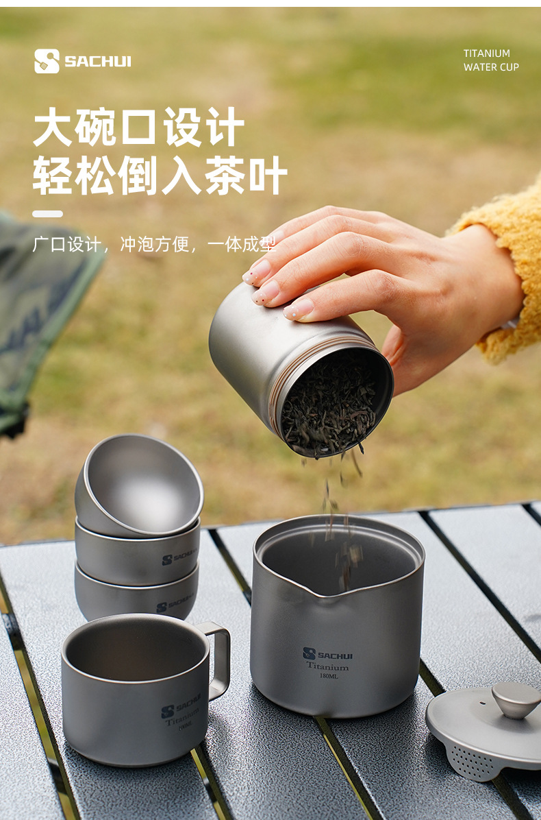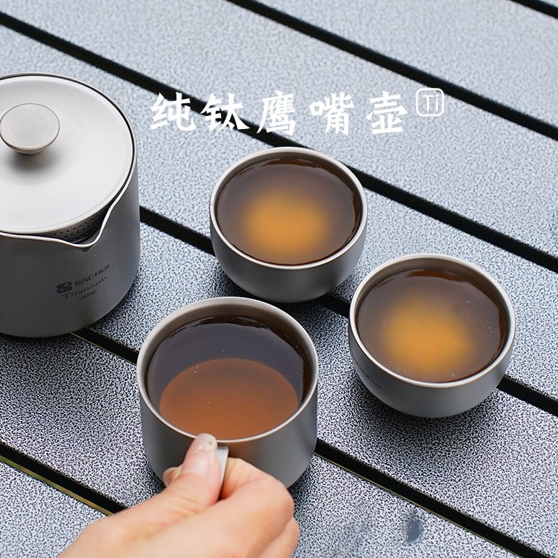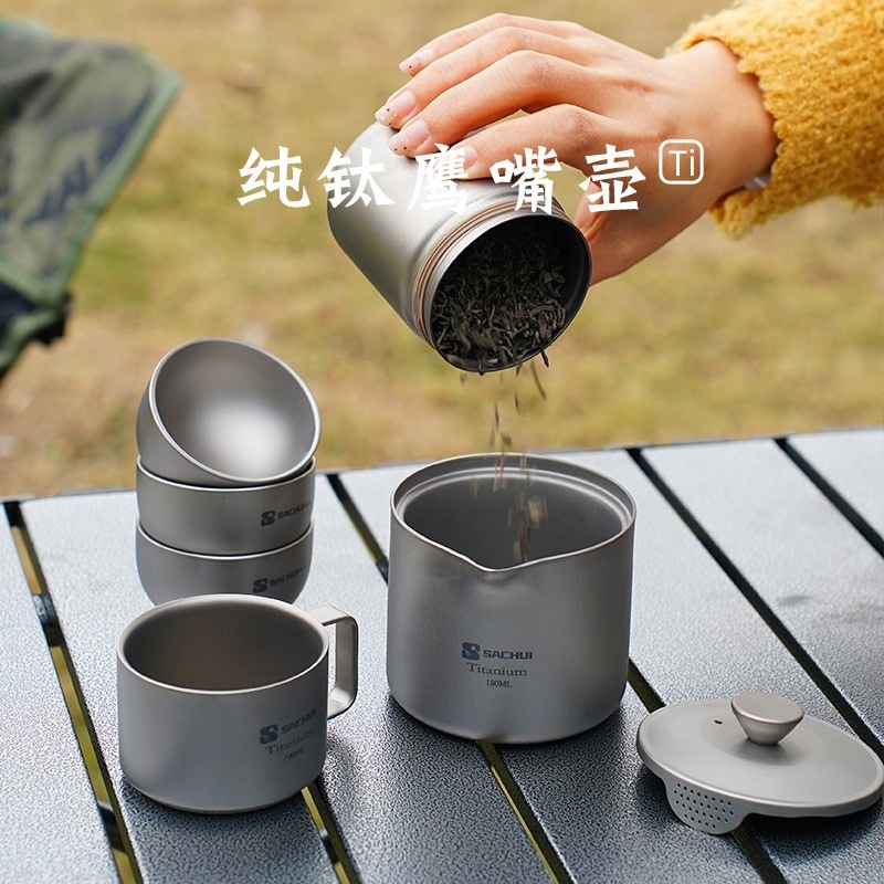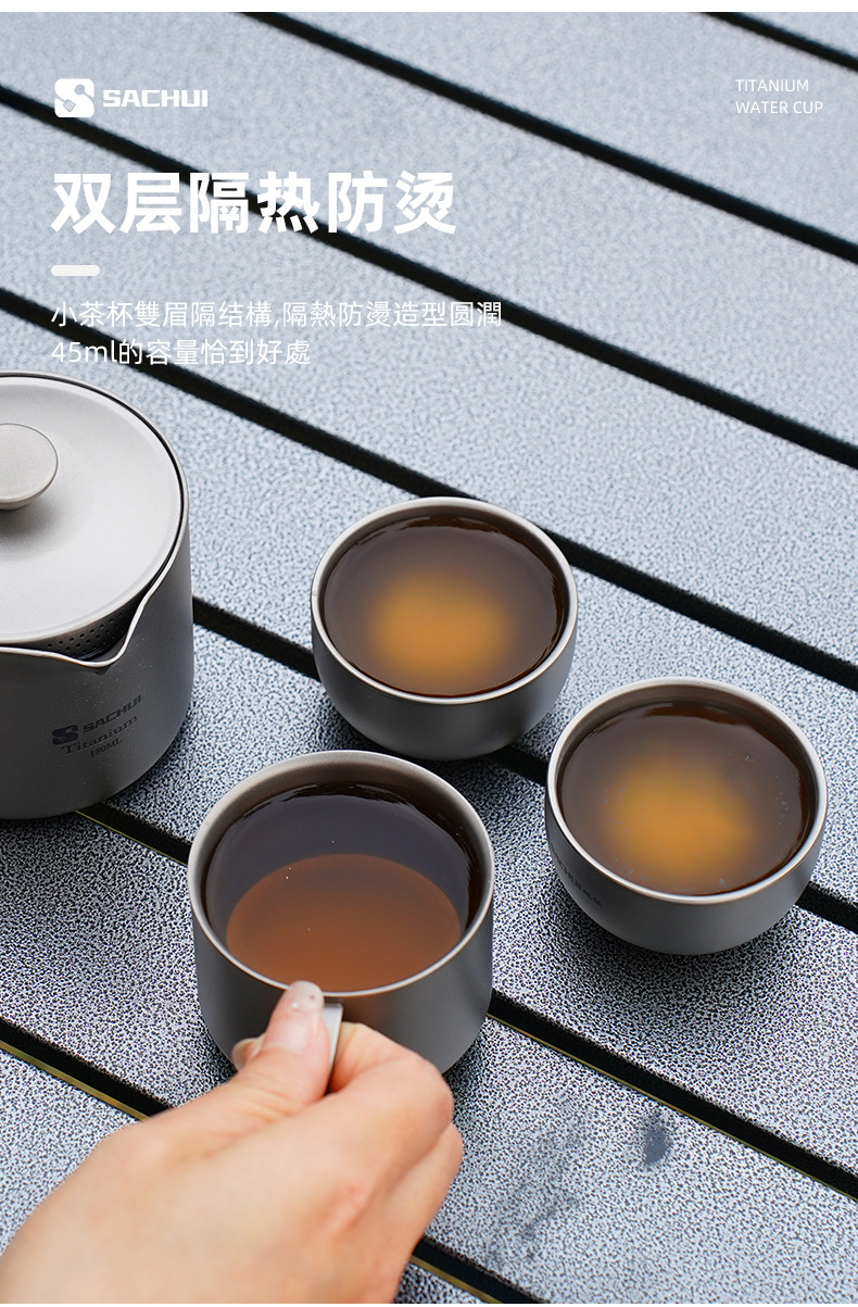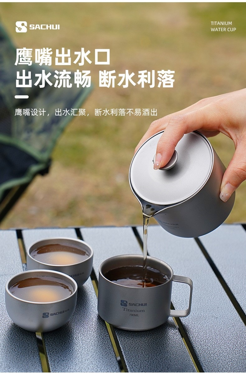 Outdoor Pure Titanium Quick Cup Camping Double layer Anti scald Tea Maker Portable Tea Pot Titanium Alloy Travel Tea Set