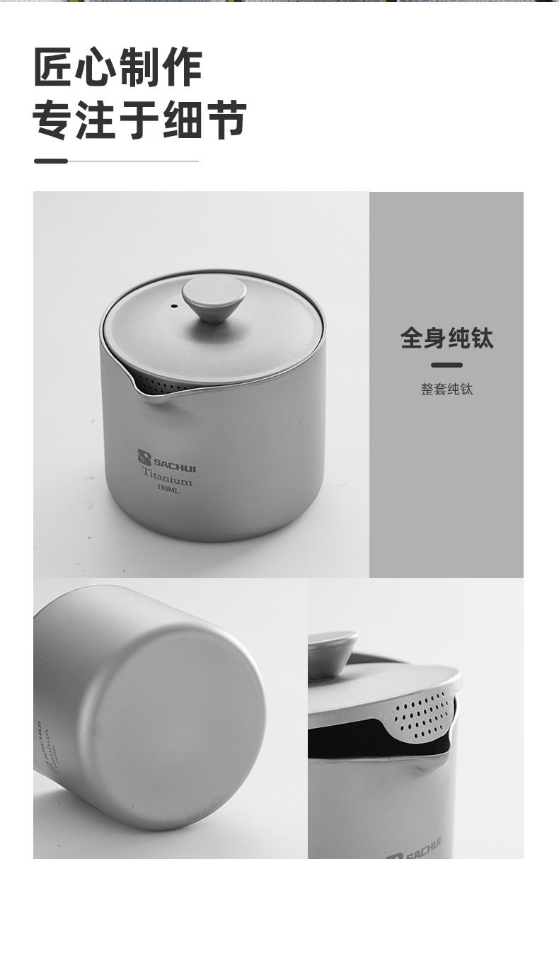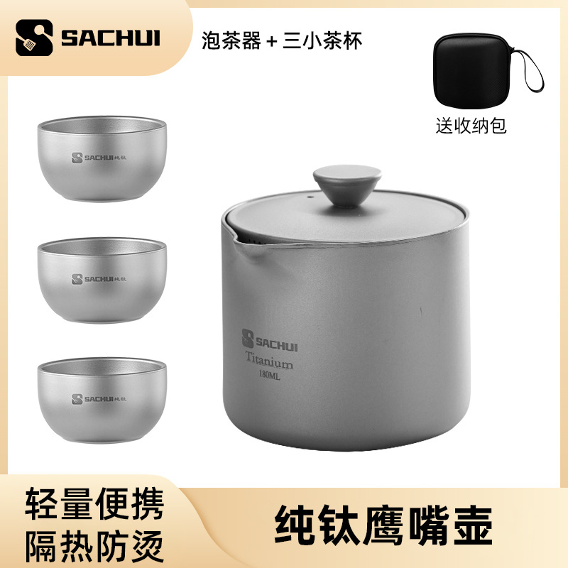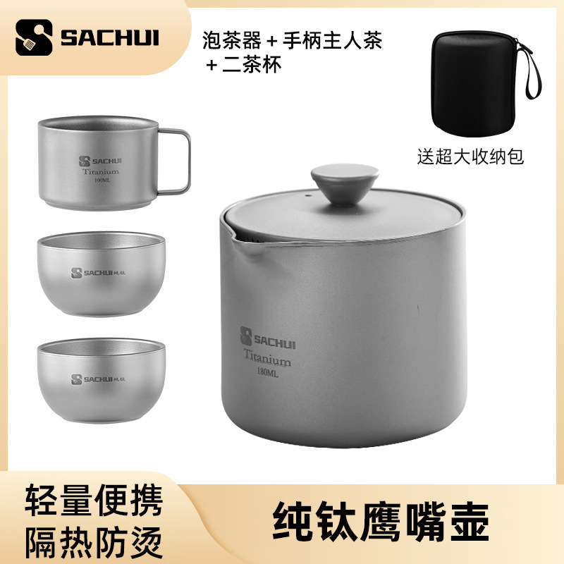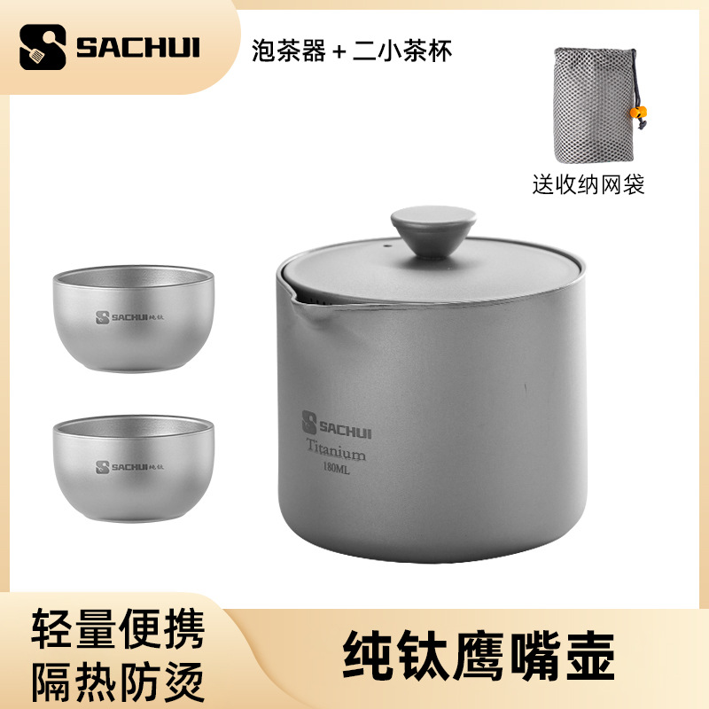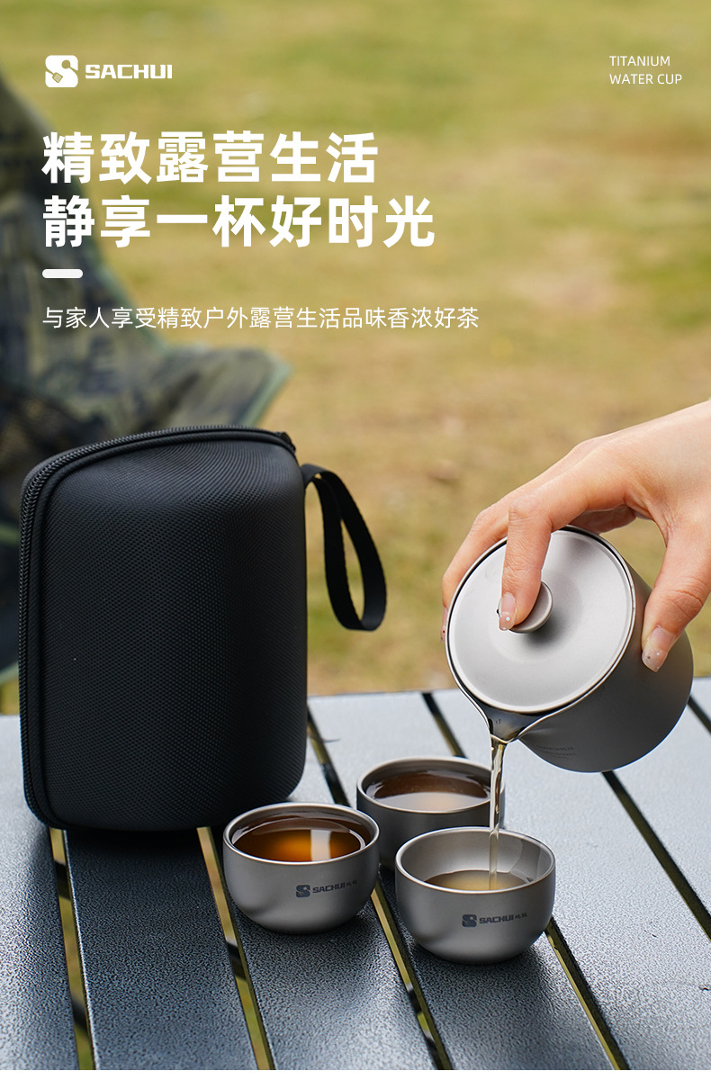 Outdoor Pure Titanium Quick Cup Camping Double layer Anti scald Tea Maker Portable Tea Pot Titanium Alloy Travel Tea Set