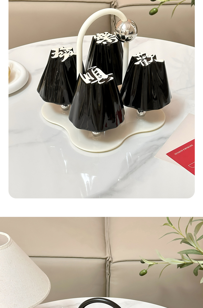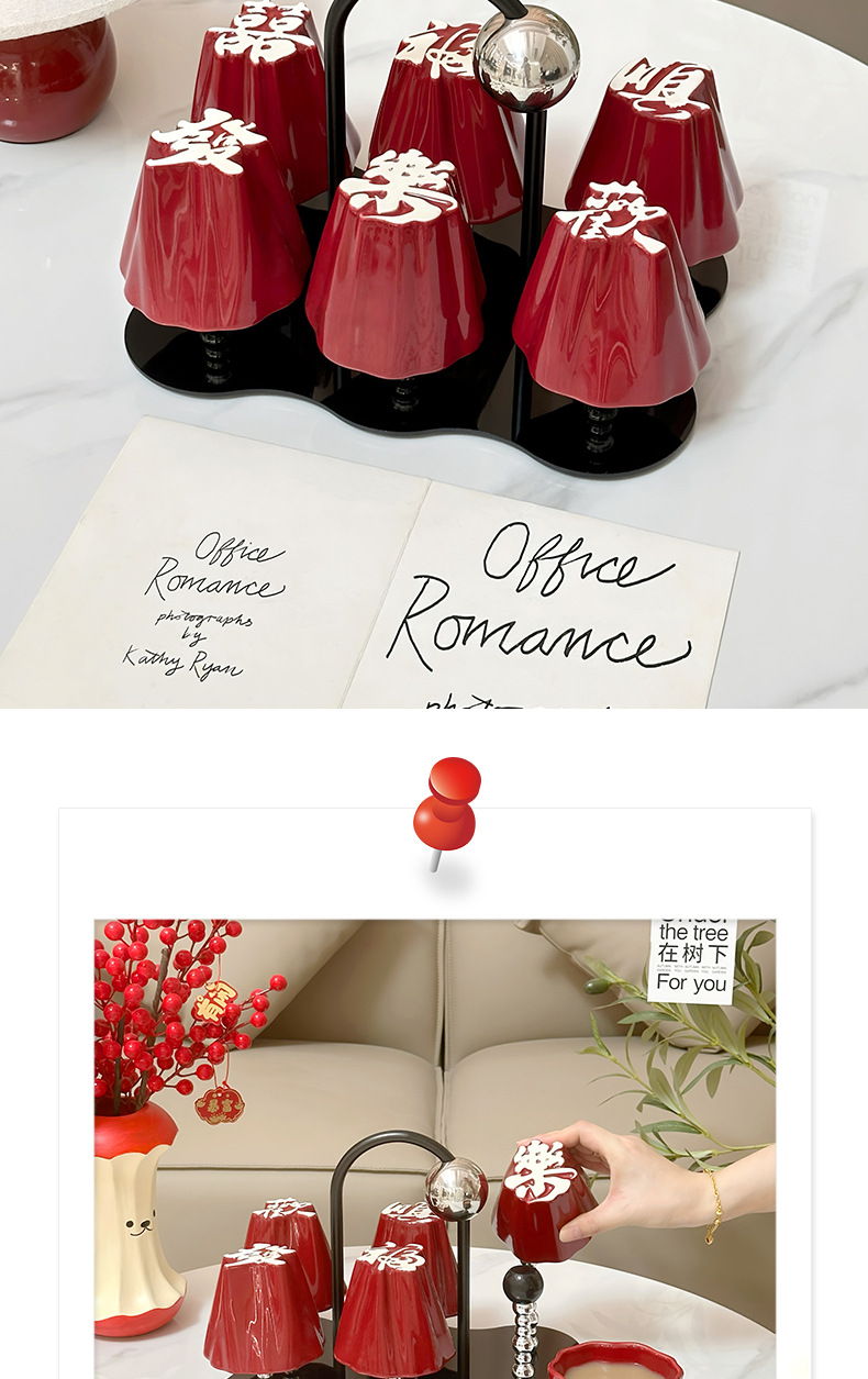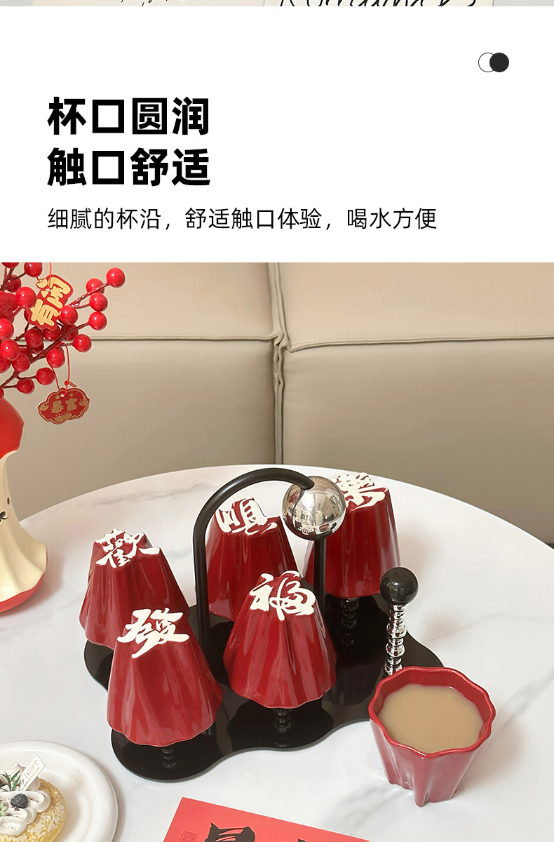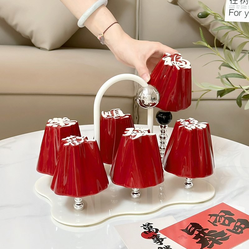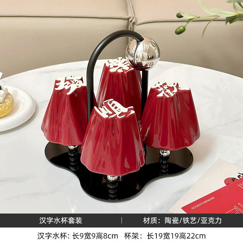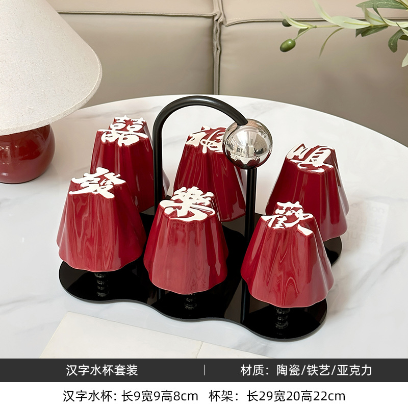 Chinese character water cup set for home use, ceramic drinking cups for hospitality, tea cups with a sense of luxury, housewarming, engagement, wedding, and companion gifts