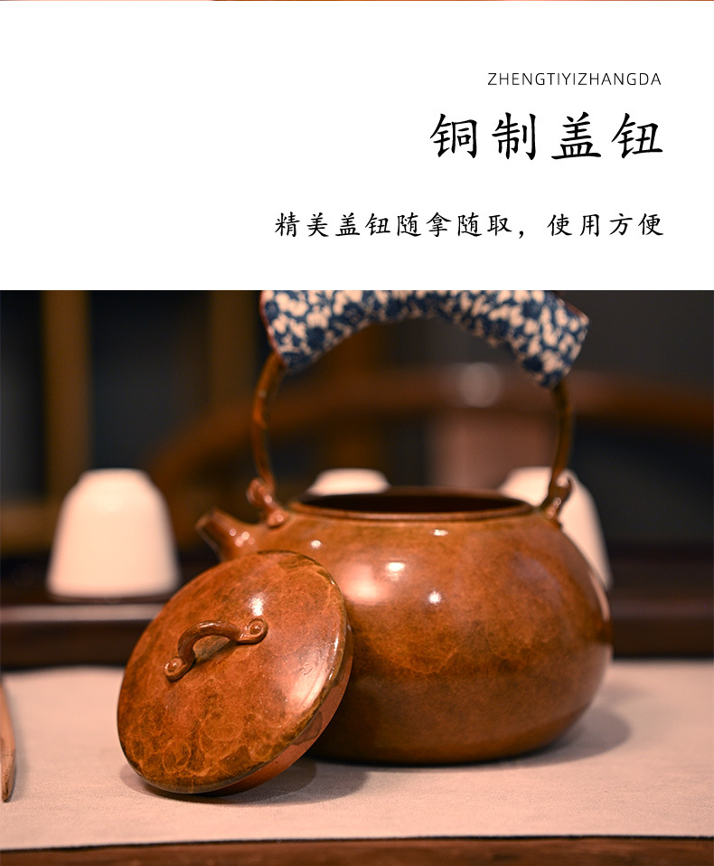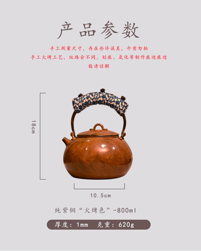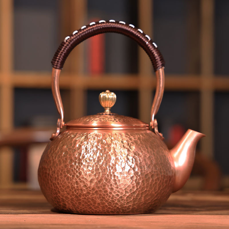 A handmade copper teapot, kettle, pure copper, pure purple copper, tea brewing, tea boiling, water boiling, tea pot, Kung Fu tea set