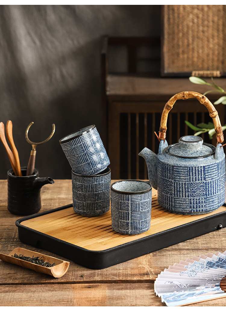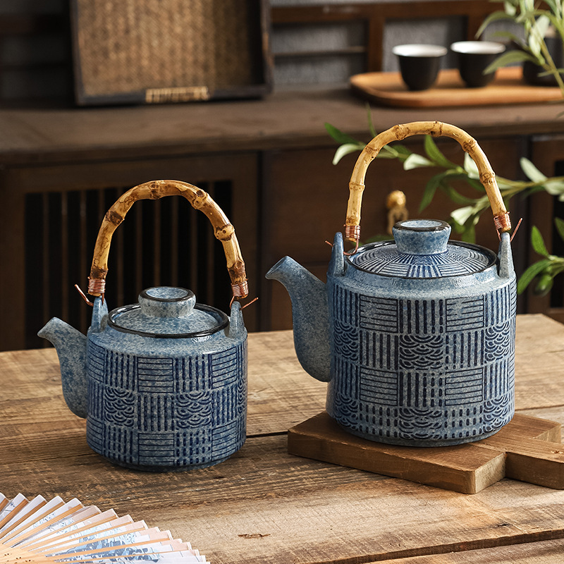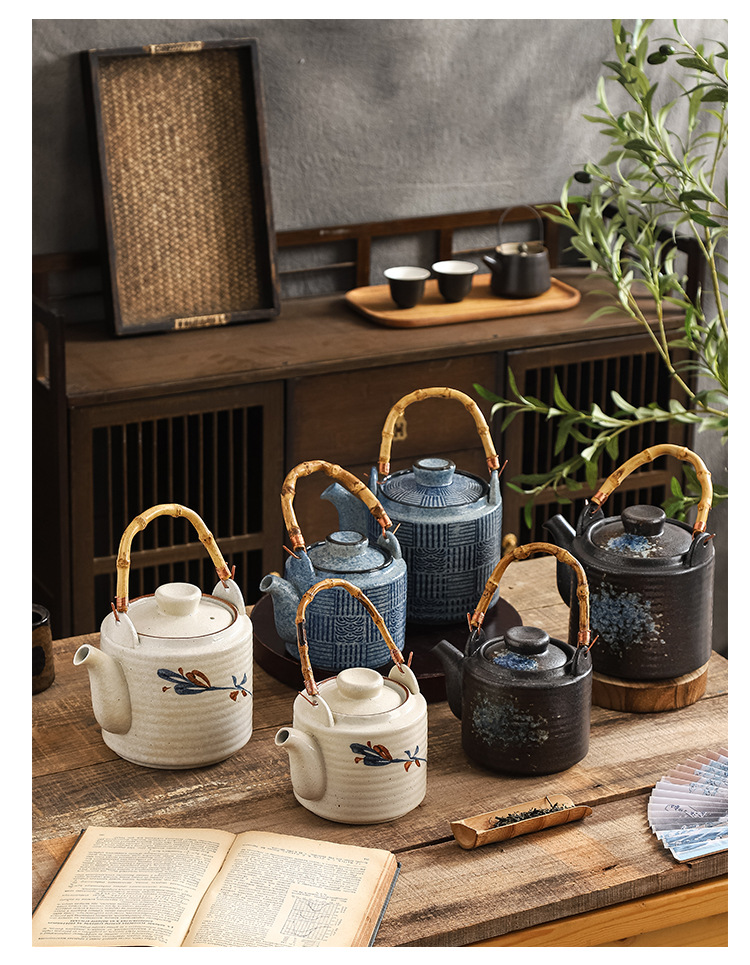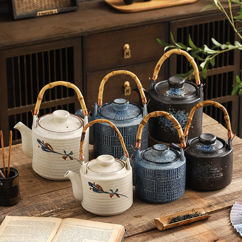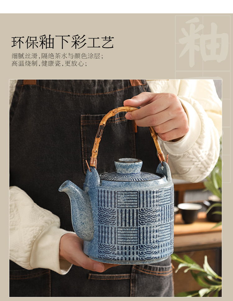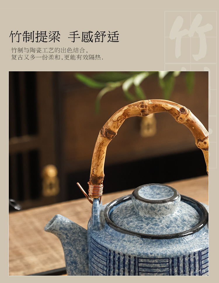 Chinese ceramic large capacity teapot, handle pot, large tea pot set, combination of Kung Fu tea set, small tea pot, restaurant