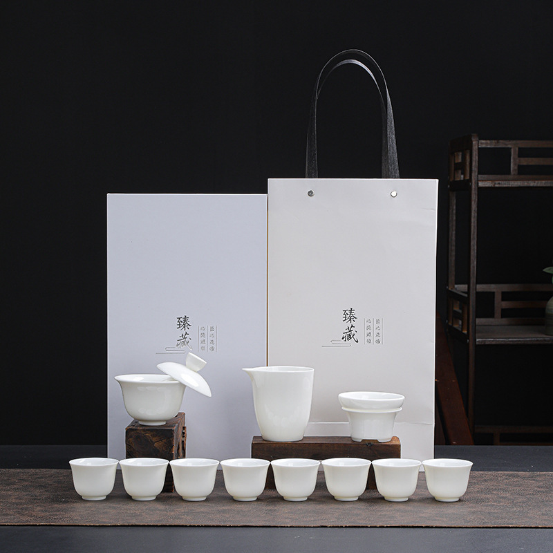 Овчинный жир нефрит белый фарфор кунг - фу чайный набор домашняя простая компания ежегодное открытие подарки