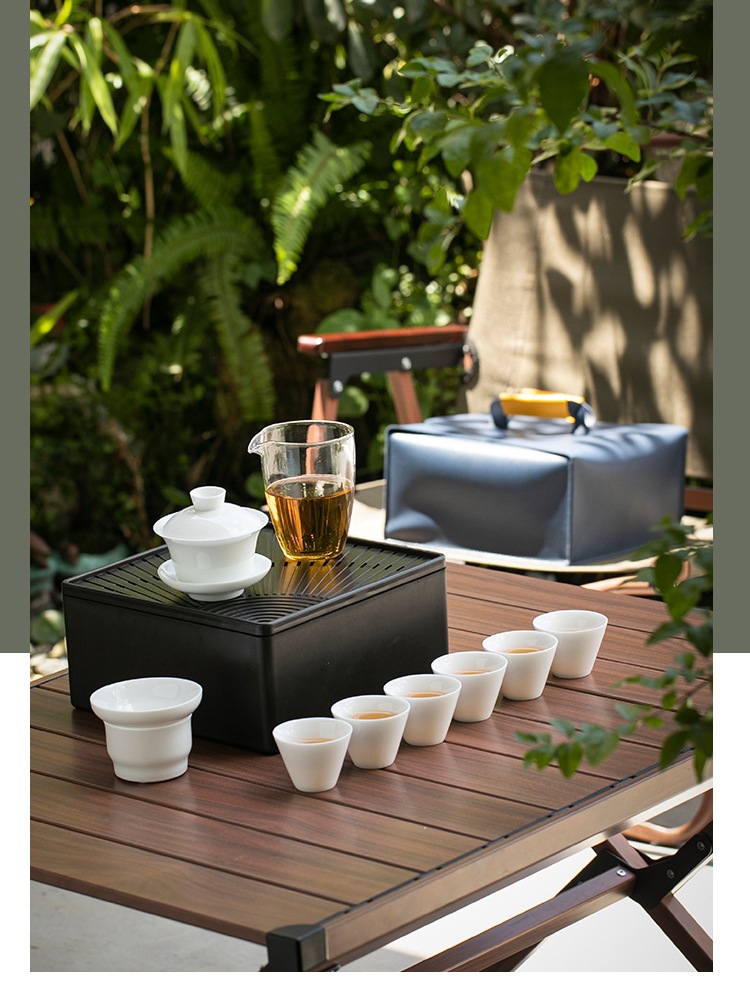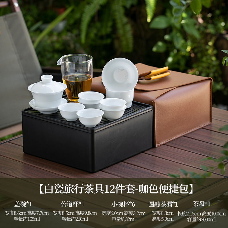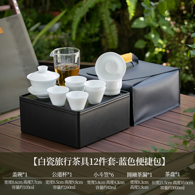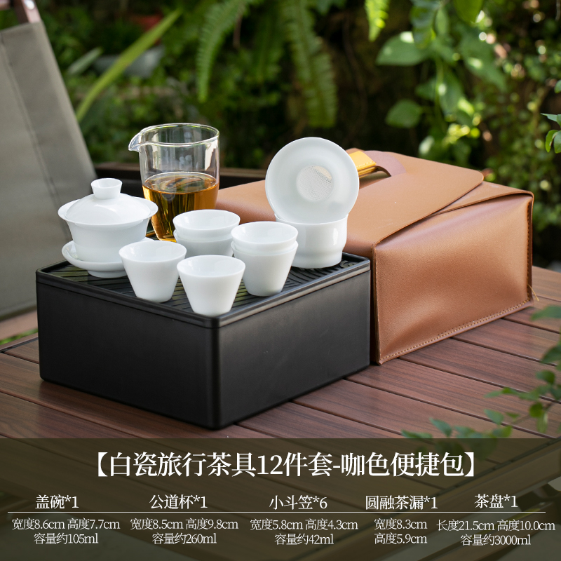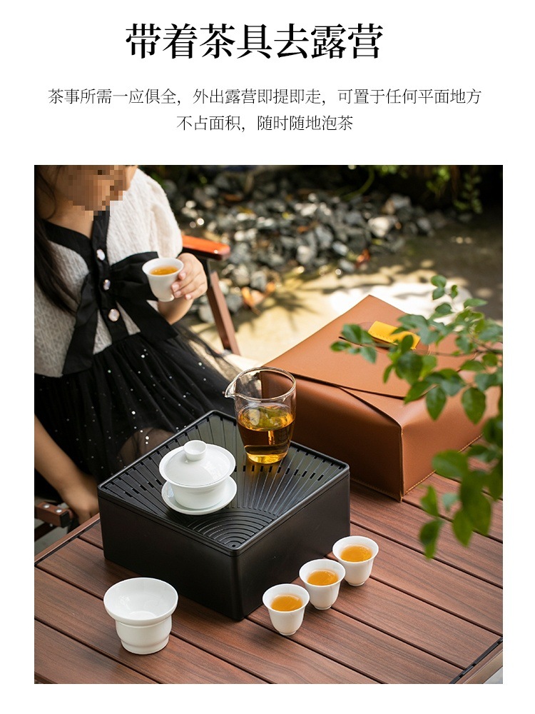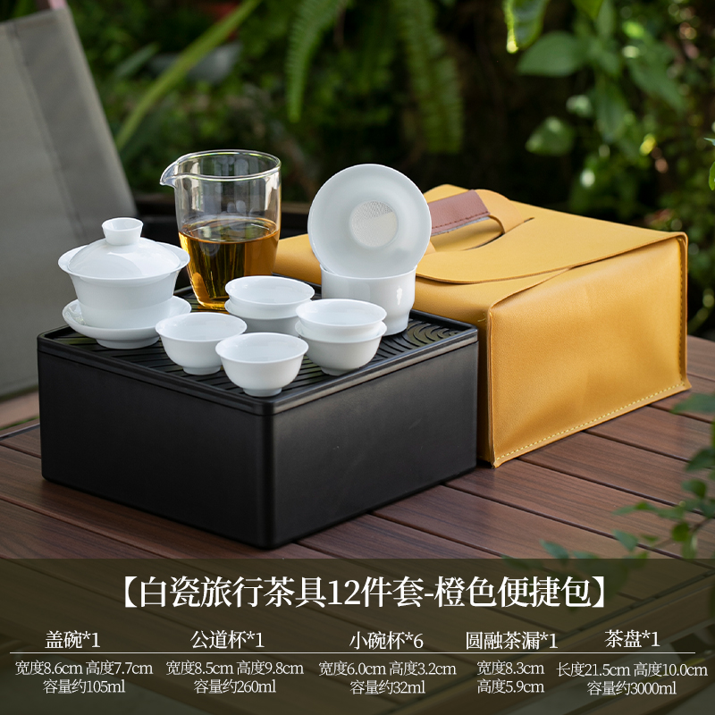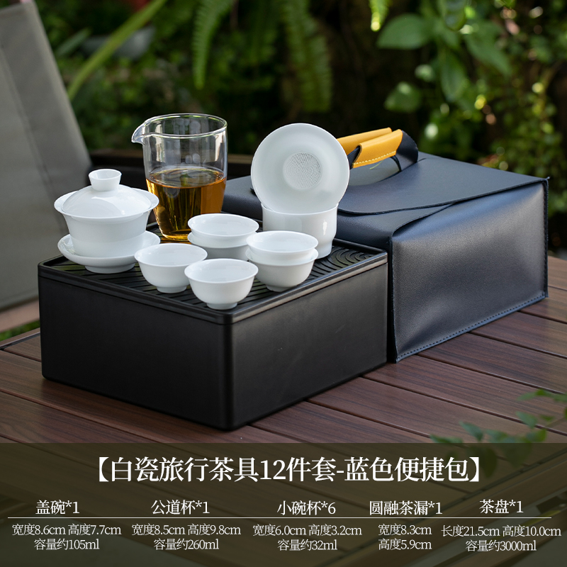 德化白瓷功夫旅行茶具茶盘套装家用盖碗泡茶杯储水盘陶瓷logo定s^
