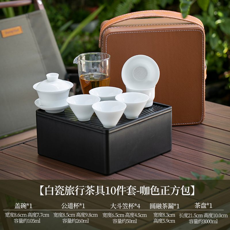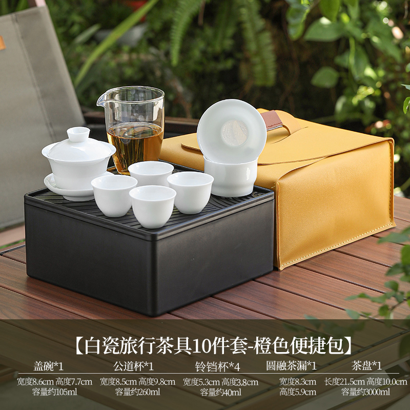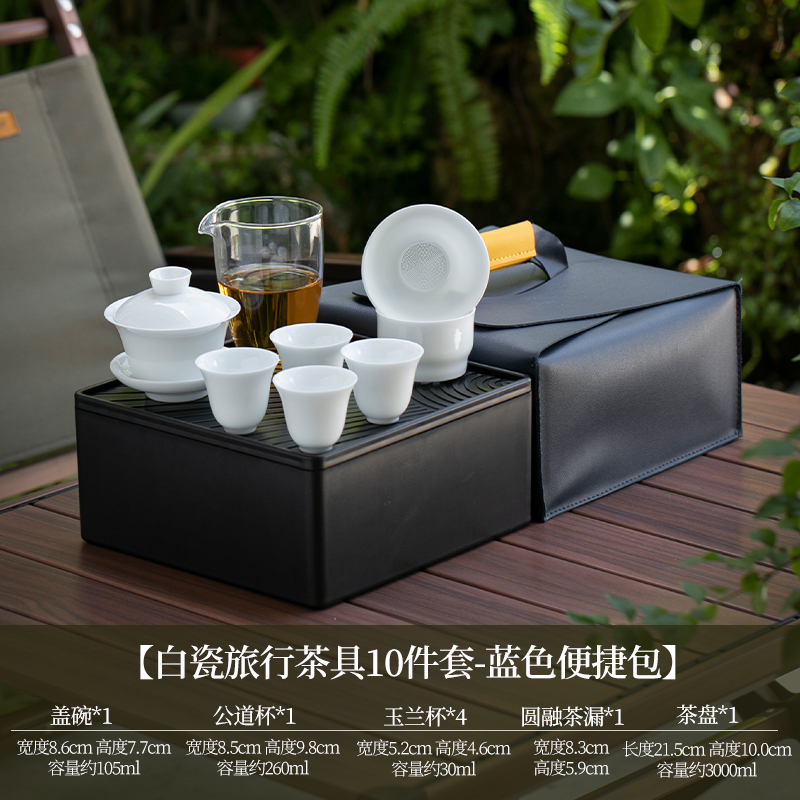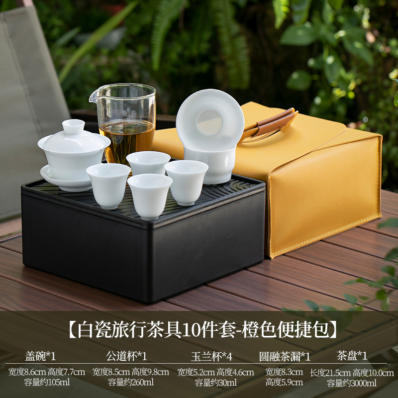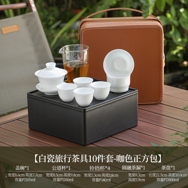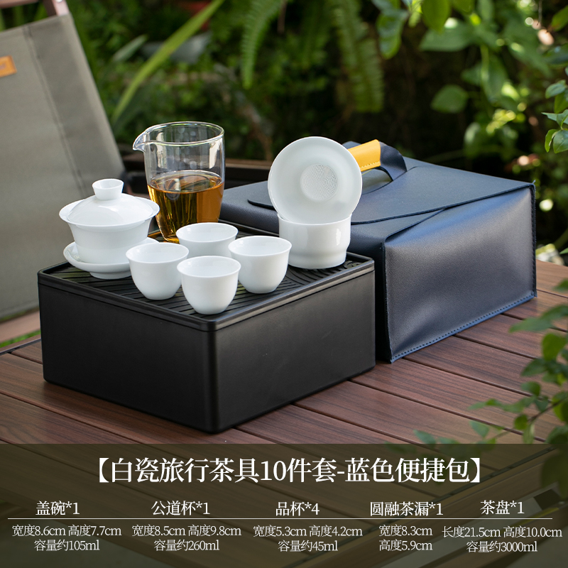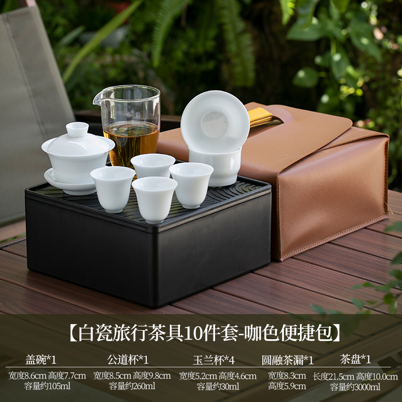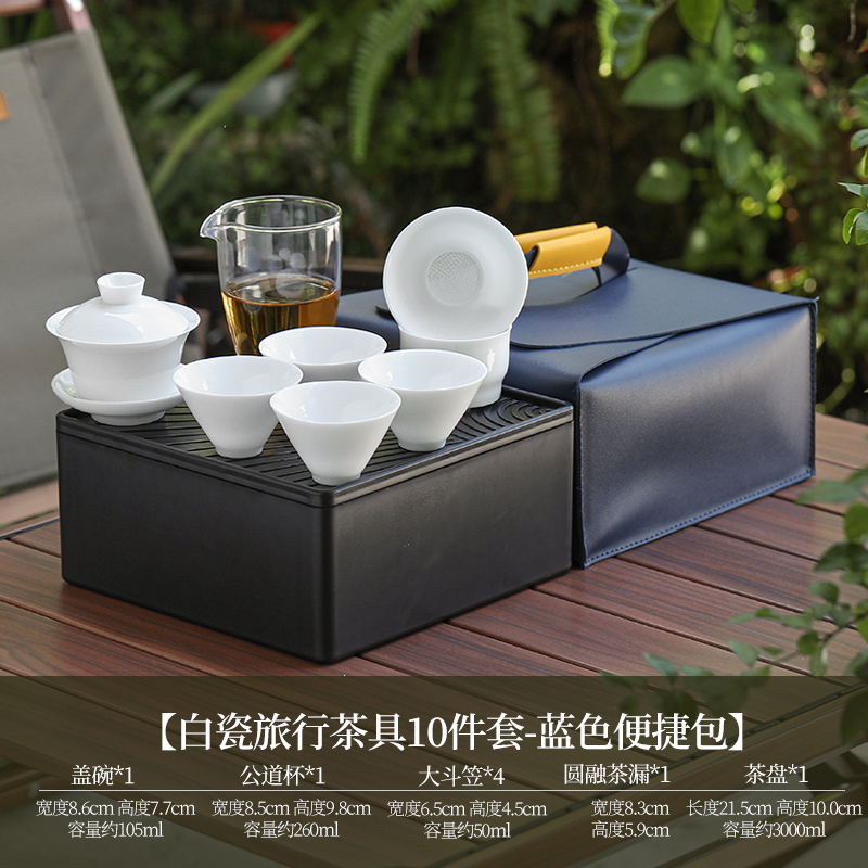 德化白瓷功夫旅行茶具茶盘套装家用盖碗泡茶杯储水盘陶瓷logo定s^