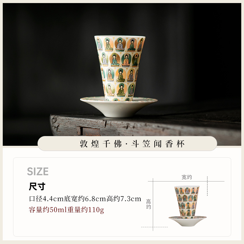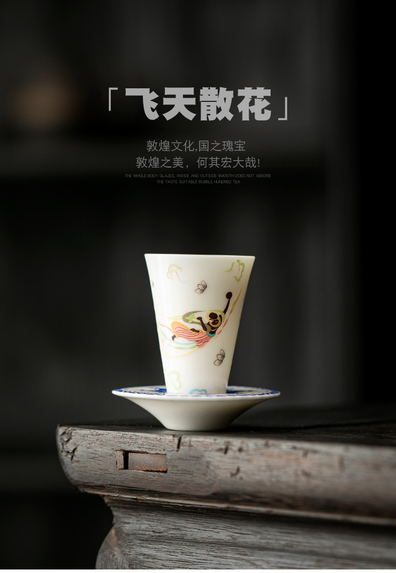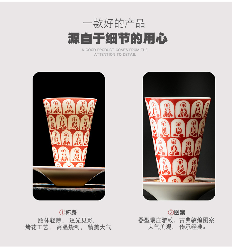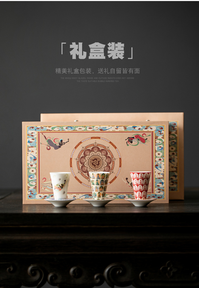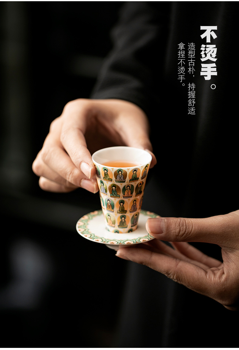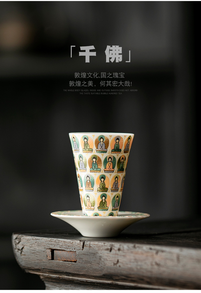 敦煌千佛茶杯带杯垫套装家用功夫陶瓷品茗杯高档主人杯闻香杯单杯