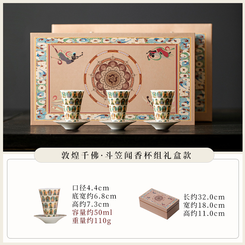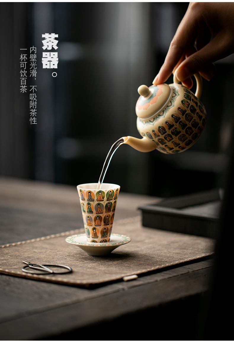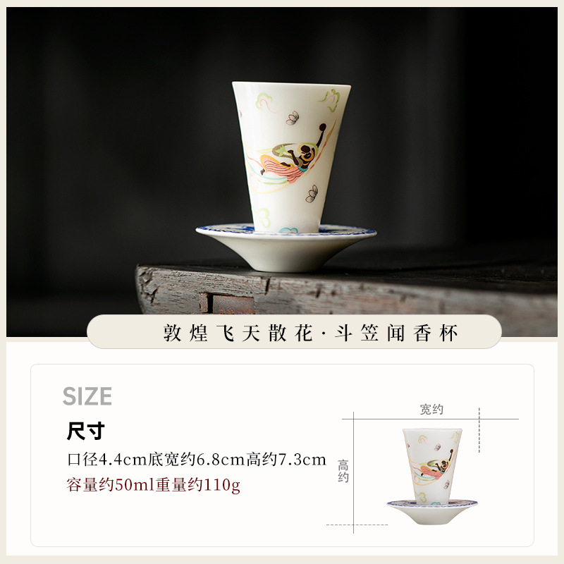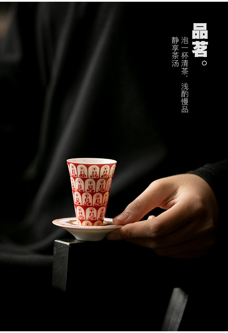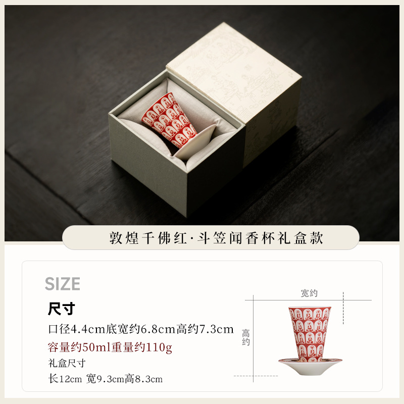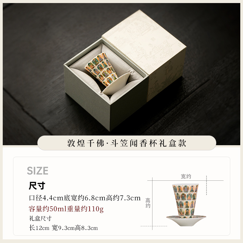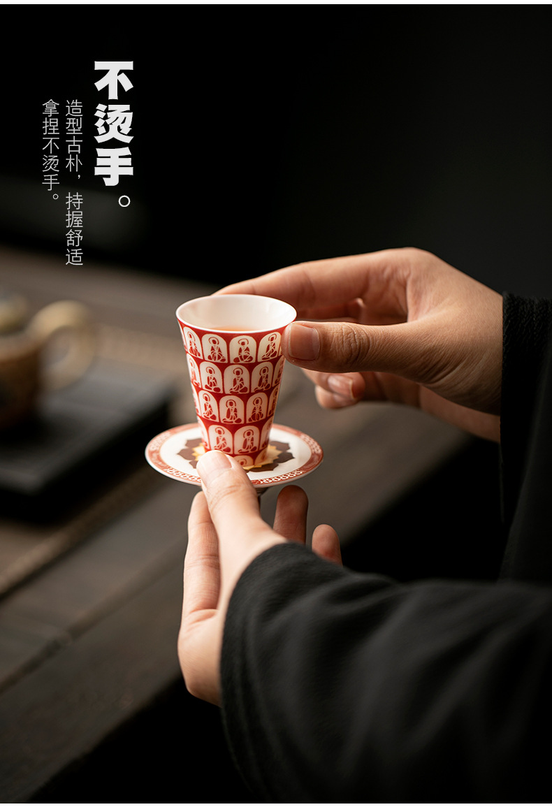 敦煌千佛茶杯带杯垫套装家用功夫陶瓷品茗杯高档主人杯闻香杯单杯