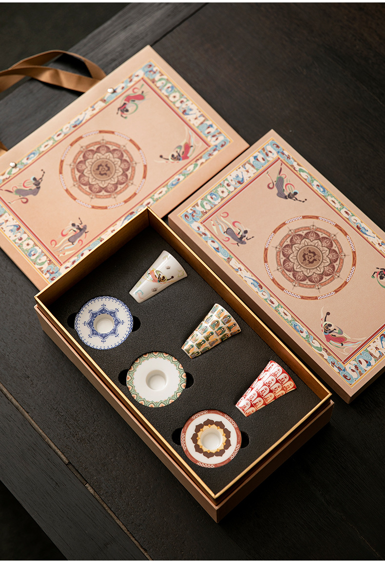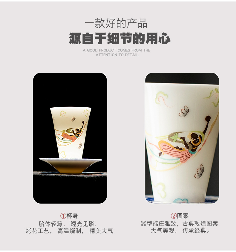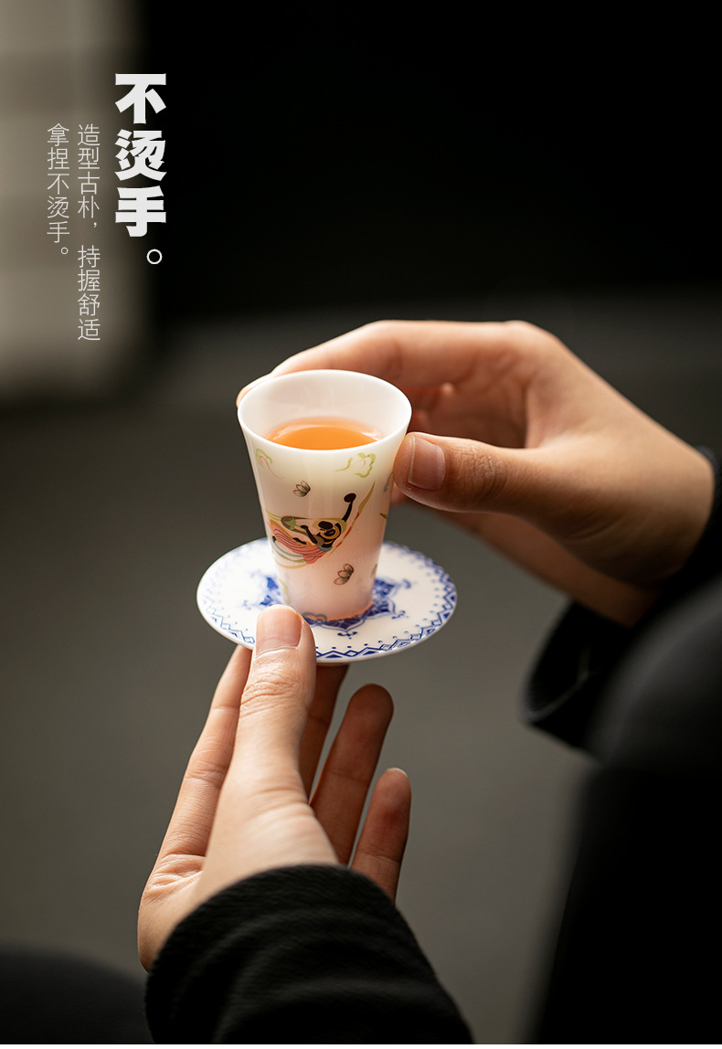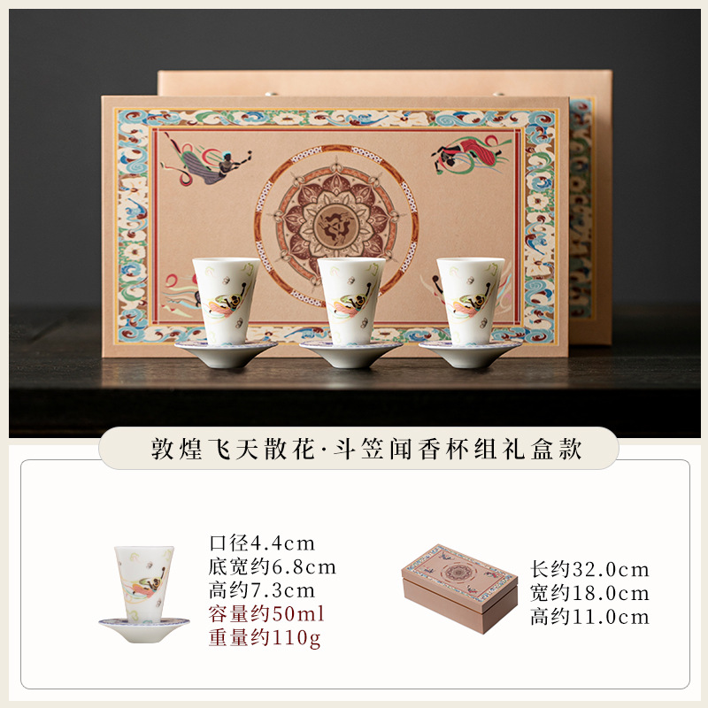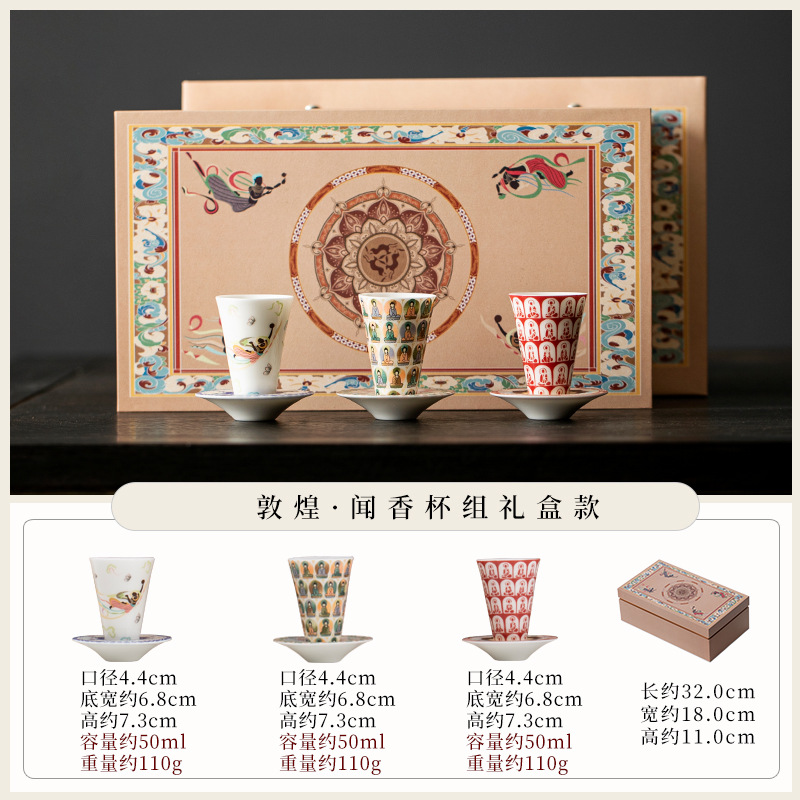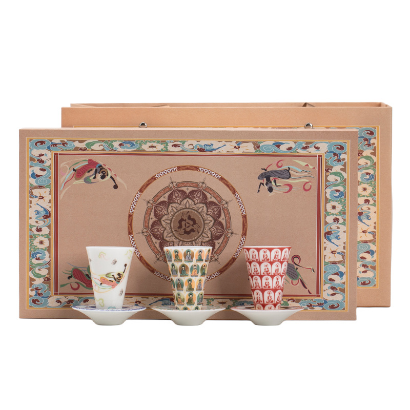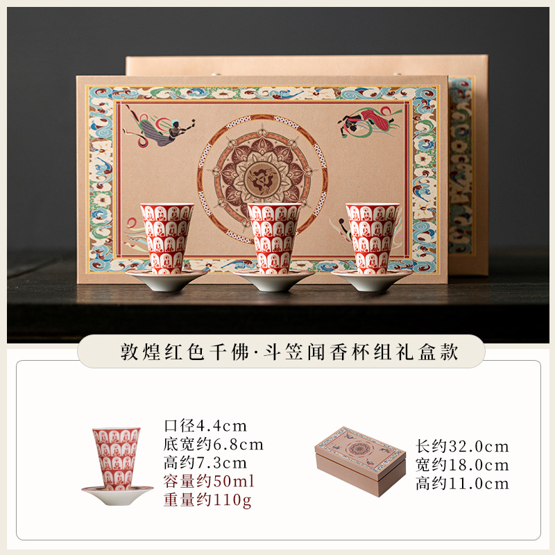 敦煌千佛茶杯带杯垫套装家用功夫陶瓷品茗杯高档主人杯闻香杯单杯