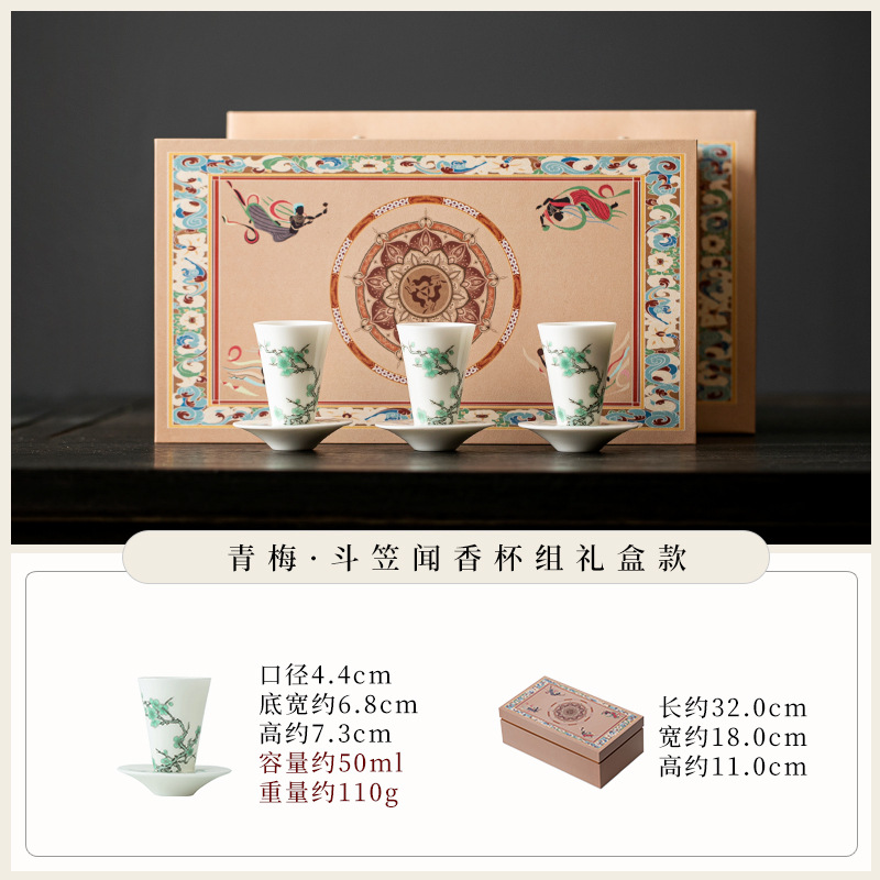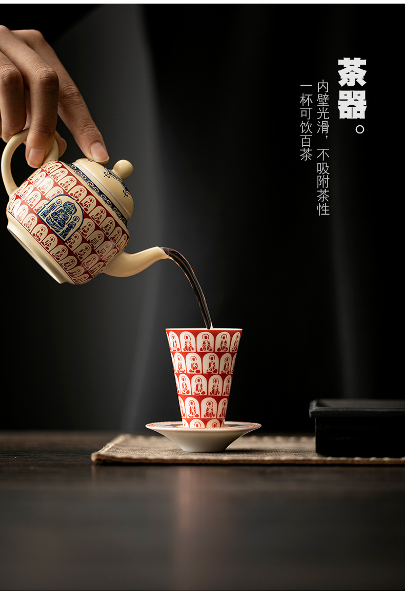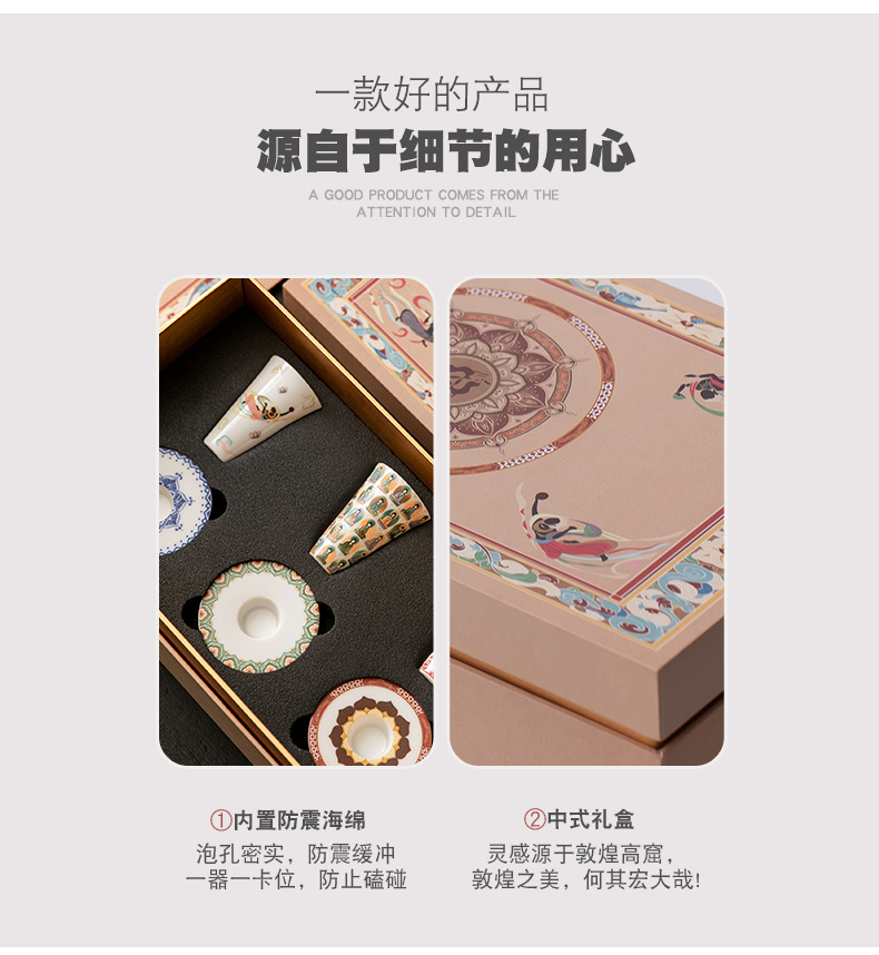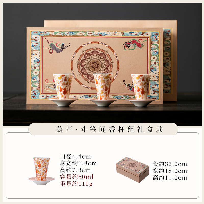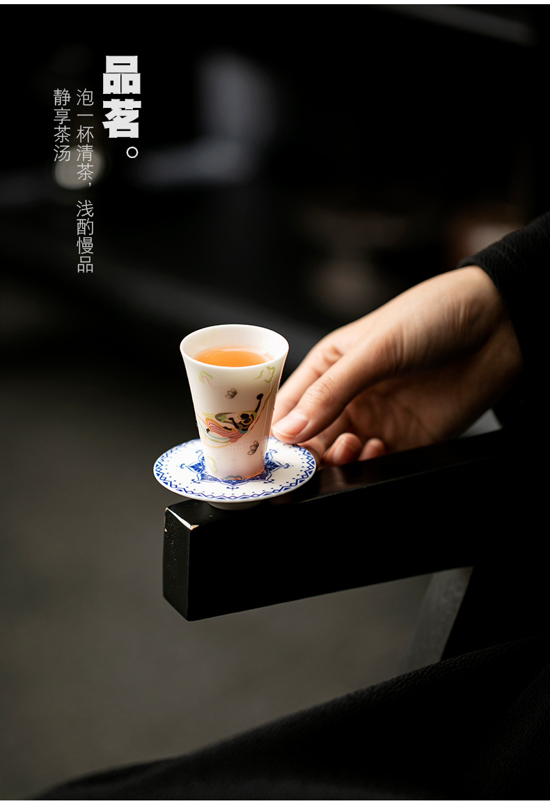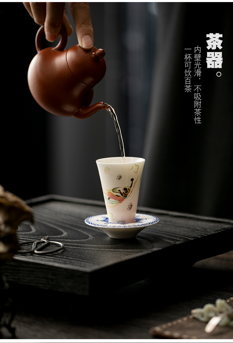 敦煌千佛茶杯带杯垫套装家用功夫陶瓷品茗杯高档主人杯闻香杯单杯