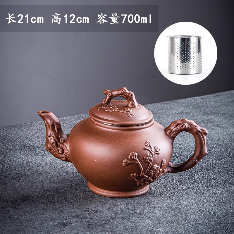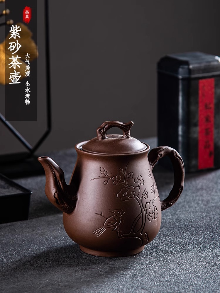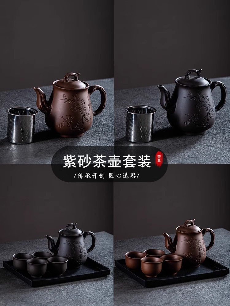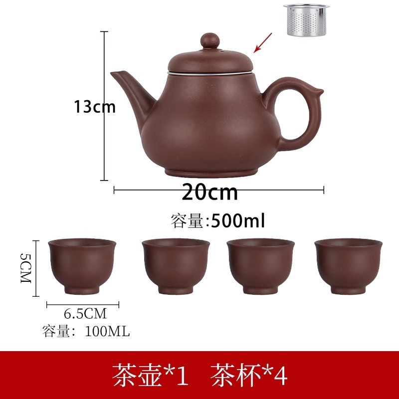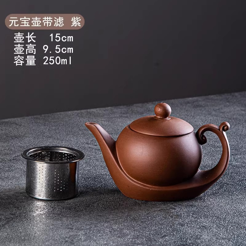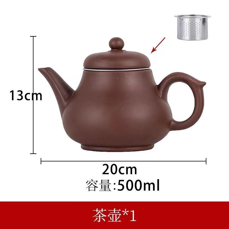 Yixing purple clay teapot, large capacity teapot, household tea brewing, built-in stainless steel filter, household kung fu tea set
