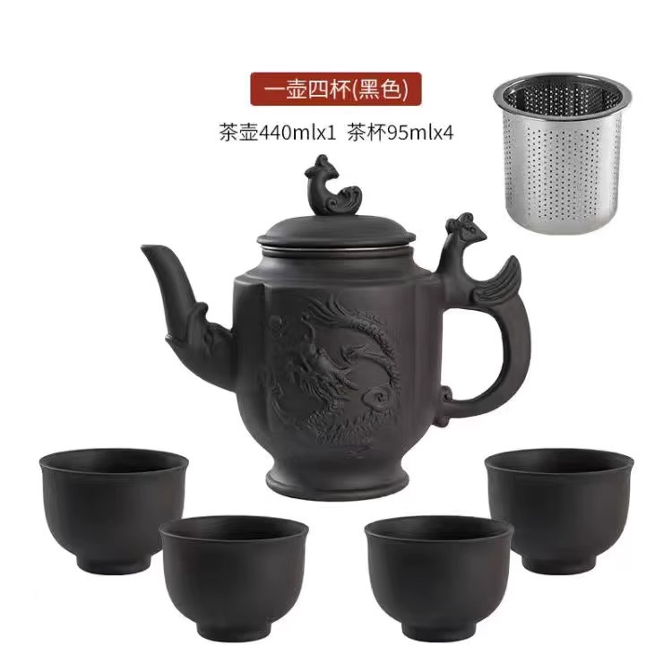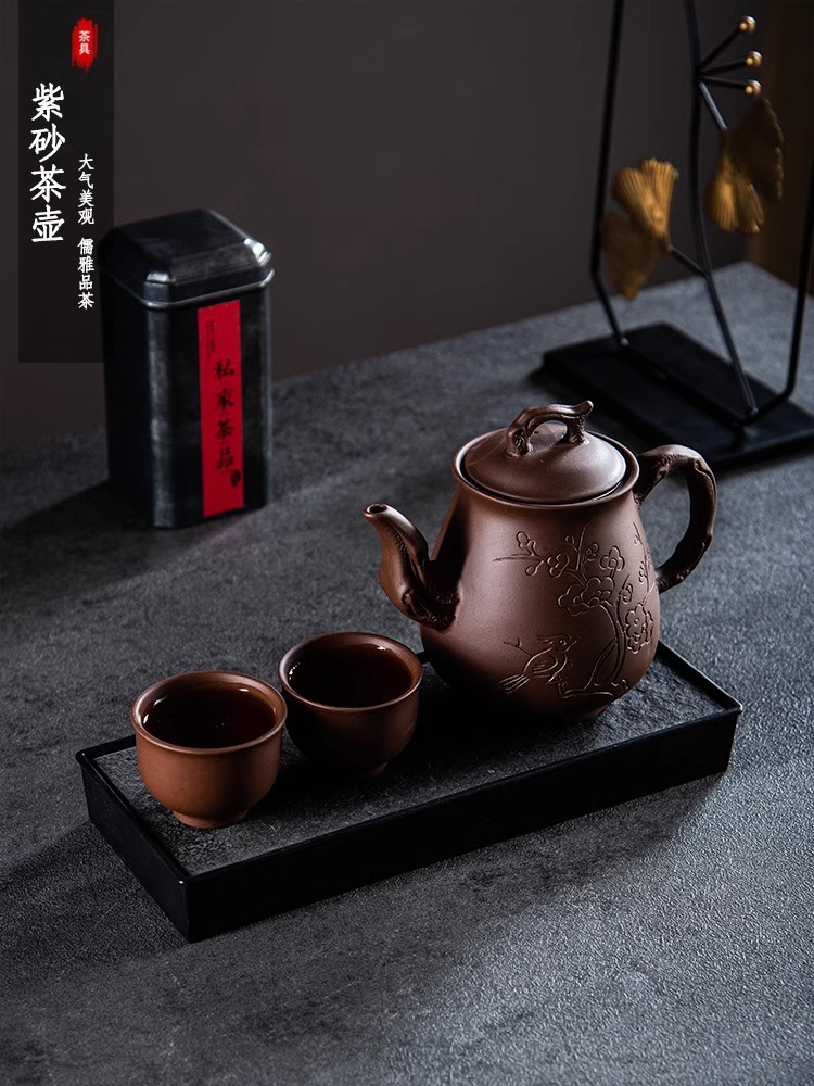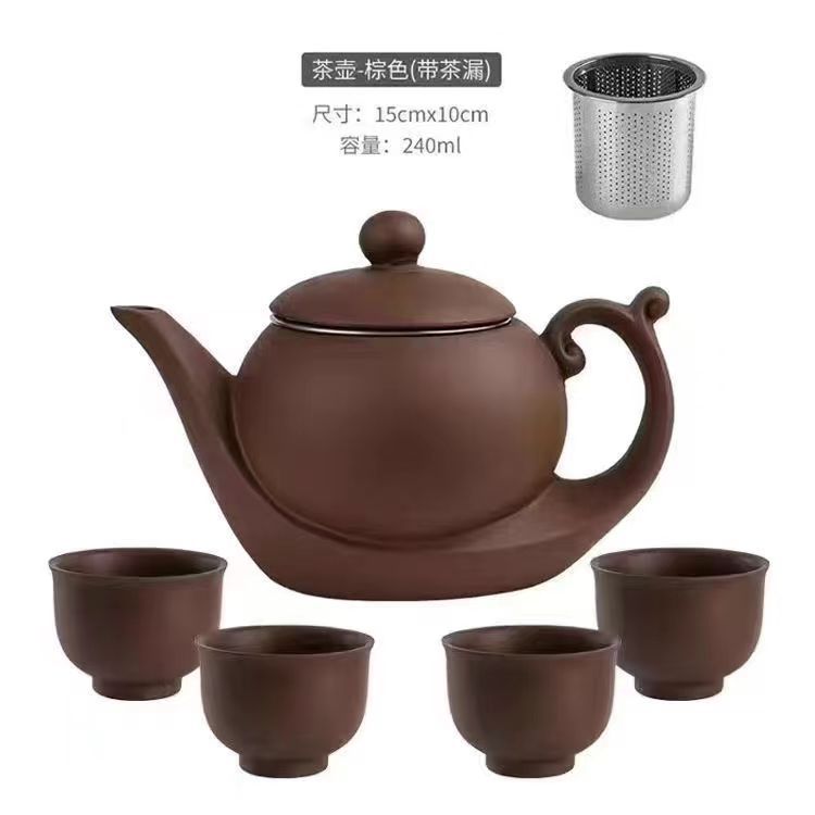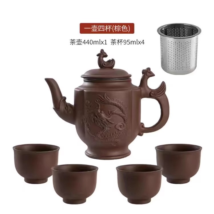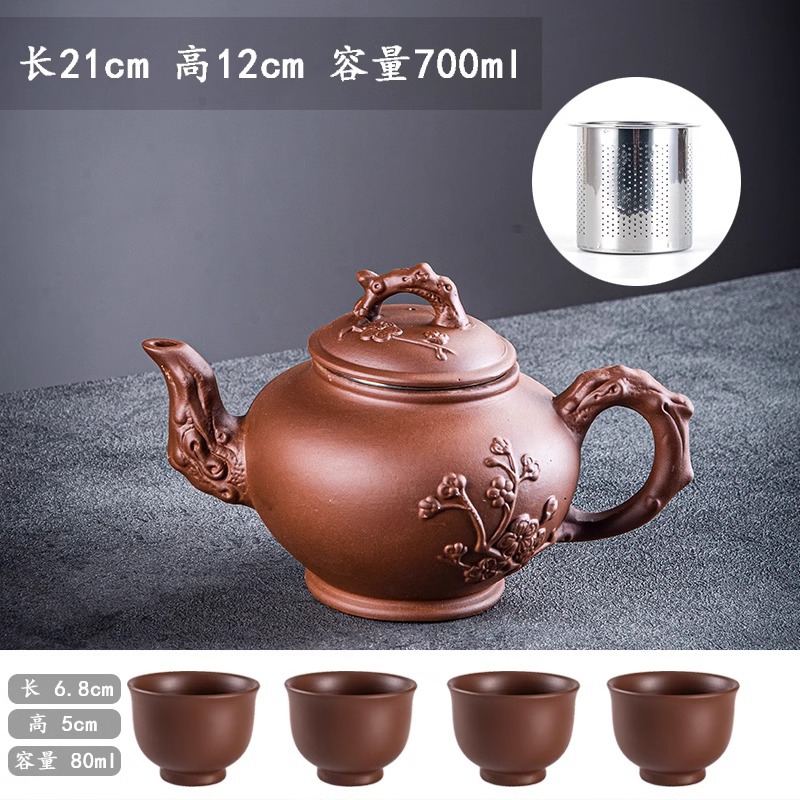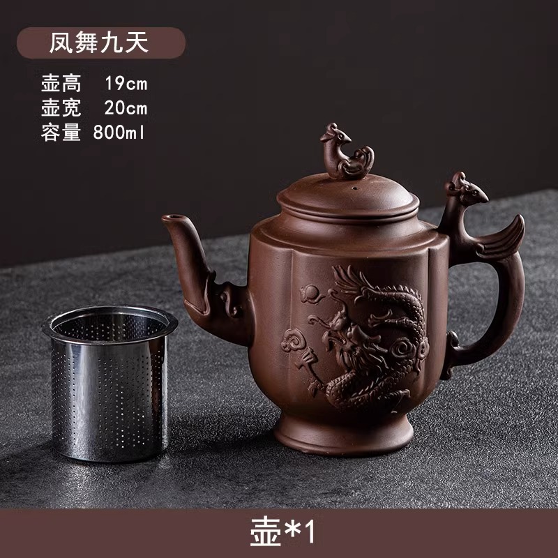 Yixing purple clay teapot, large capacity teapot, household tea brewing, built-in stainless steel filter, household kung fu tea set