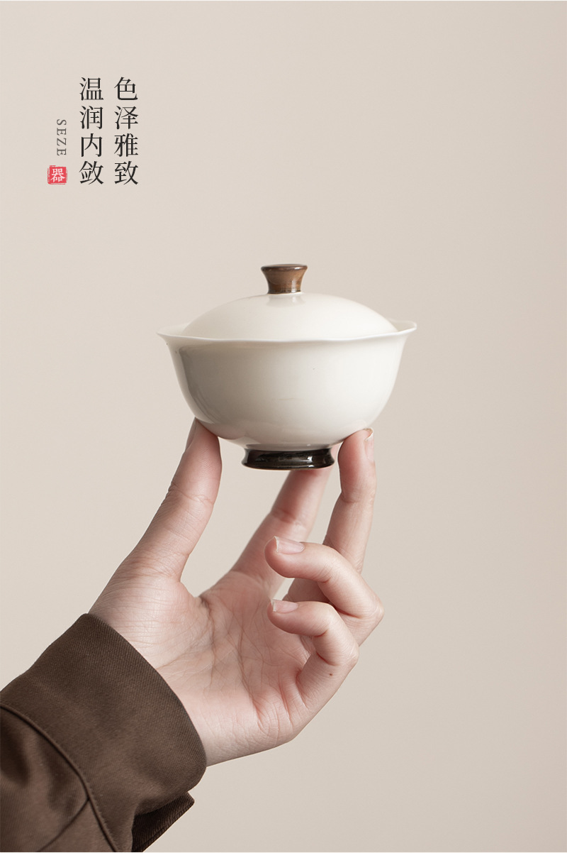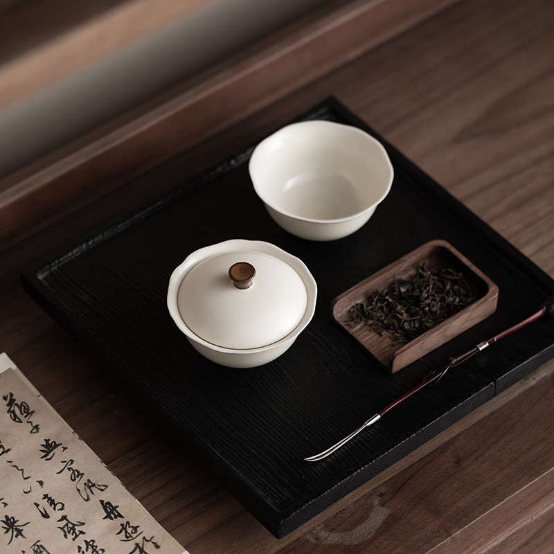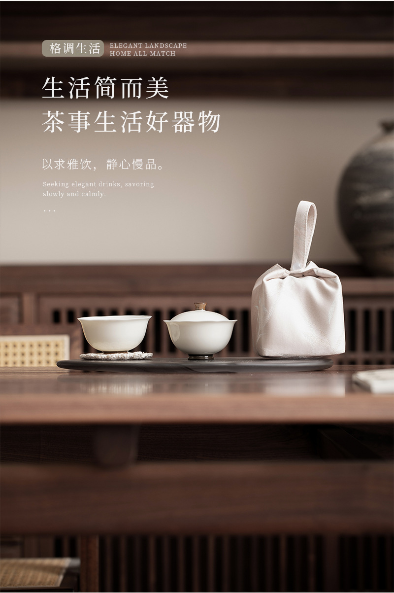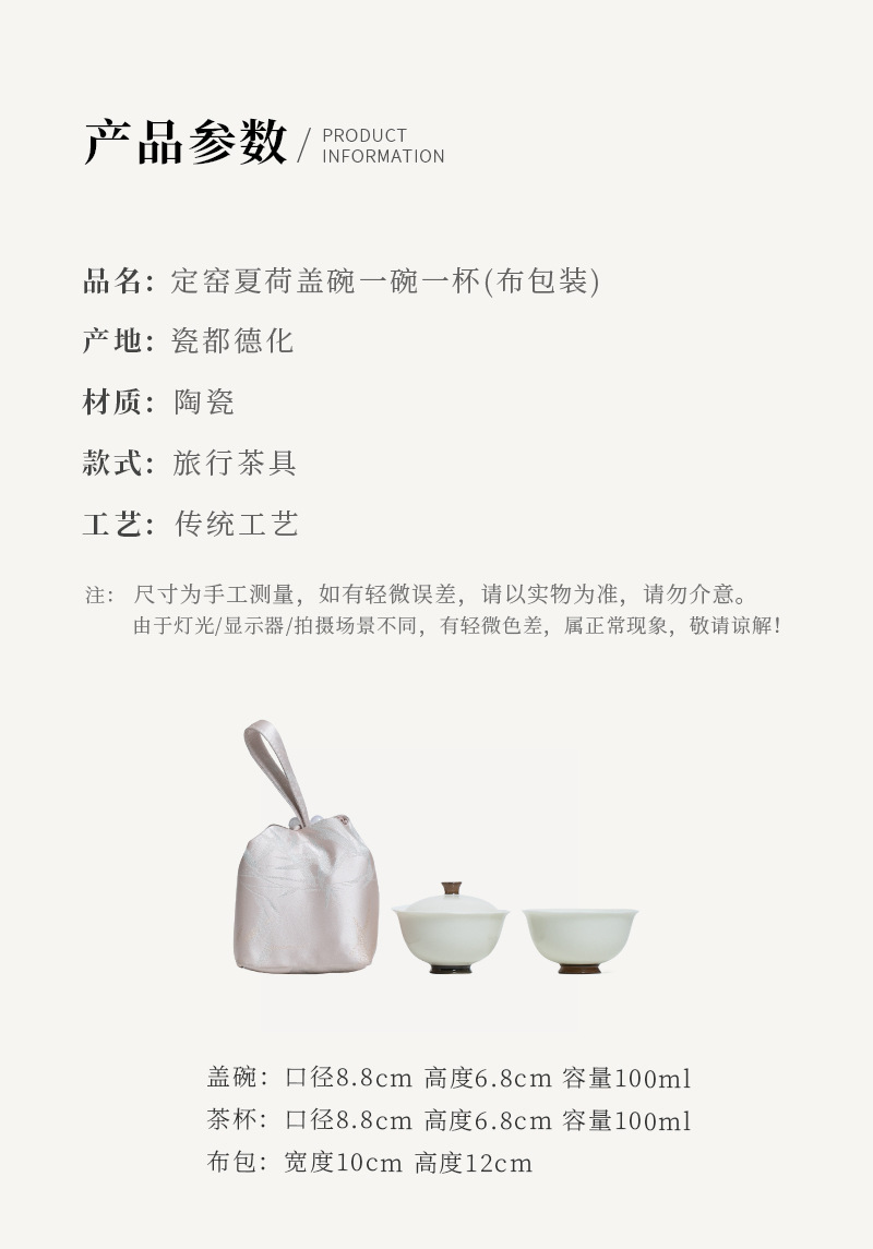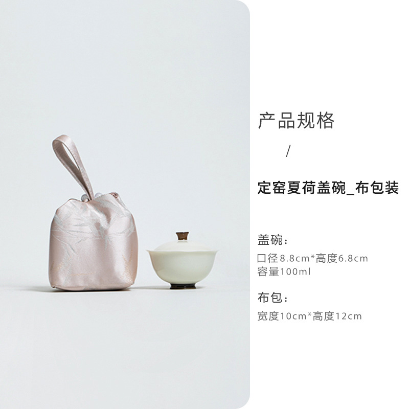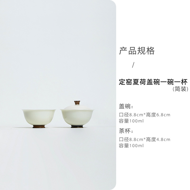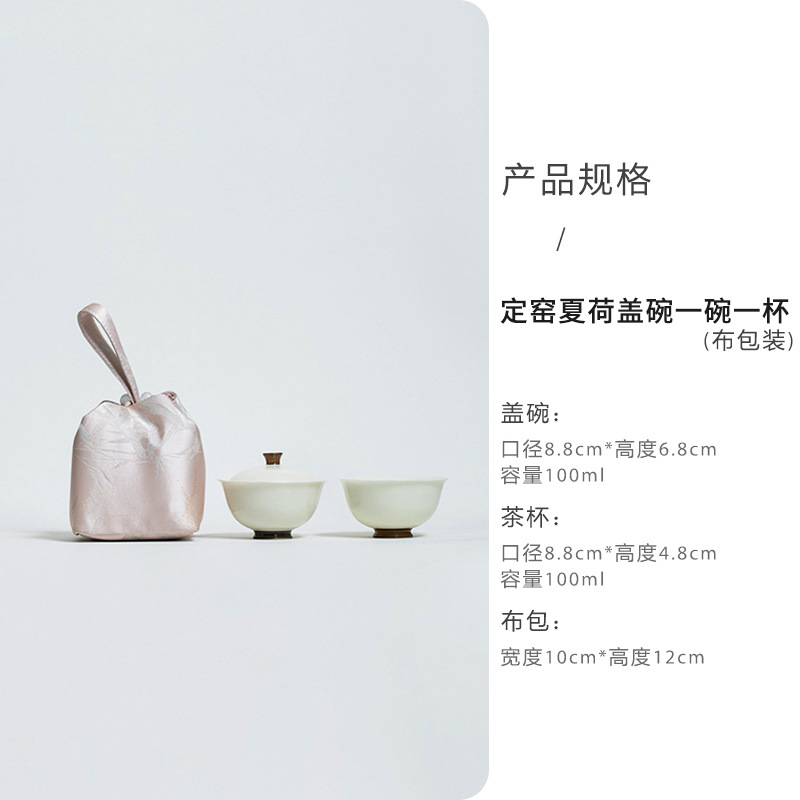 Chinese style Ding kiln white ceramics are not hot to the touch. They cover the bowl with two lids and a lotus lid. One bowl and one cup of tea set. Kung Fu travel set