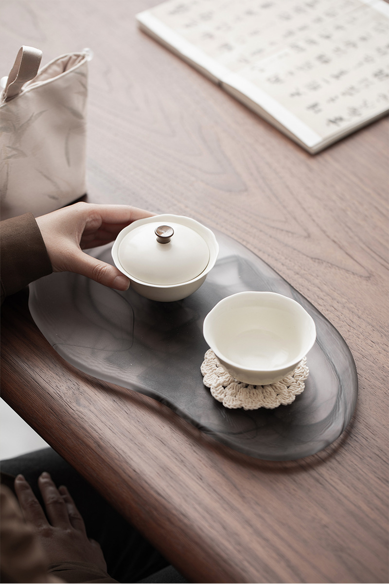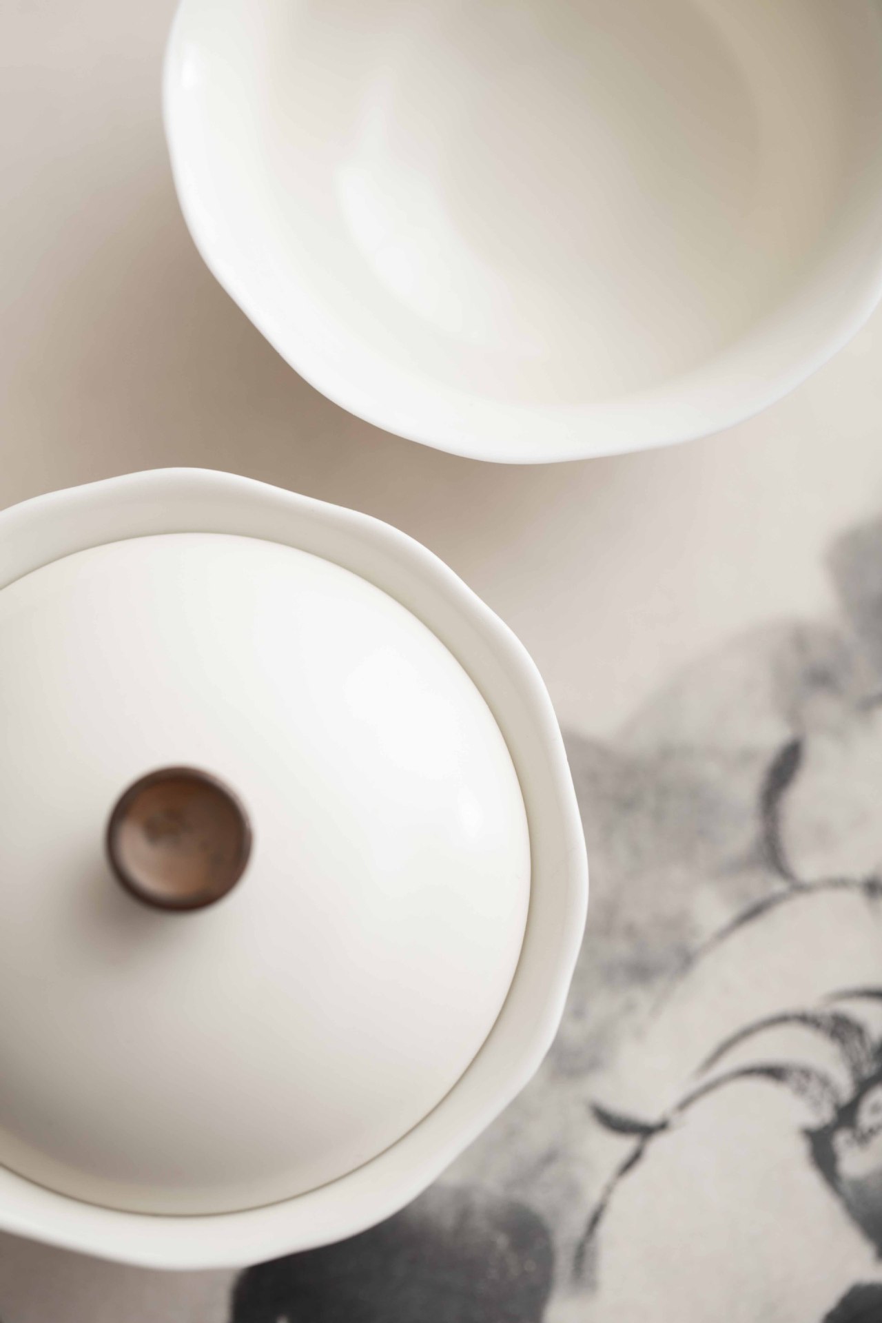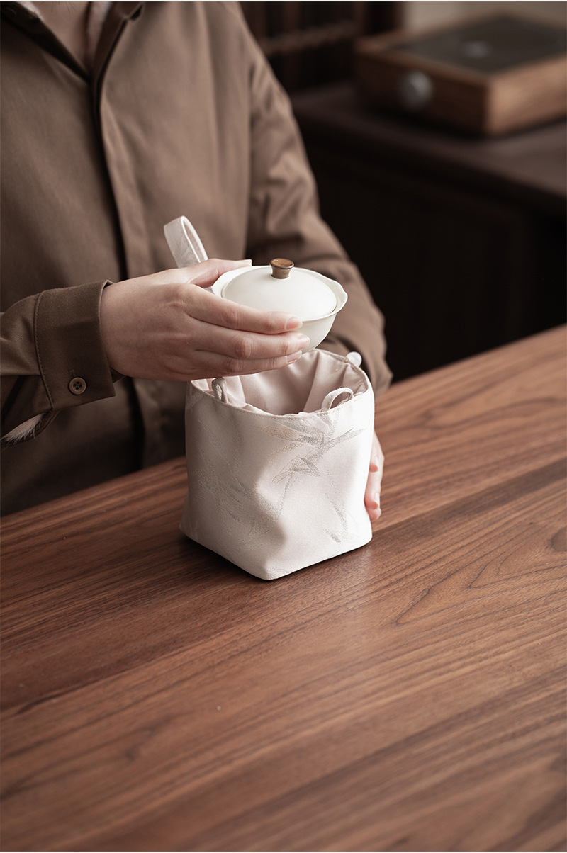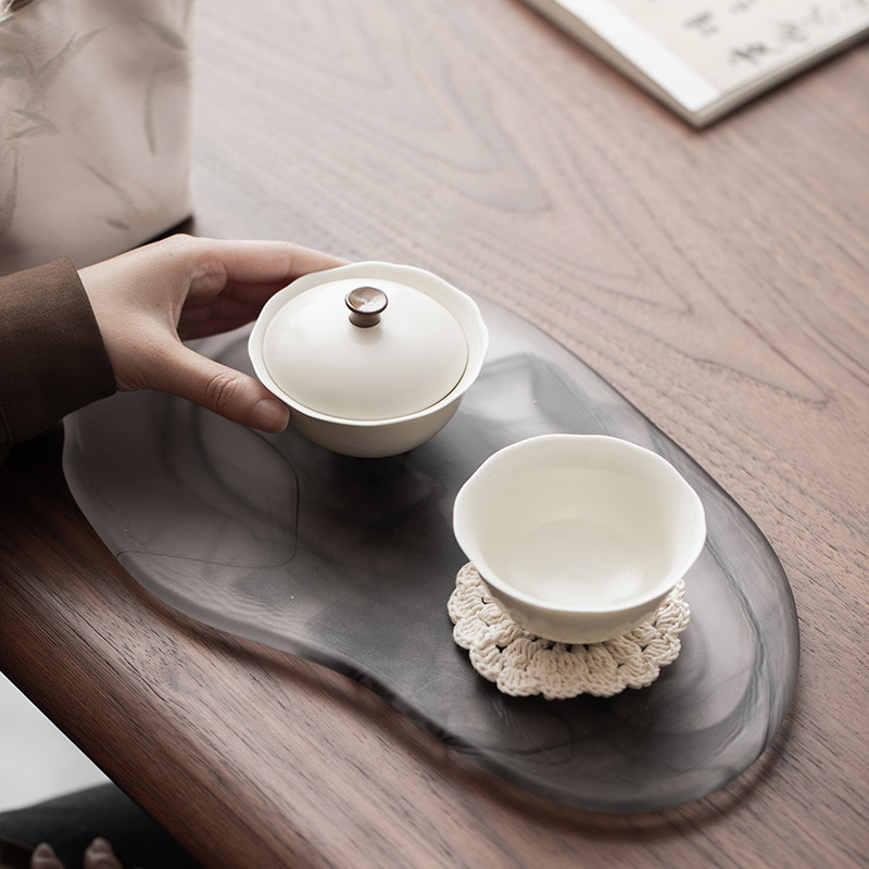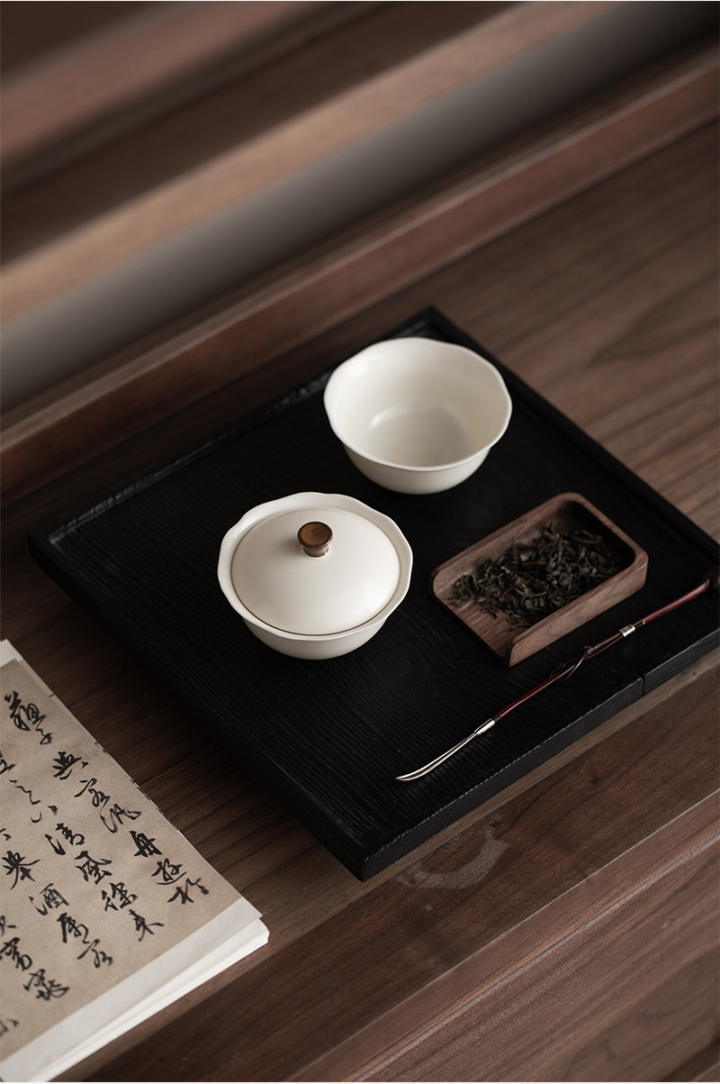 Chinese style Ding kiln white ceramics are not hot to the touch. They cover the bowl with two lids and a lotus lid. One bowl and one cup of tea set. Kung Fu travel set