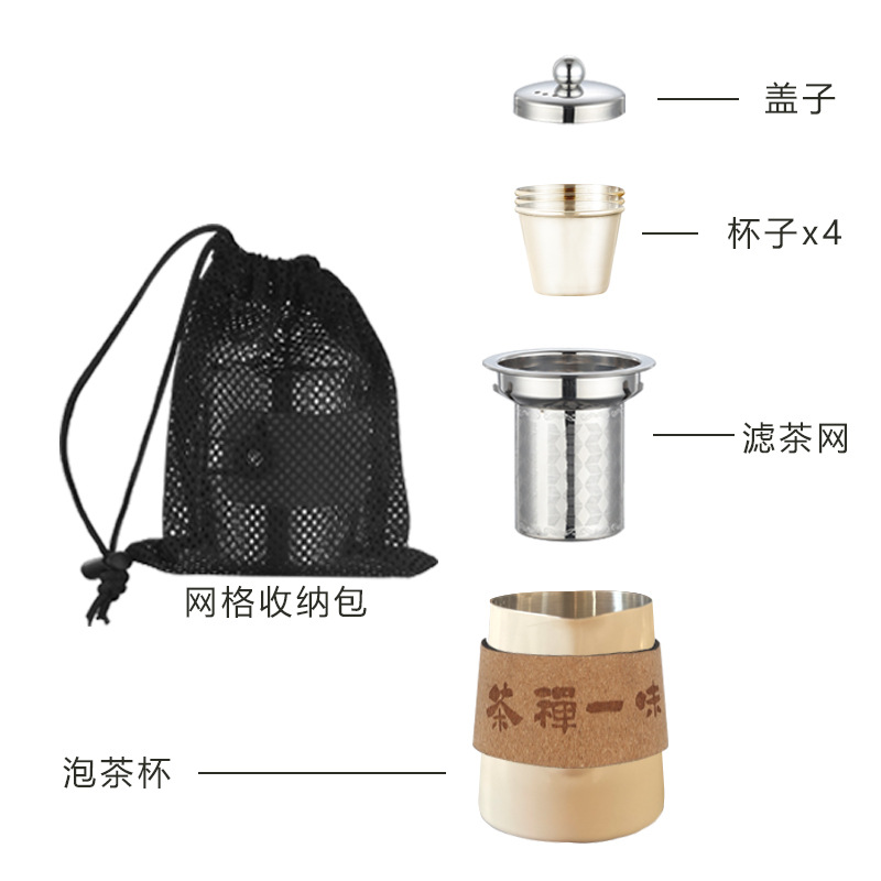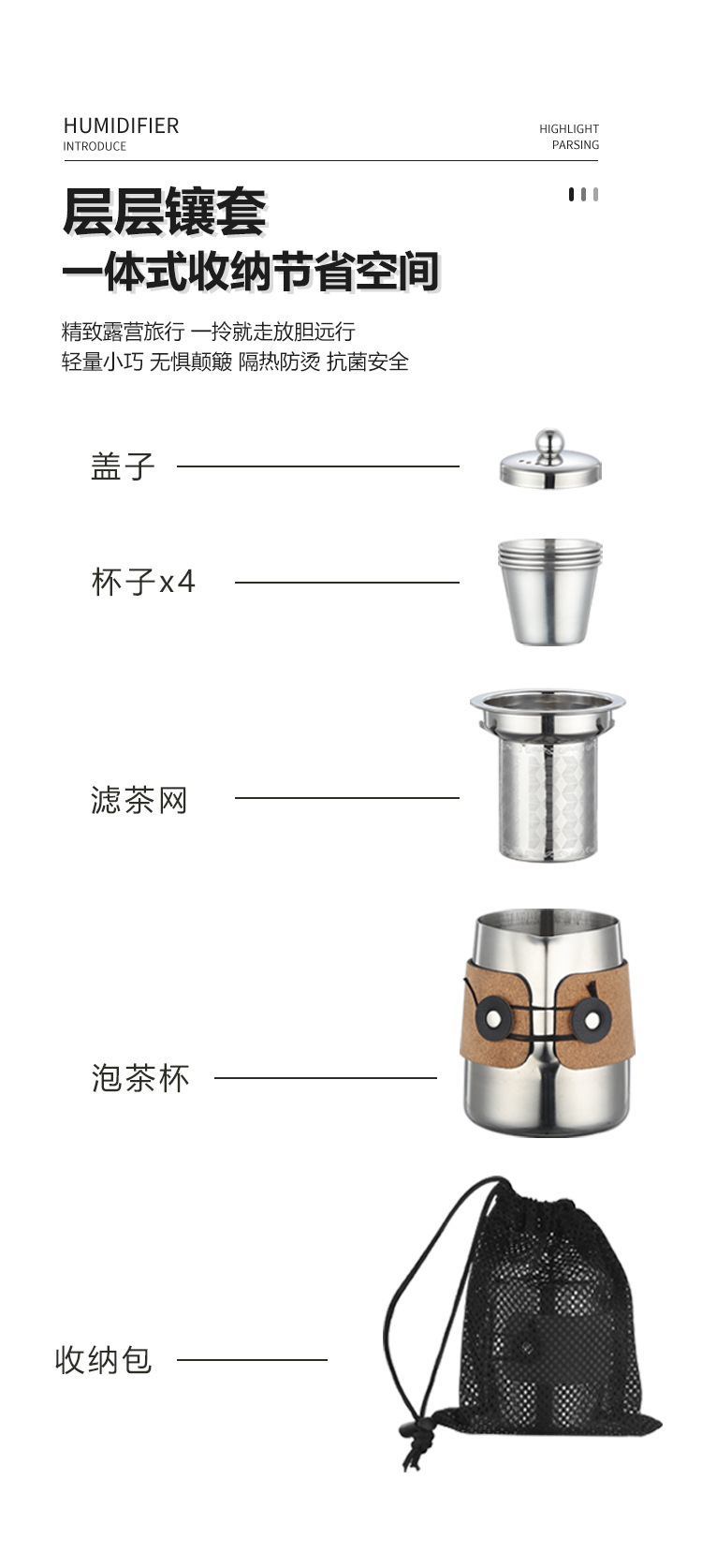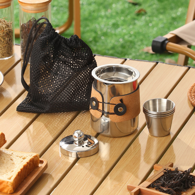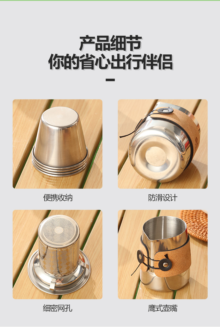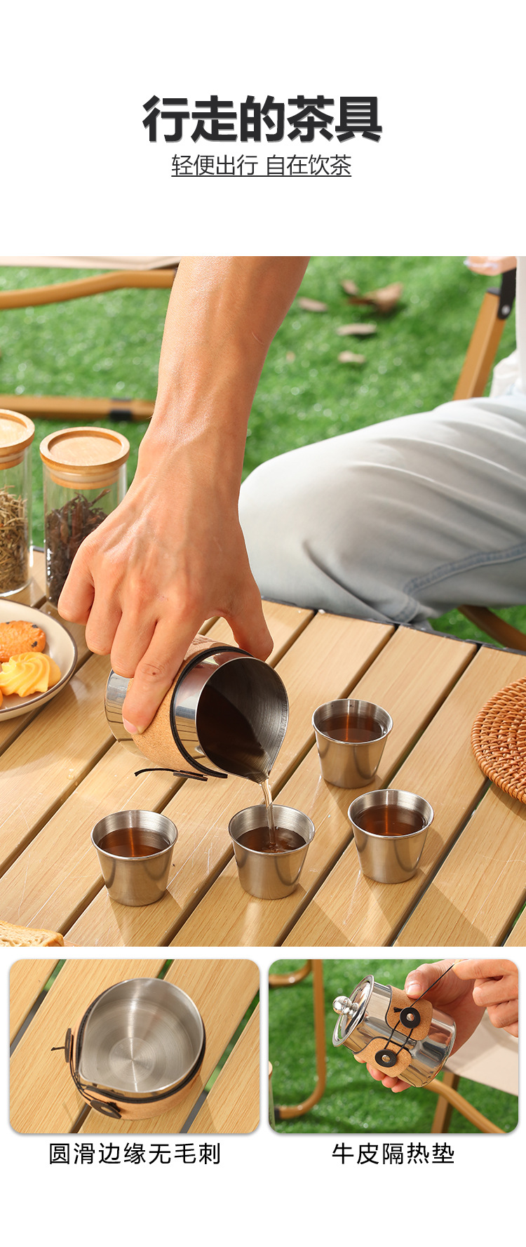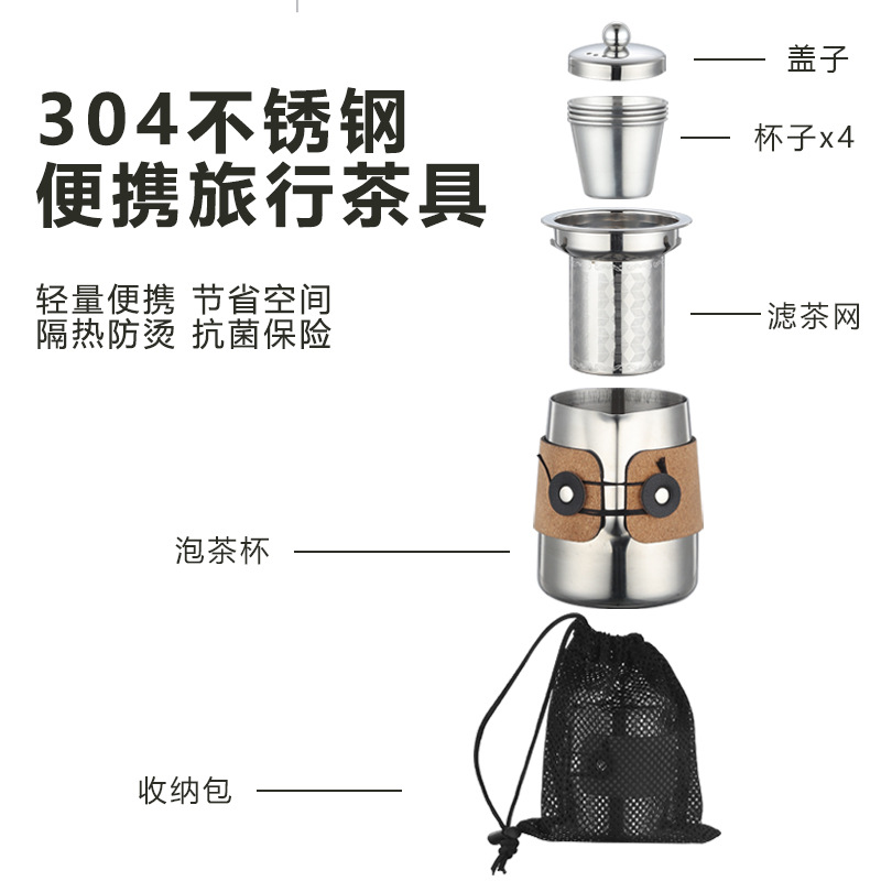 户外不锈钢便携功夫茶具户外泡茶器滤茶旅行野露营烧水壶家用套装