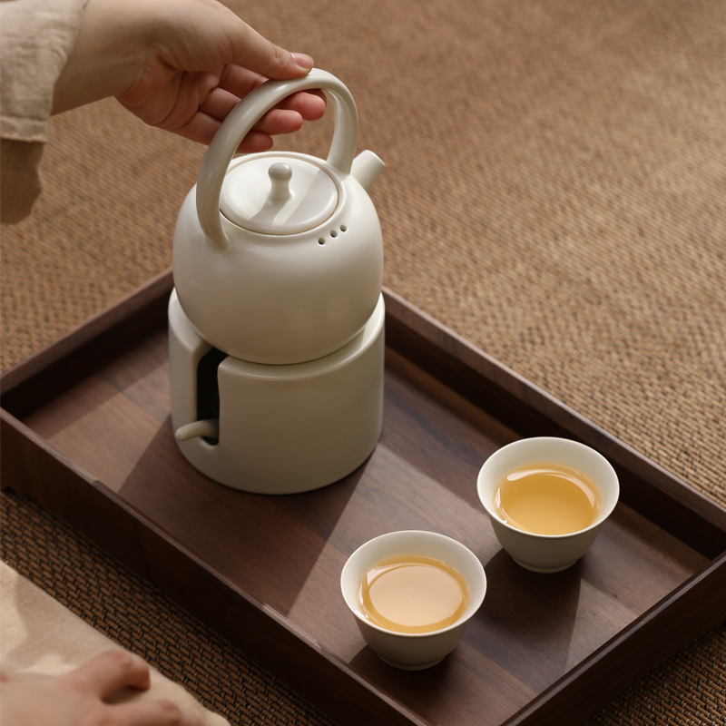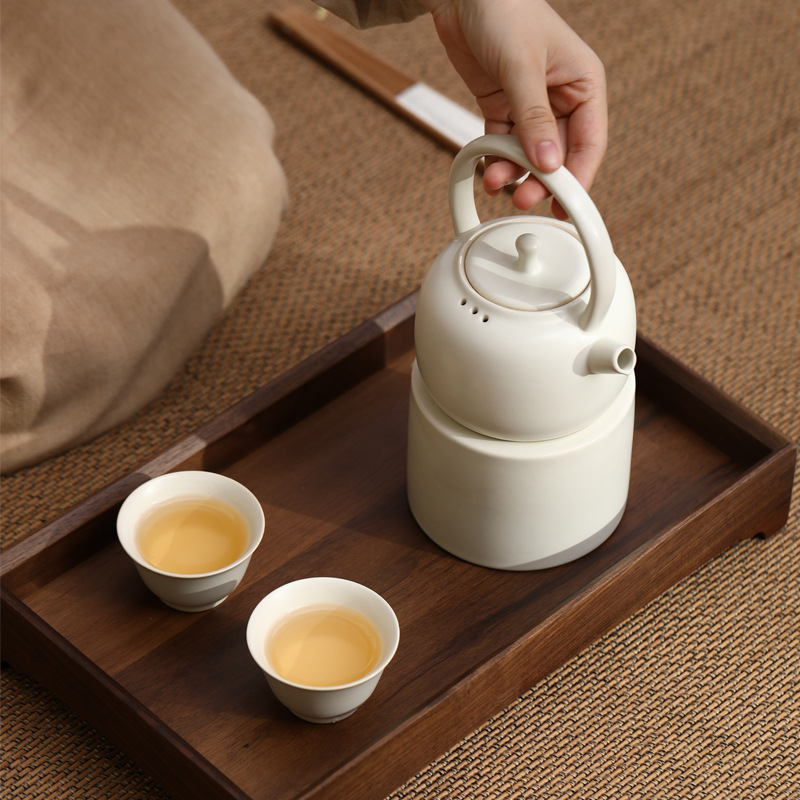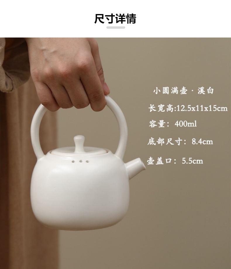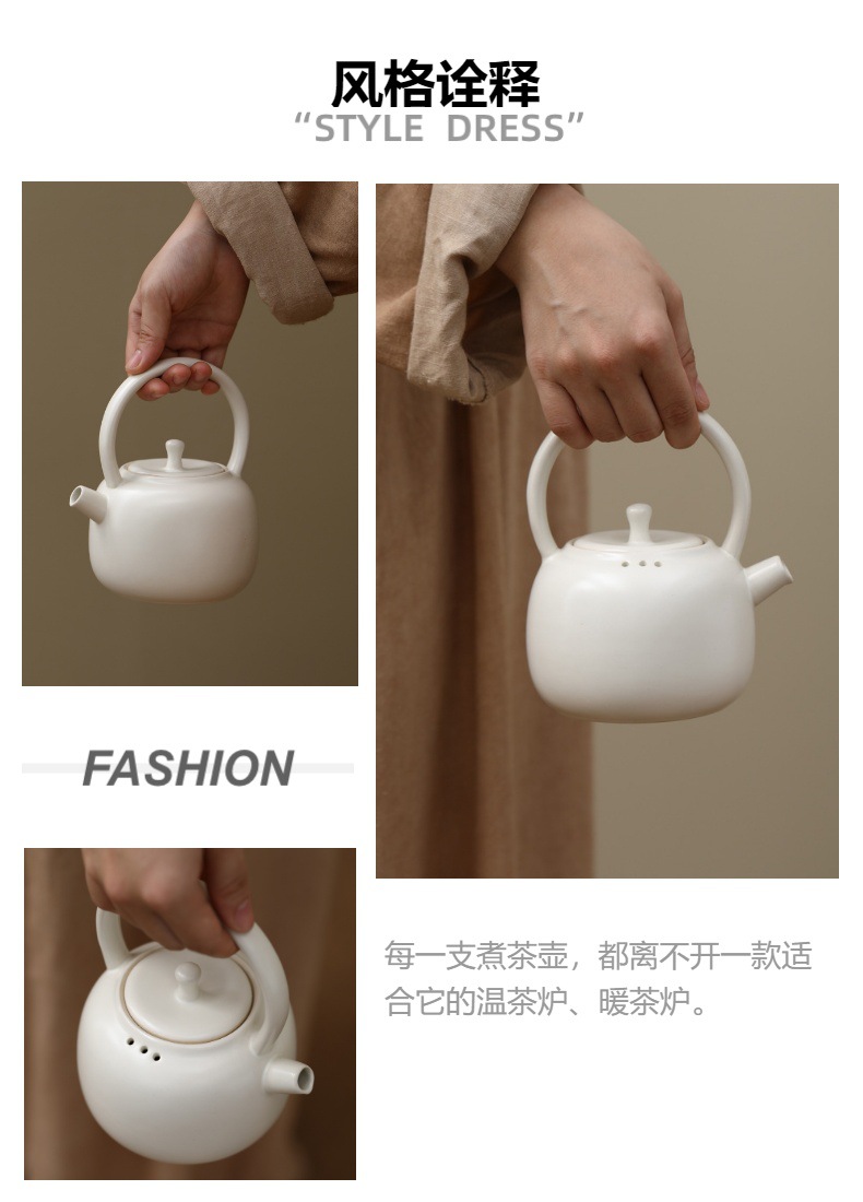 Jingdezhen Bridge Teapot Japanese Ceramic White Clay Pottery Pot Boiling Water Pot Teapot Set Tea Stove Base Small Capacity for One Person