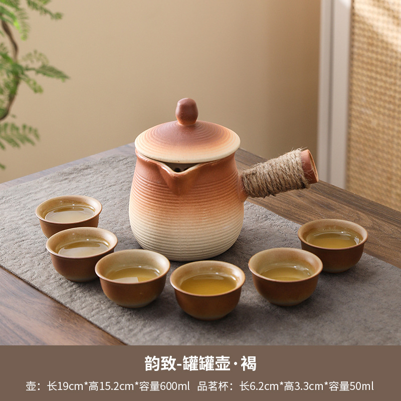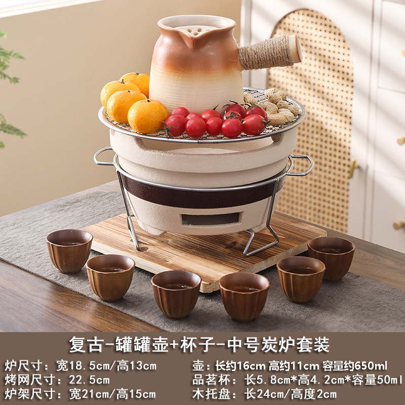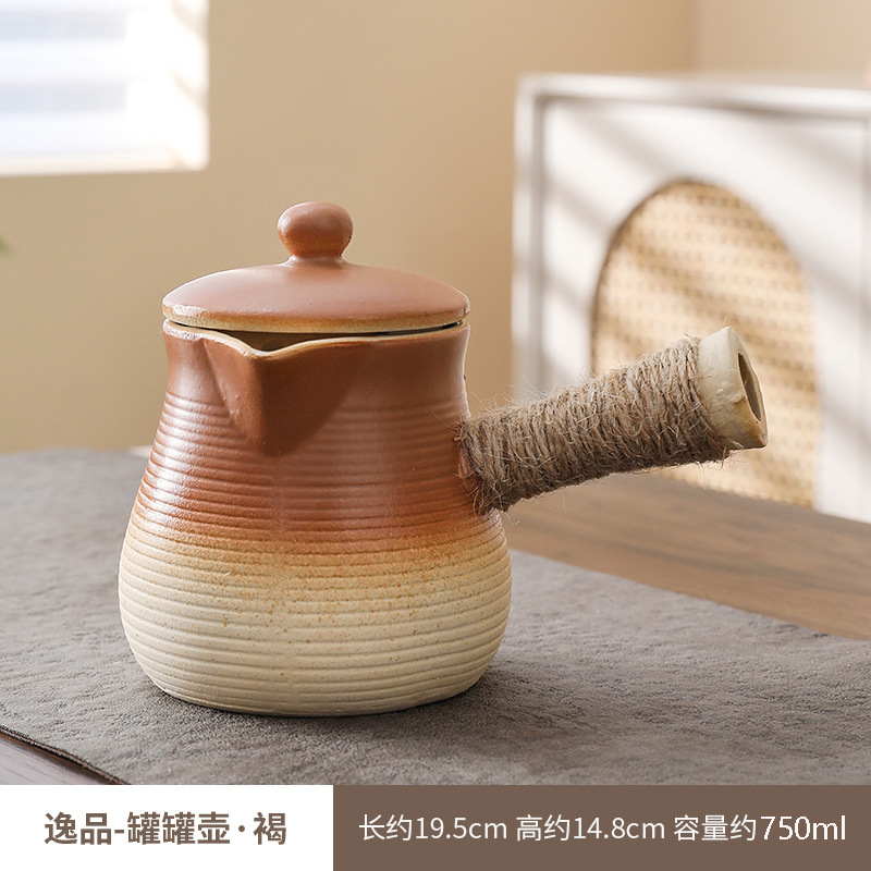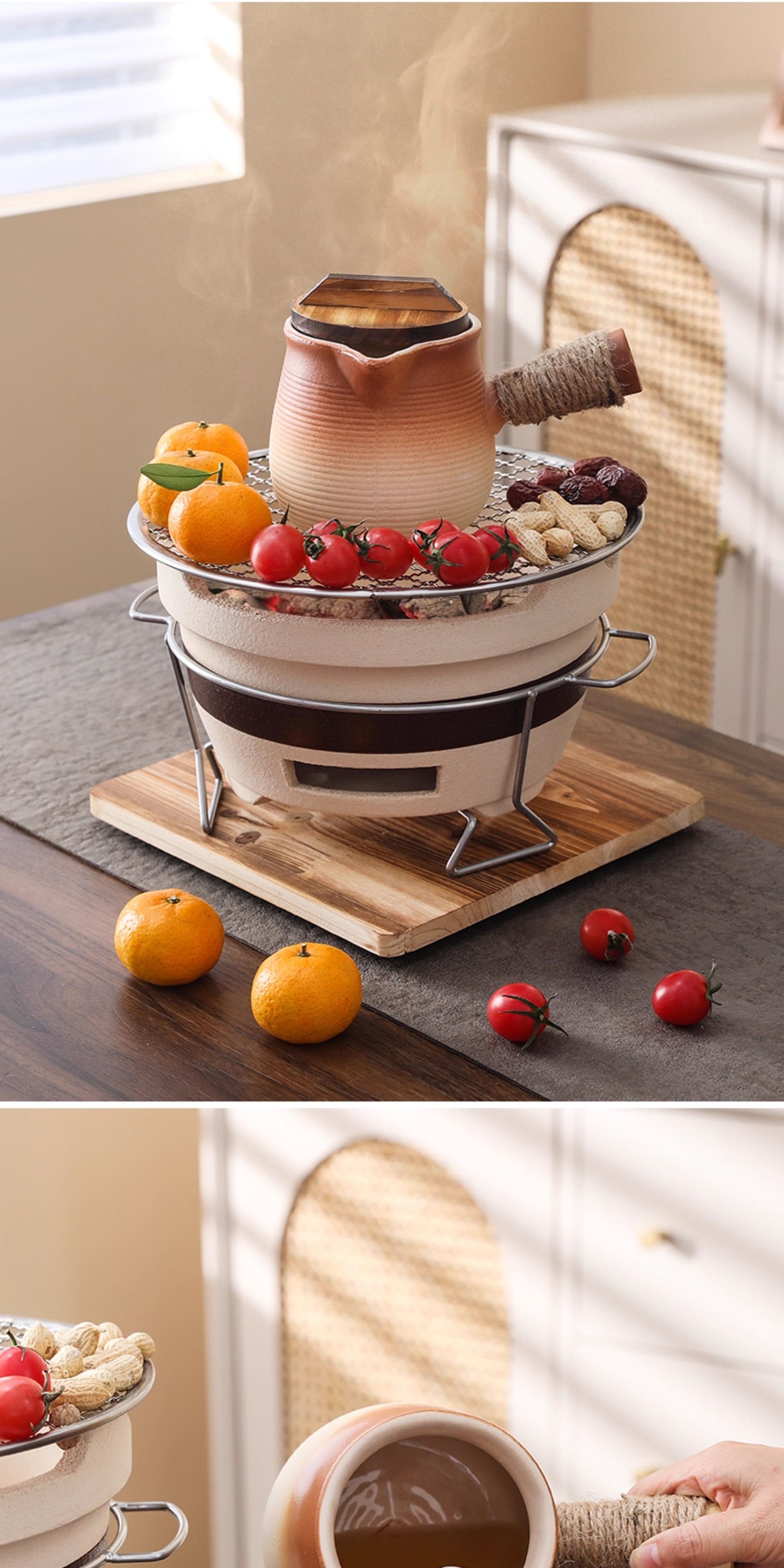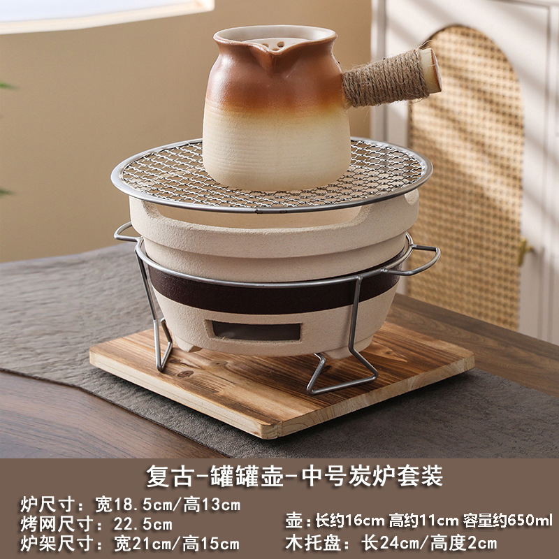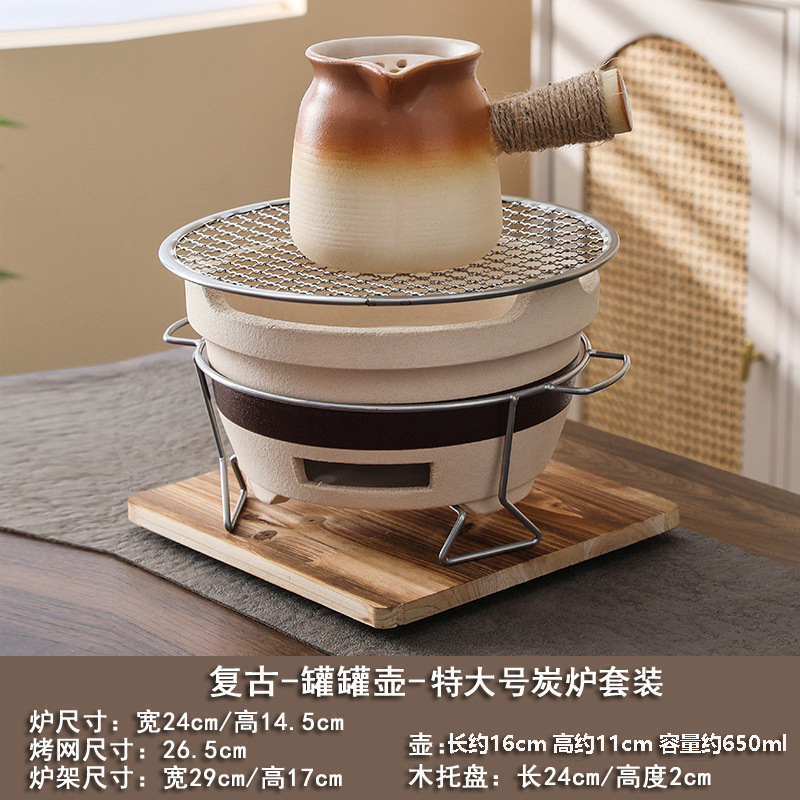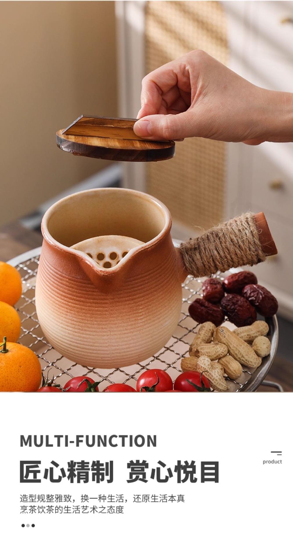 New 5 Round Stove Teapot Set Internet Celebrity Roast Milk Tea Can Pot Yunnan Open Fire Side Handle Pot Outdoor Charcoal Fire