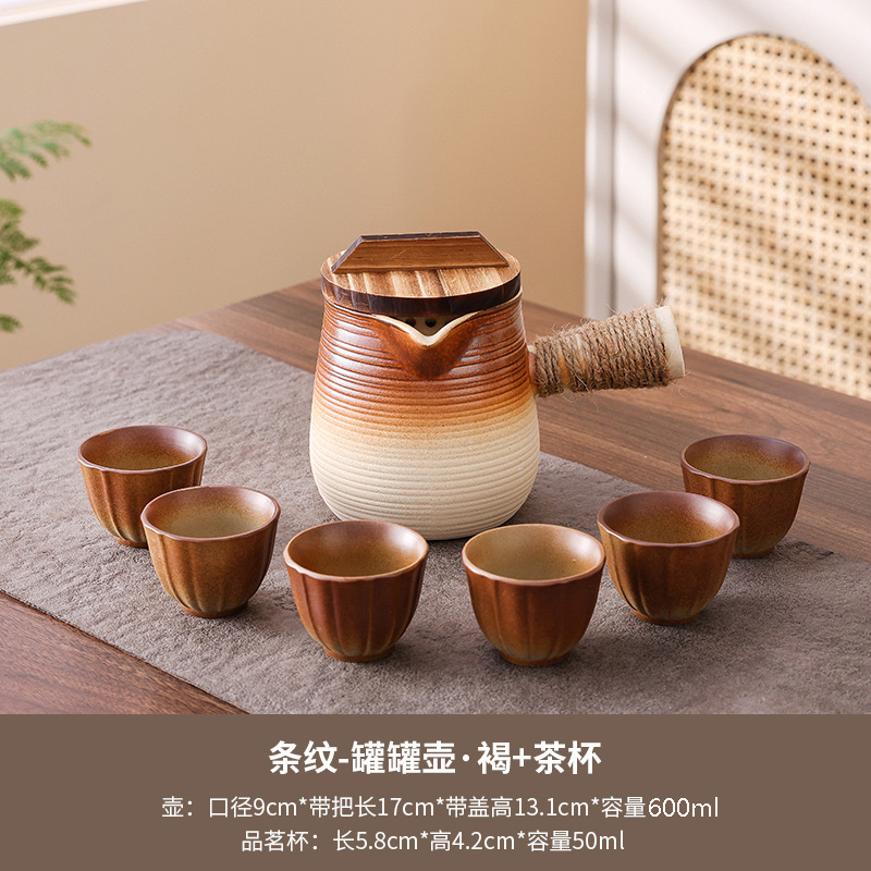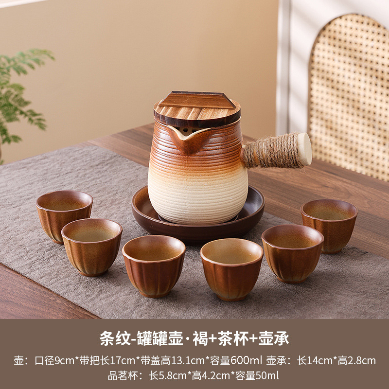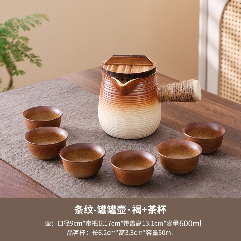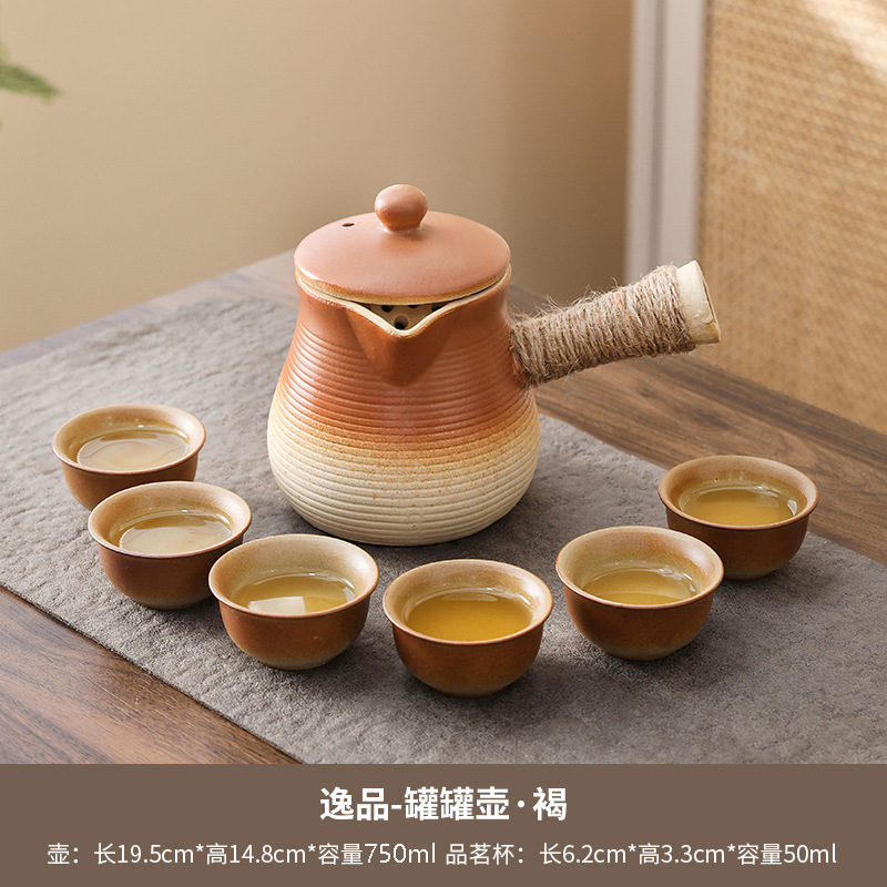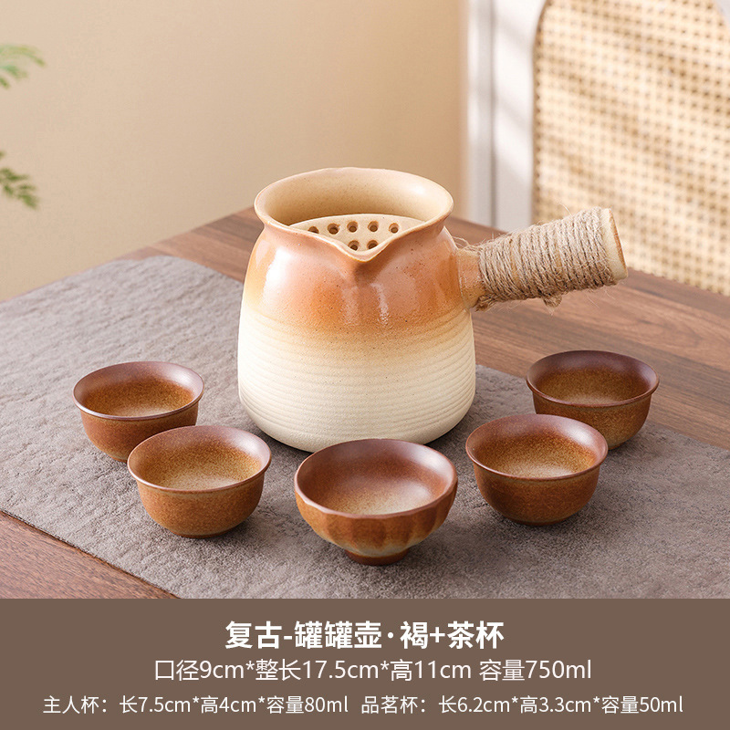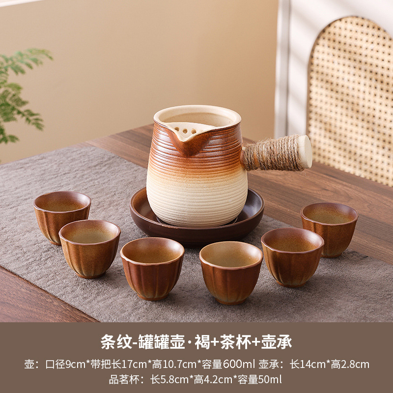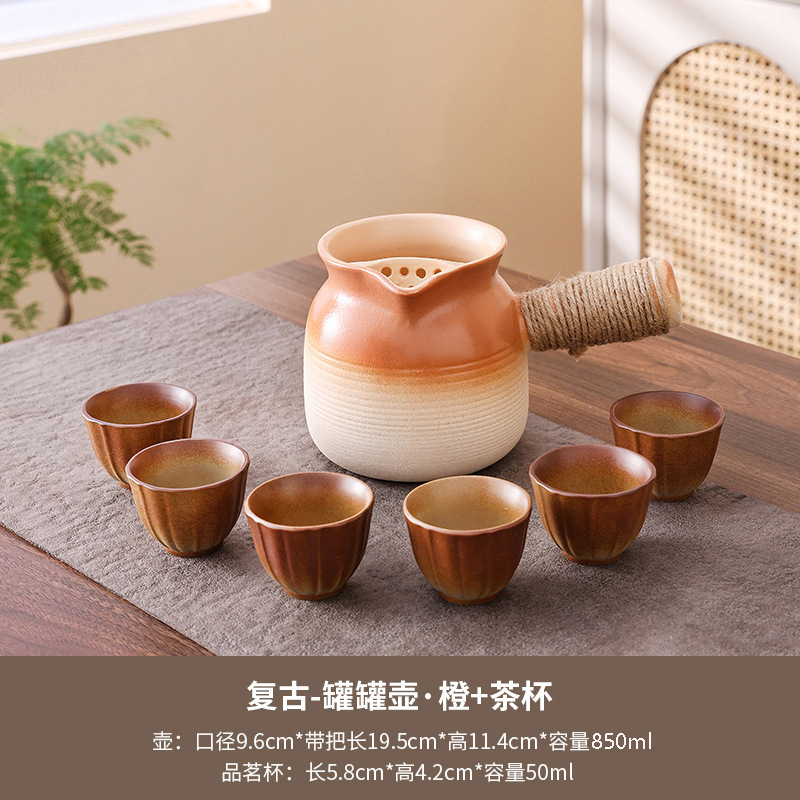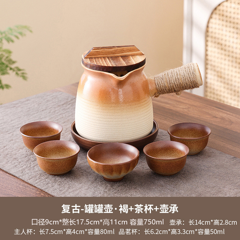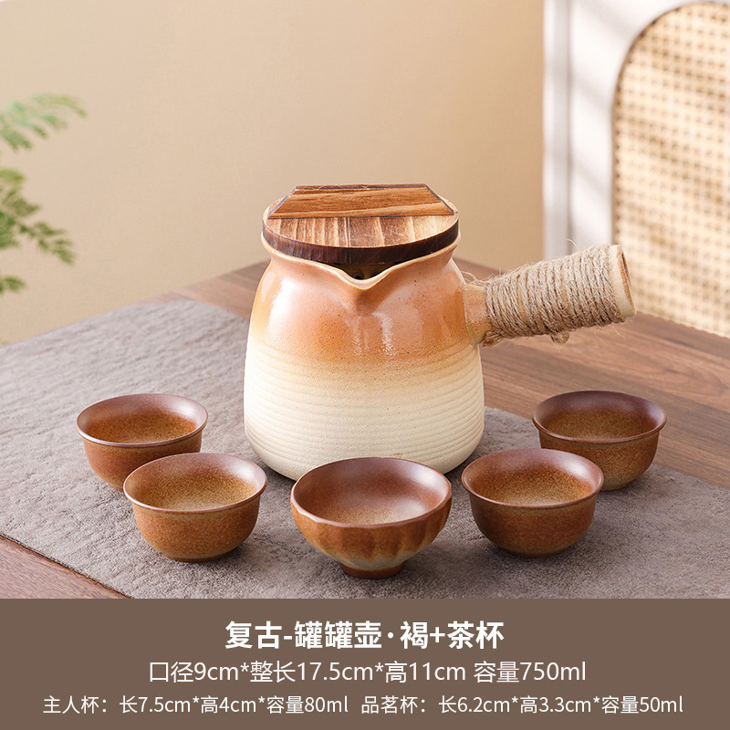 New 5 Round Stove Teapot Set Internet Celebrity Roast Milk Tea Can Pot Yunnan Open Fire Side Handle Pot Outdoor Charcoal Fire