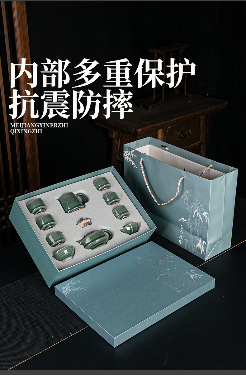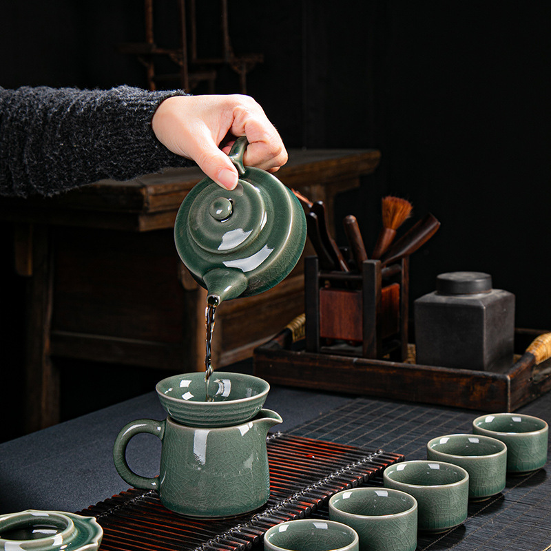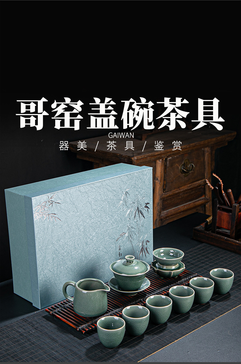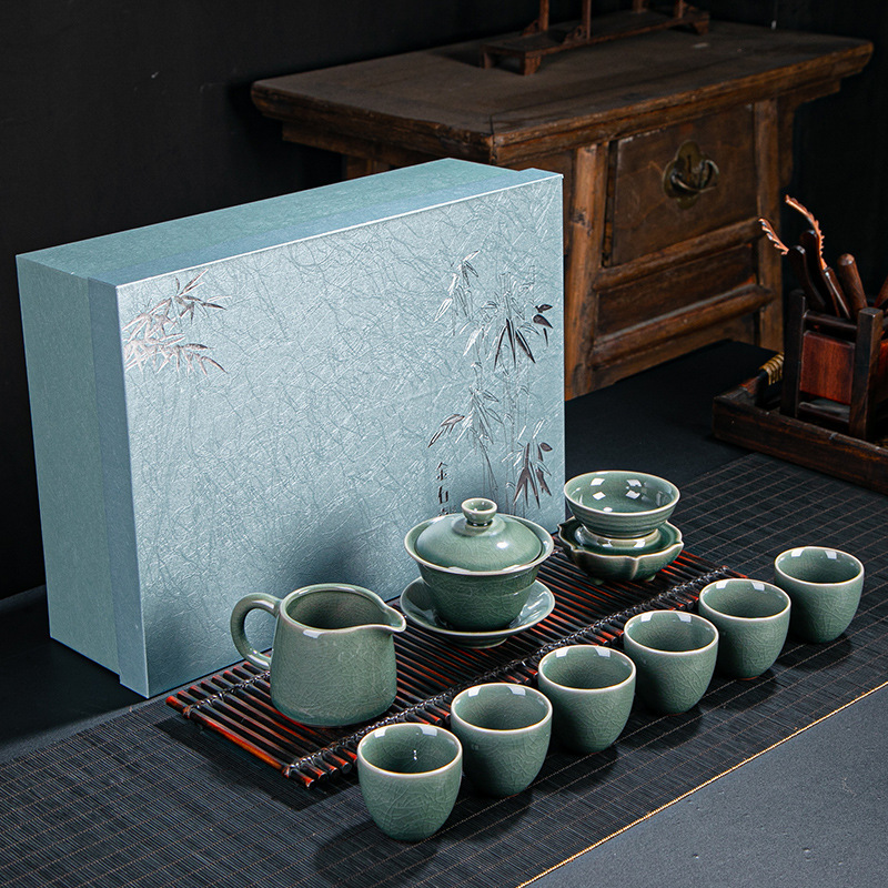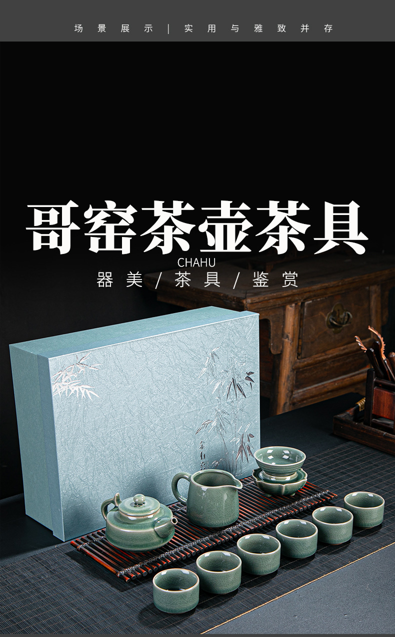 Ceramic tea set set from Ge kiln and Ru kiln. Opening can nourish the whole set of Kung Fu tea sets. Home and business gifts can be customized with logos