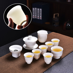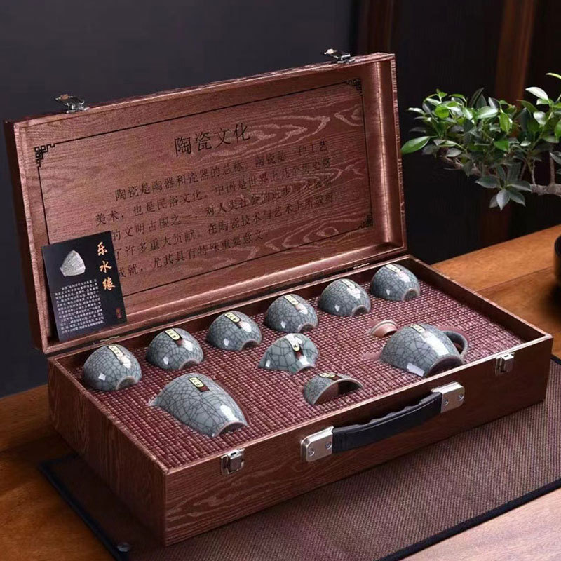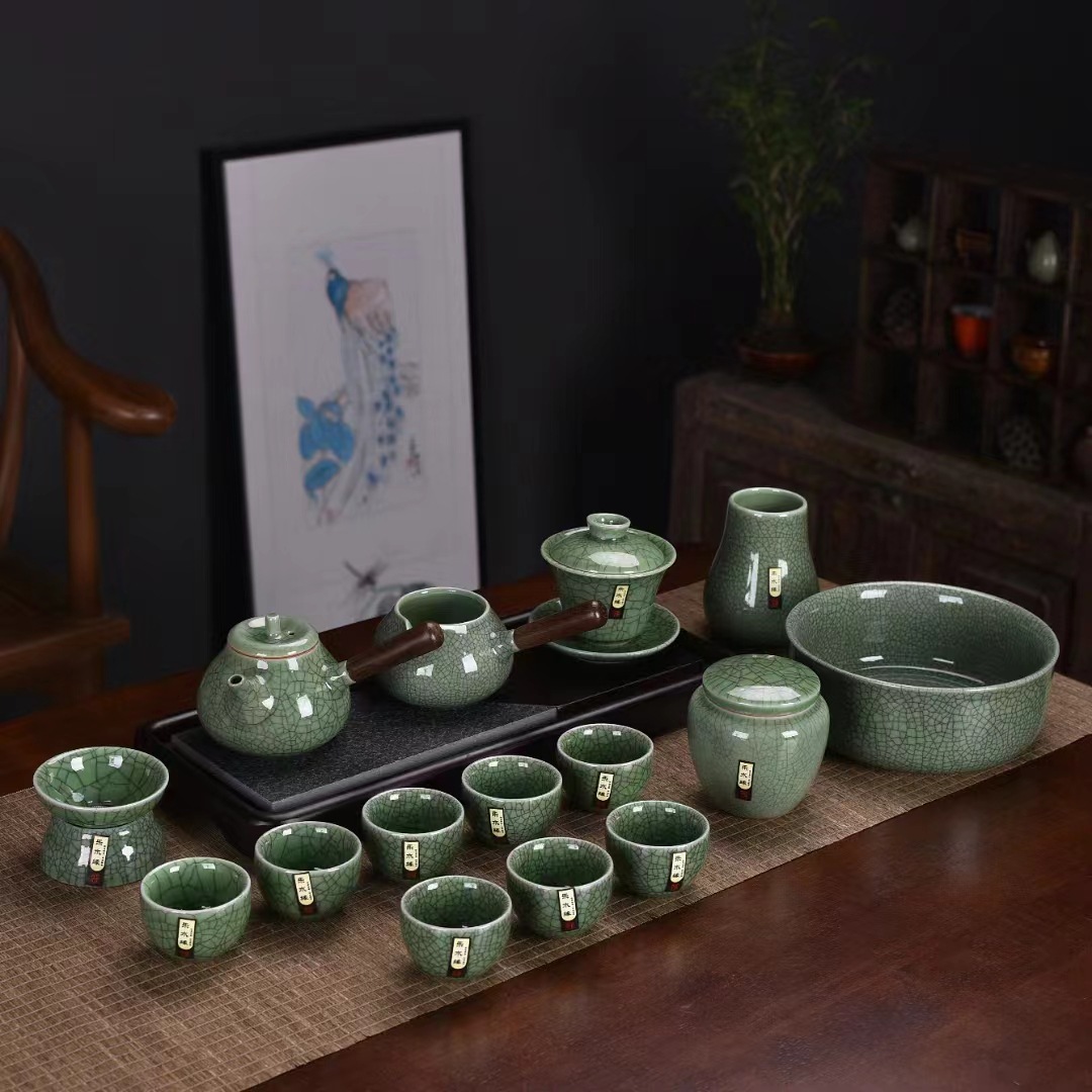 Ge kiln tea set, home use Kung Fu tea cup, teapot, office reception, light luxury, high-end ceramic tea set