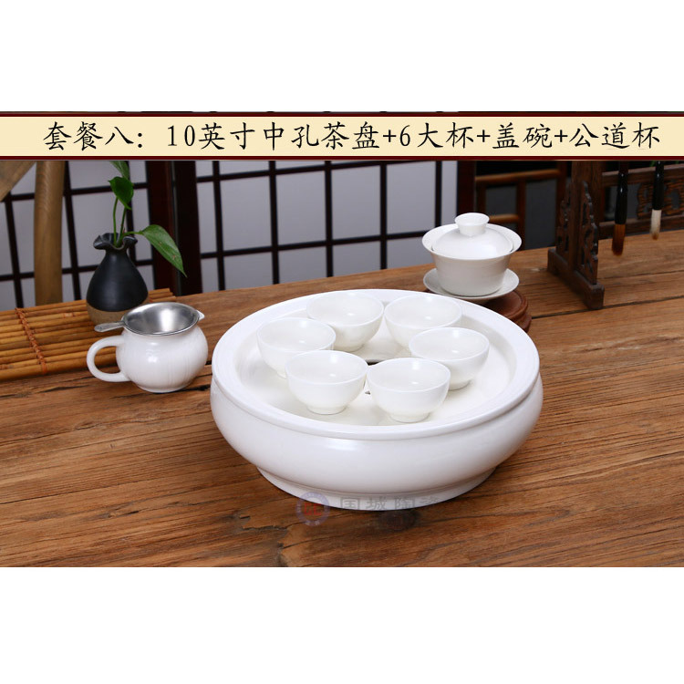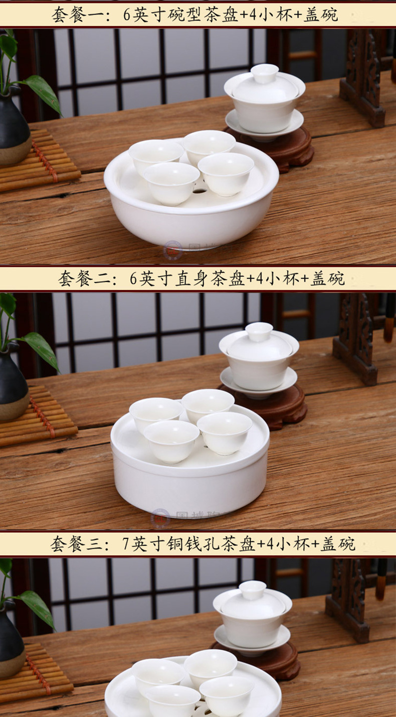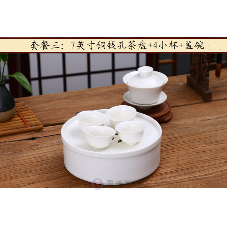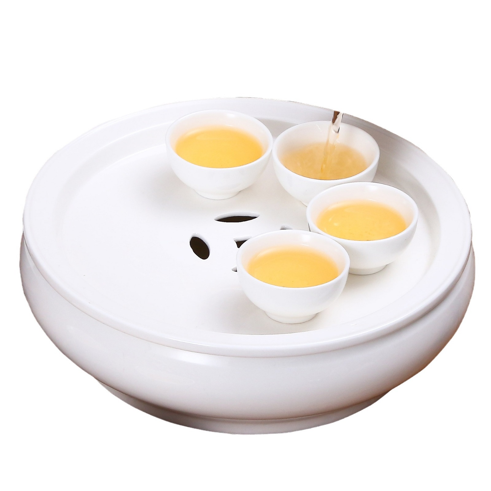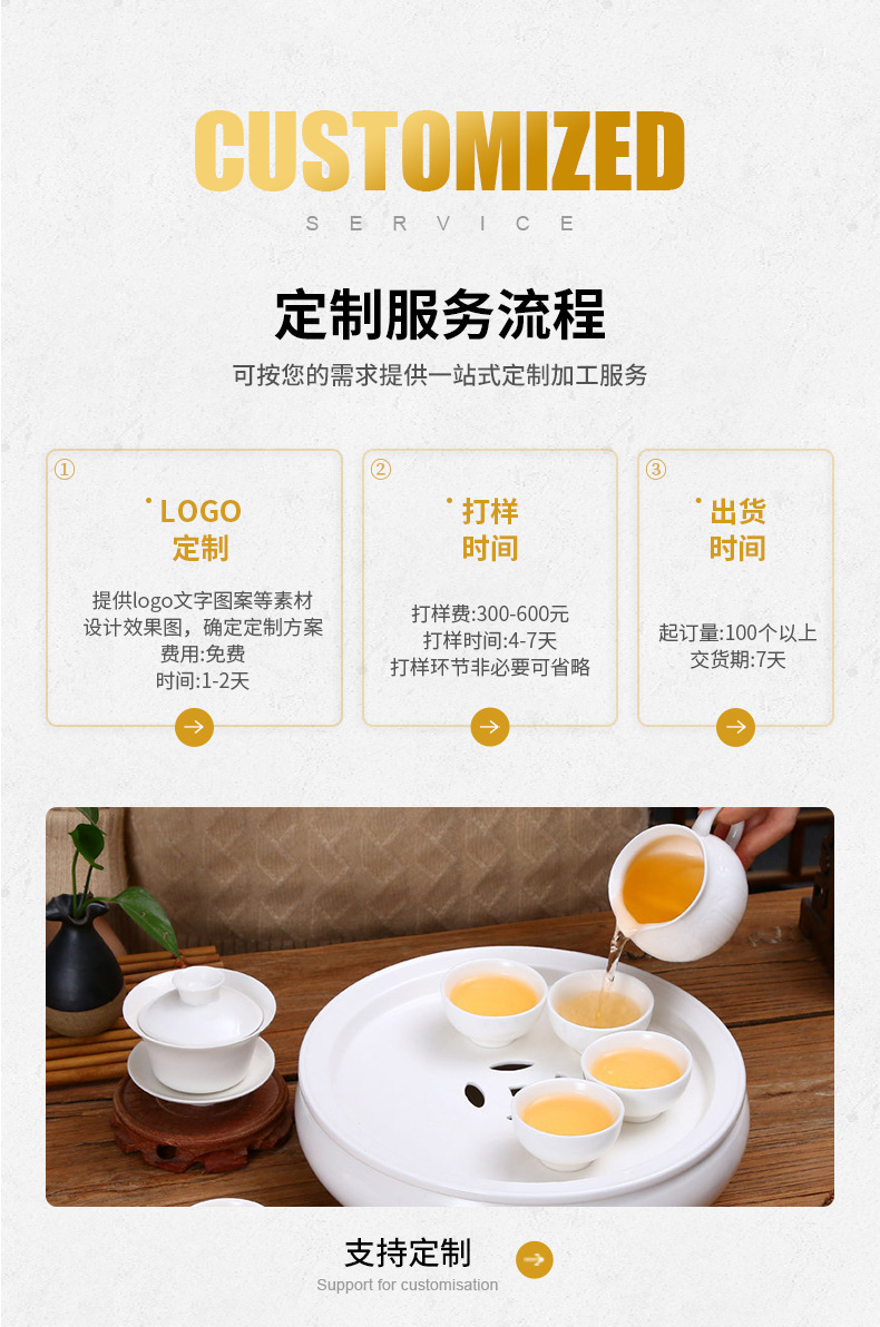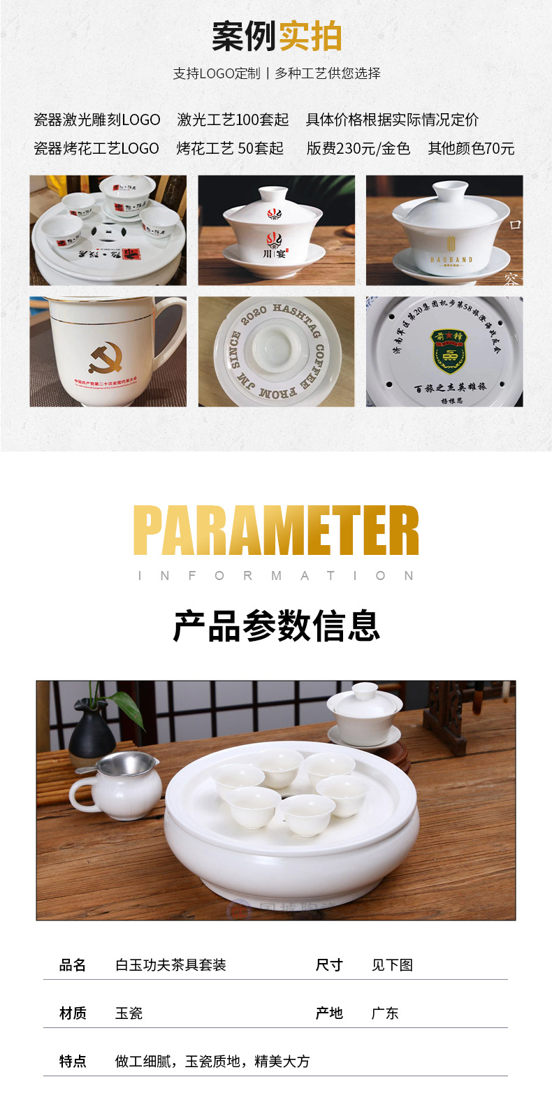 Ceramic white porcelain white Chaozhou Kung Fu tea set with printed logo and tea tray, hotel tea art tea cup tea set