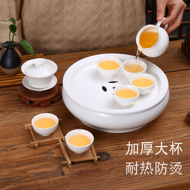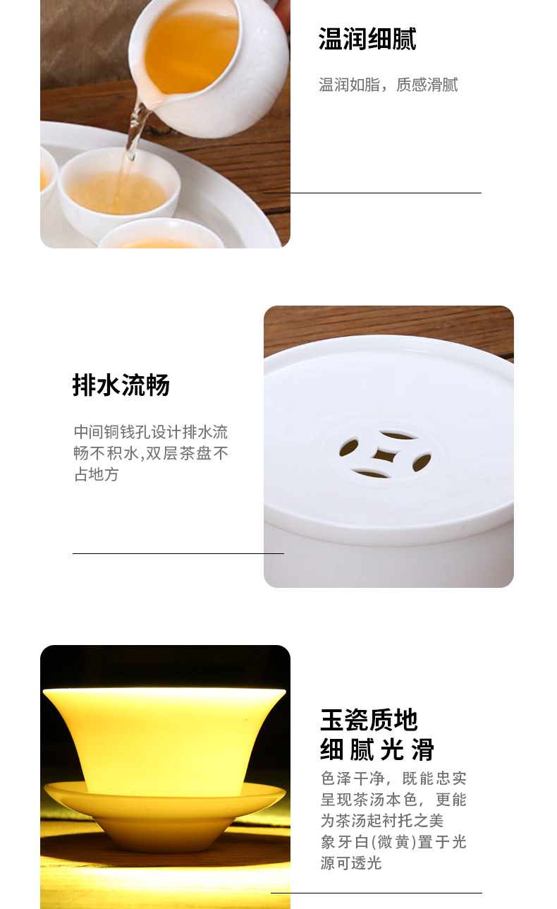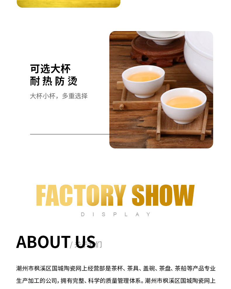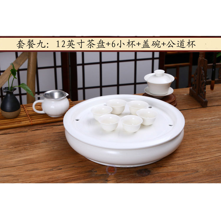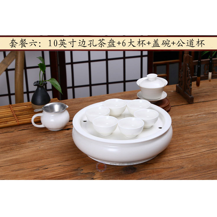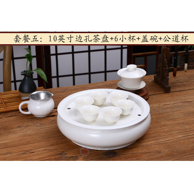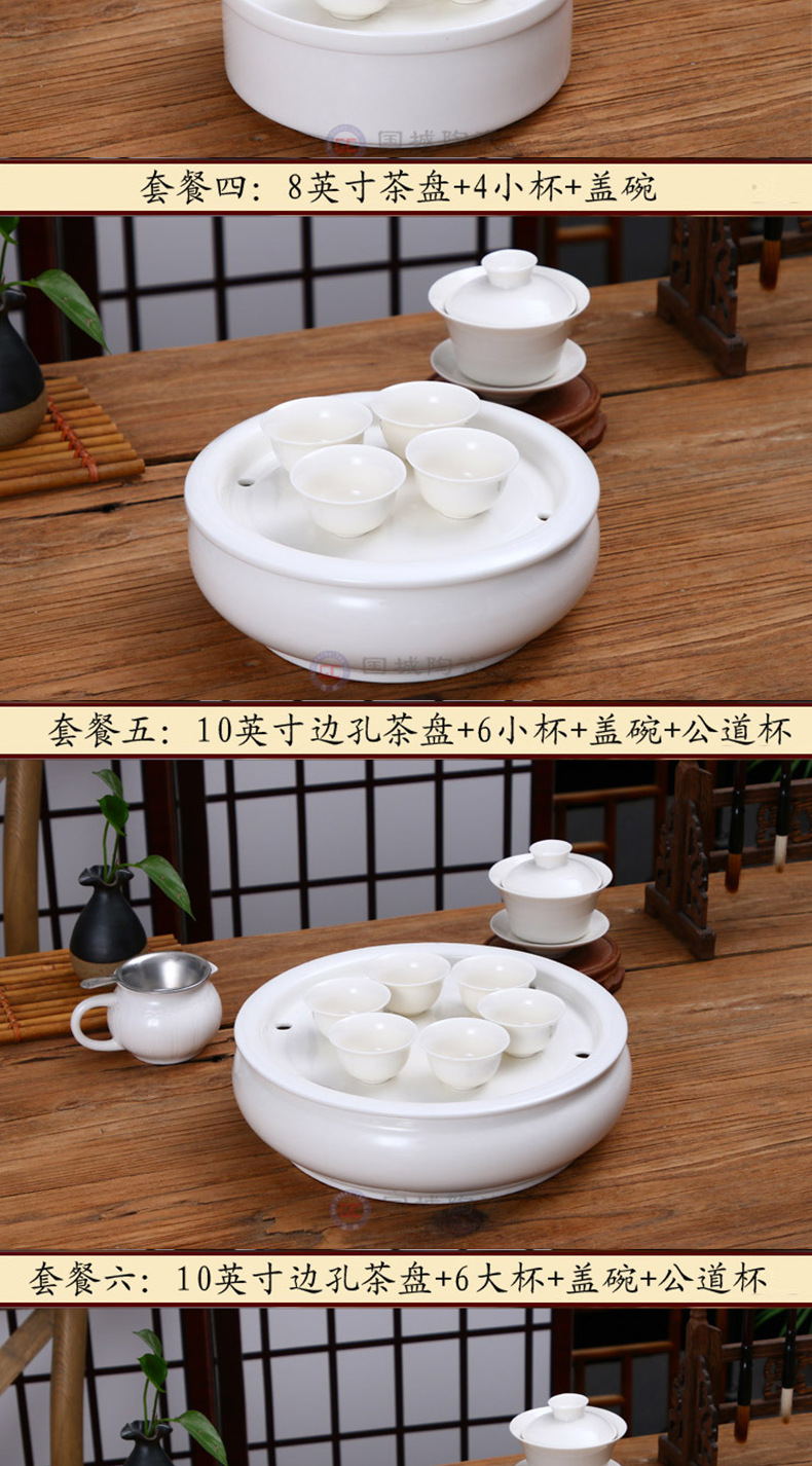 Ceramic white porcelain white Chaozhou Kung Fu tea set with printed logo and tea tray, hotel tea art tea cup tea set