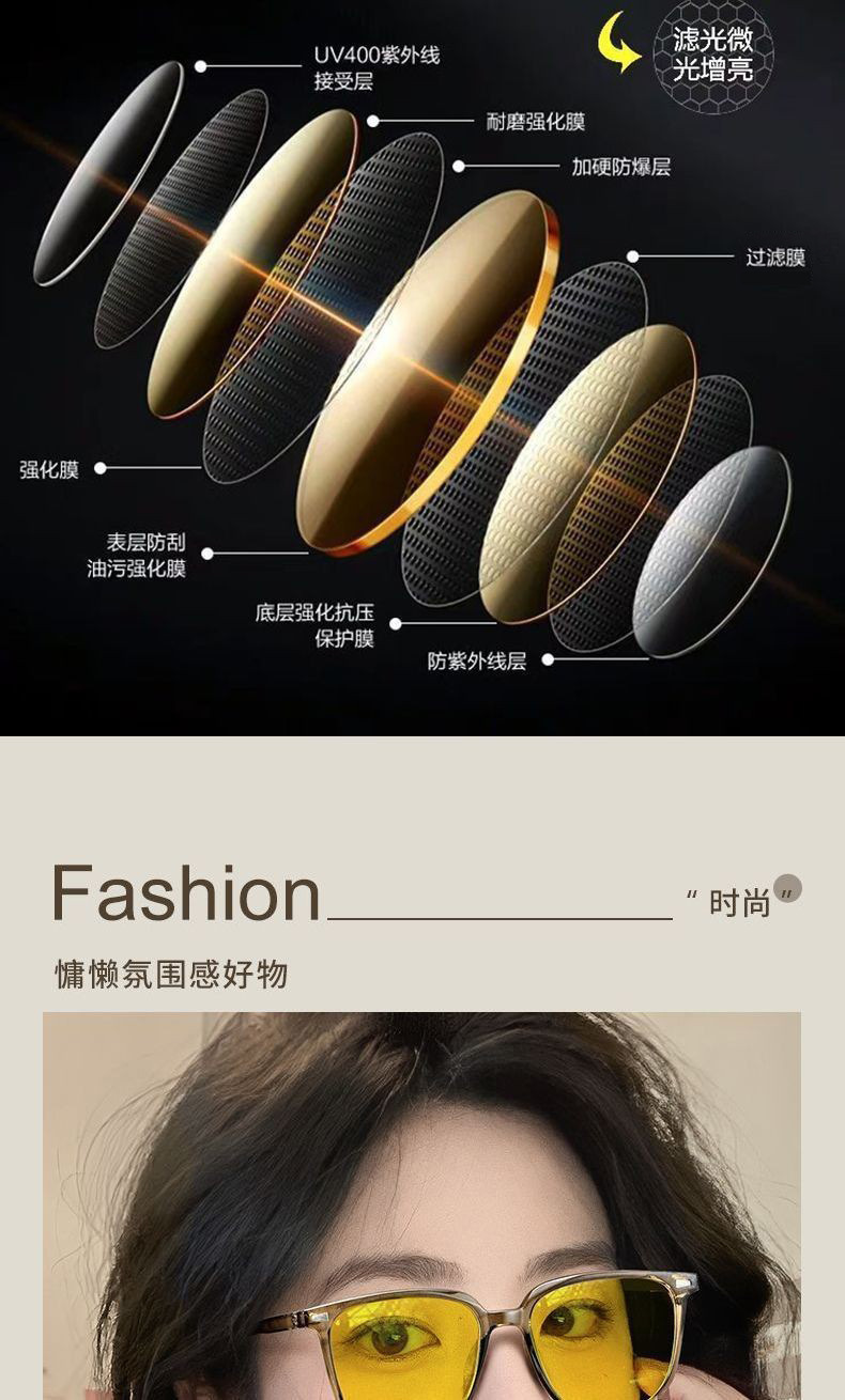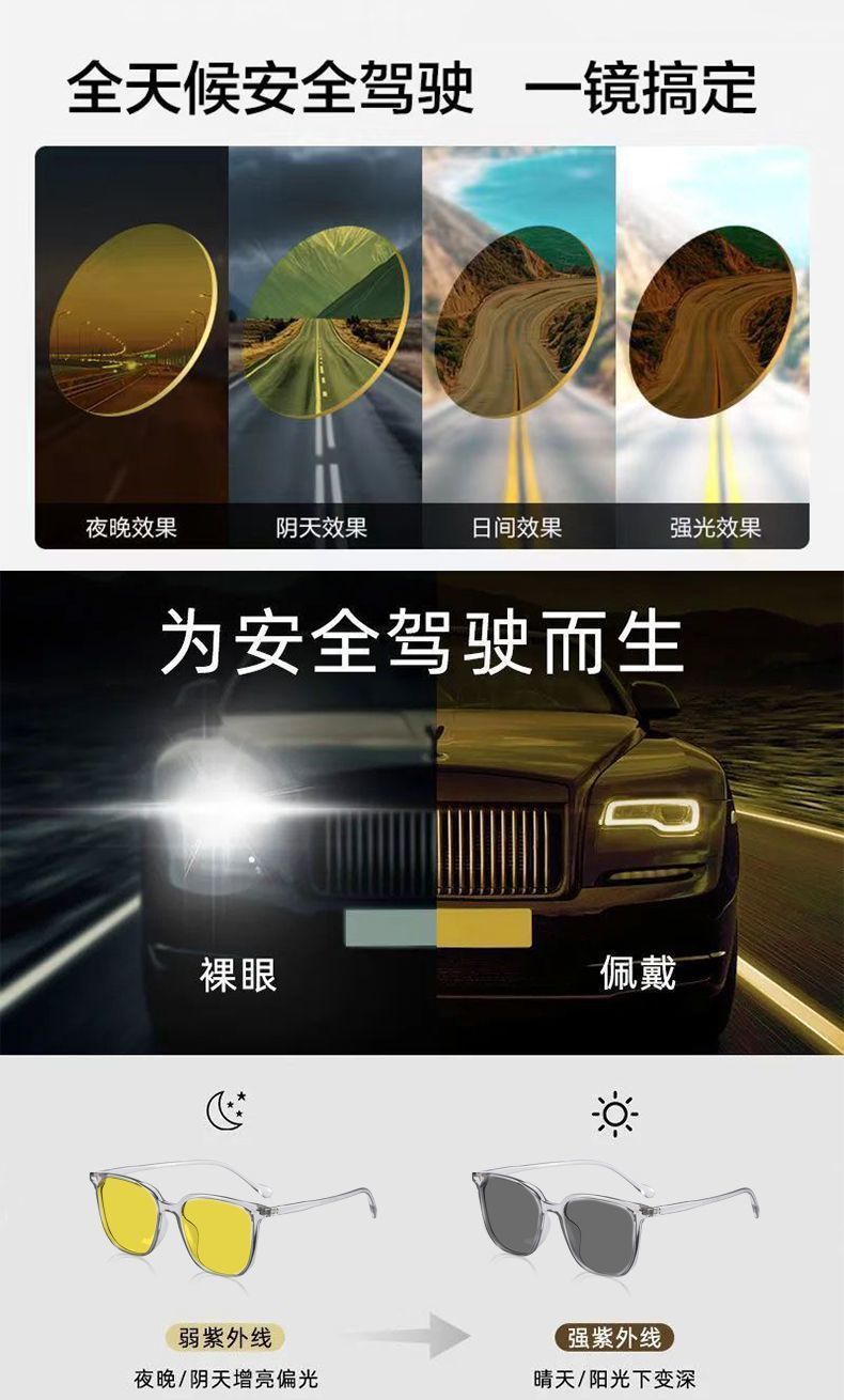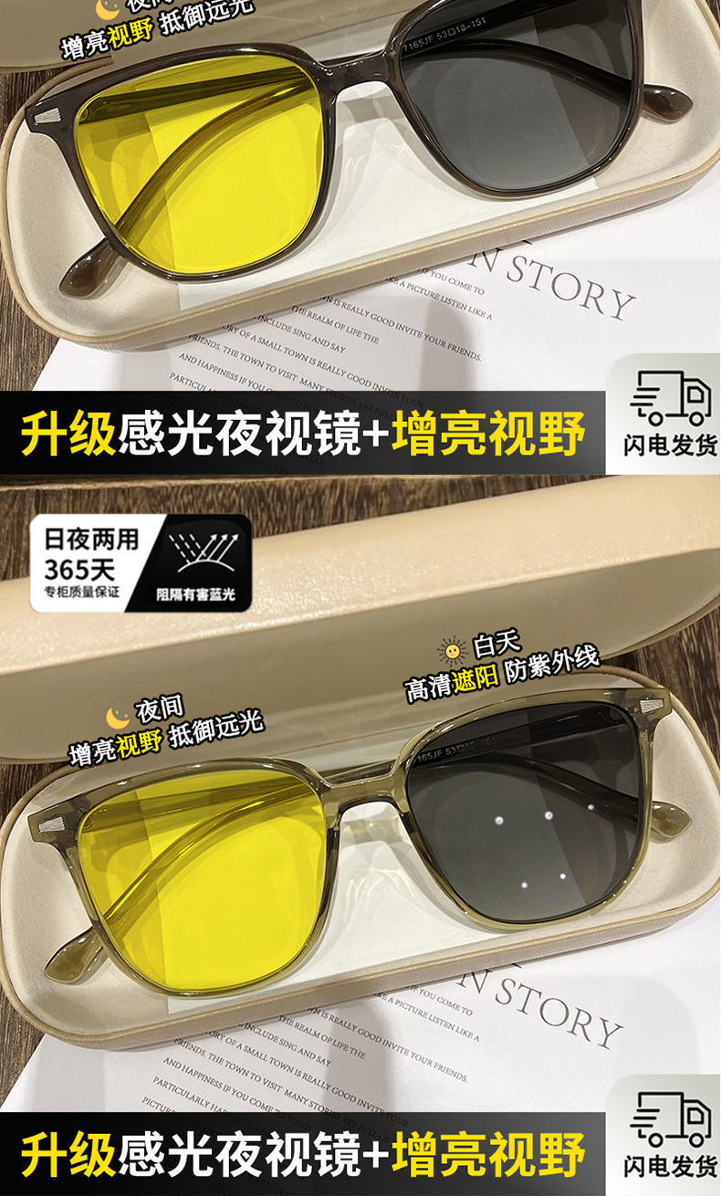 New night vision and night driving glasses, one lens dual-use, UV resistant sunglasses, anti high beam, no makeup, whitening and myopia glasses