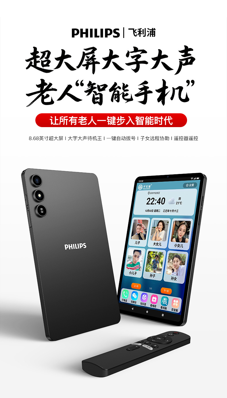 Factory new Philips smart tablet Bluetooth remote control Android pure system one-touch phone for the elderly