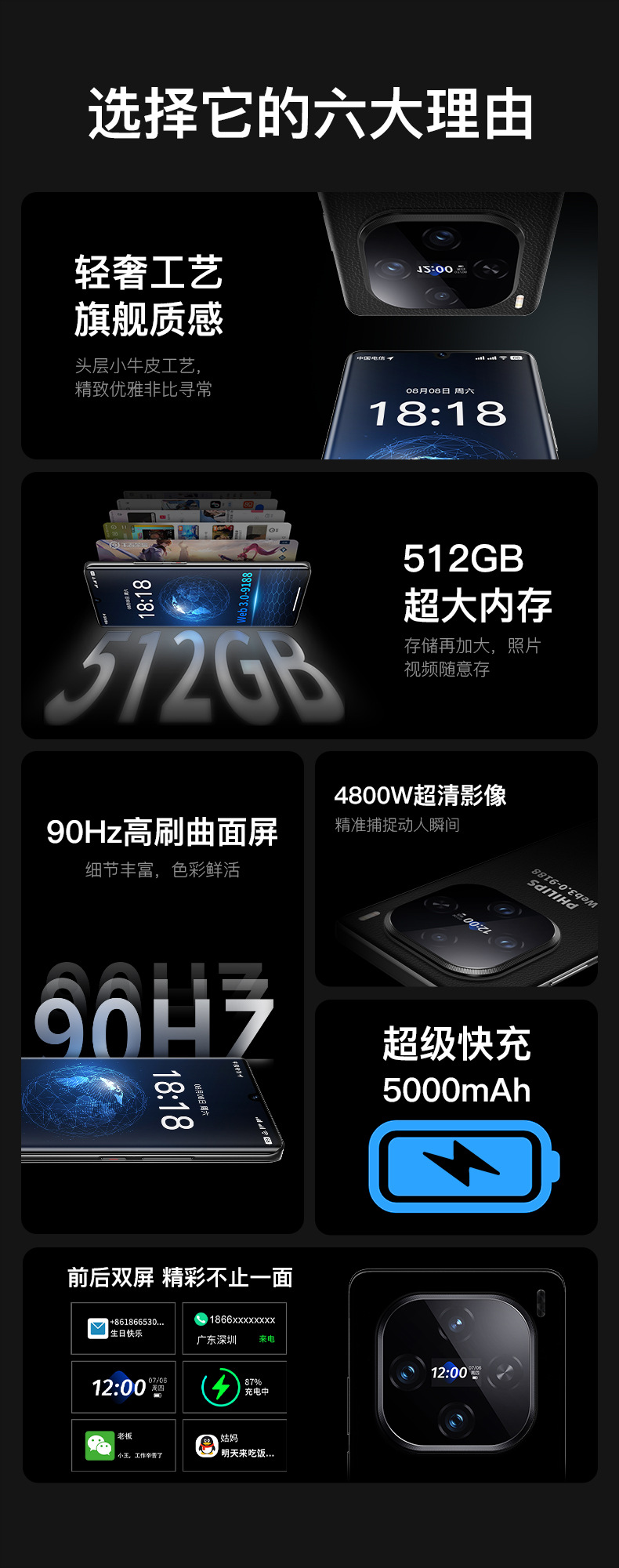 Philips factory web3.0-9188 customized genuine smart phone with large screen, full network communication and high configuration