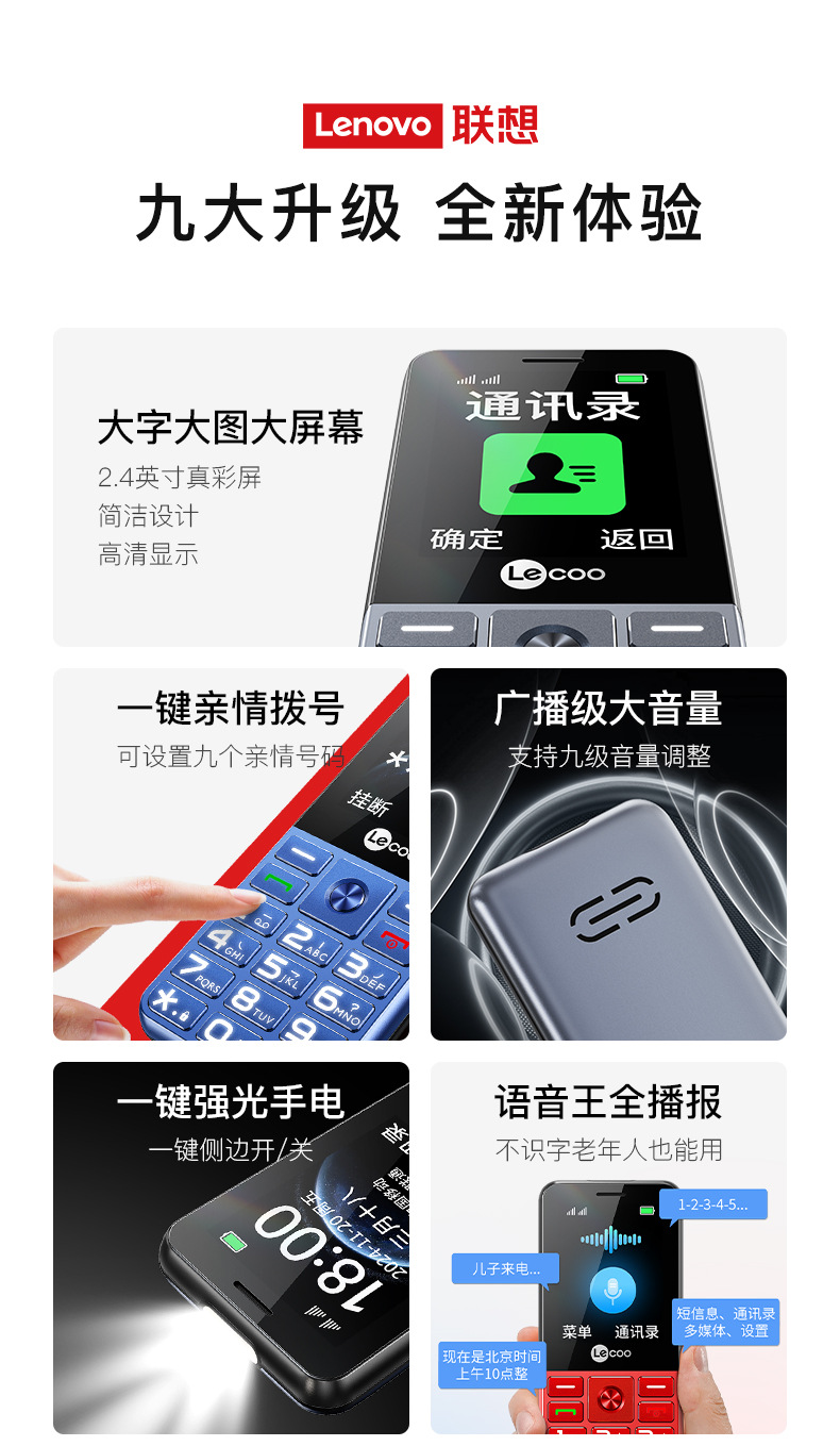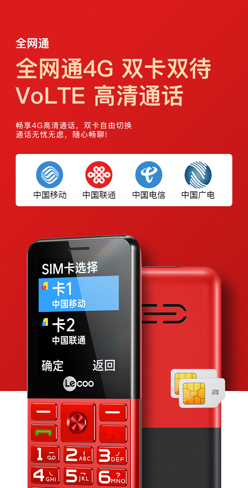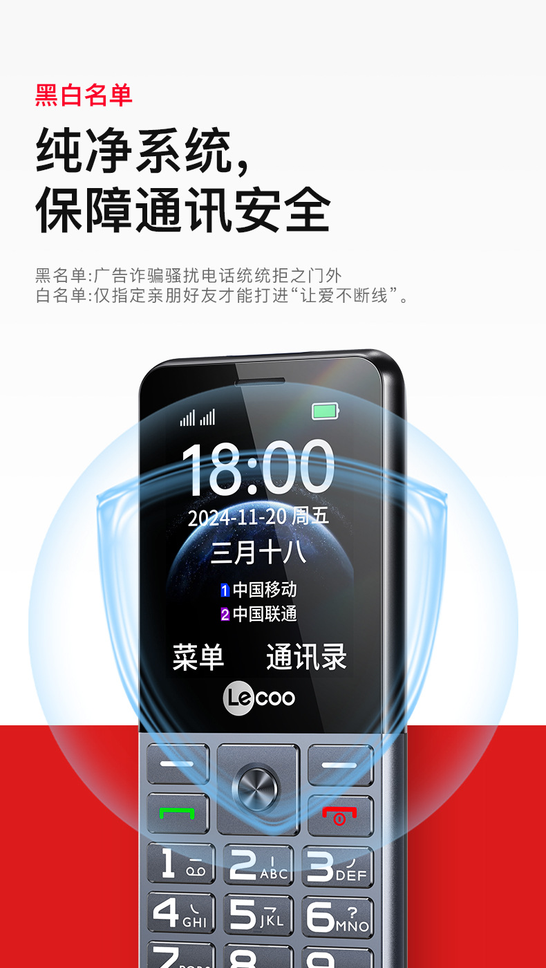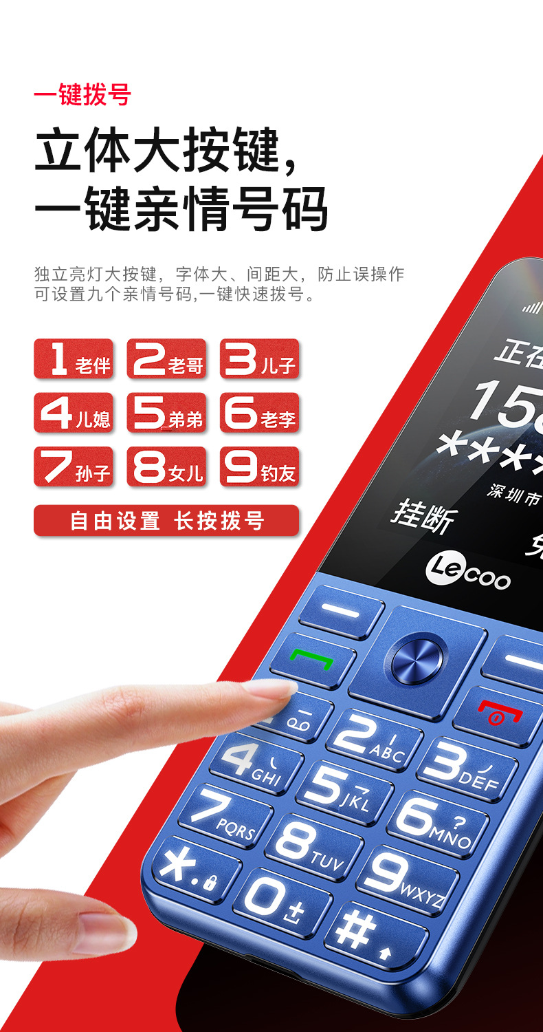 LECOO L3 factory direct-delivered 4G full Netcom touch-button mobile phone for the elderly with dual SIM cards and dual standby, loud sound and long standby time