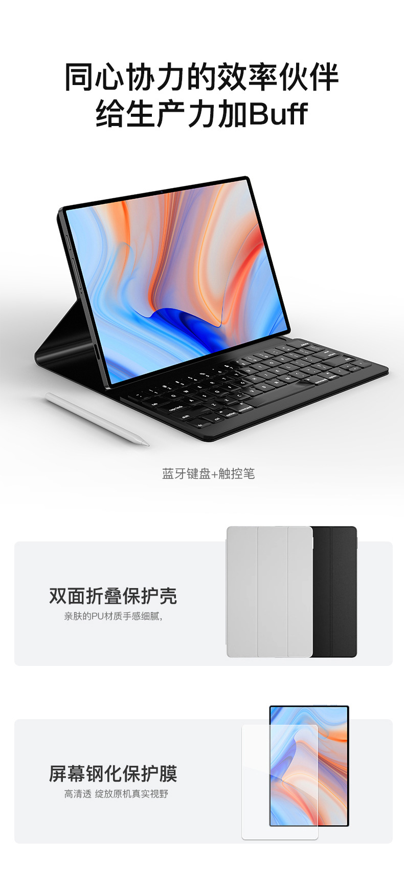 Упаковочный списокЗарядная головка*1 Кабель для передачи данных*1 Защитная пленка для экрана*1 Стилус*1 Подставка*1 Адаптерный кабель OTG*1 Штифт для извлечения карты*