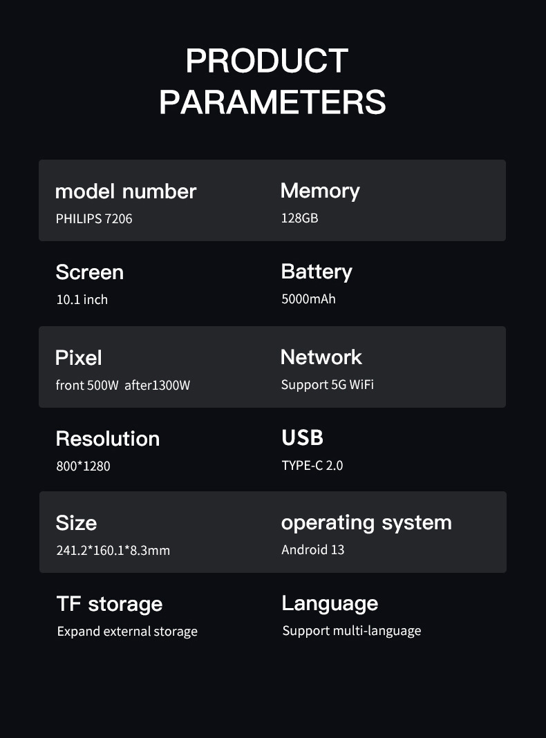| Упаковочный список | Планшет + зарядное устройство + кабель для передачи данных |