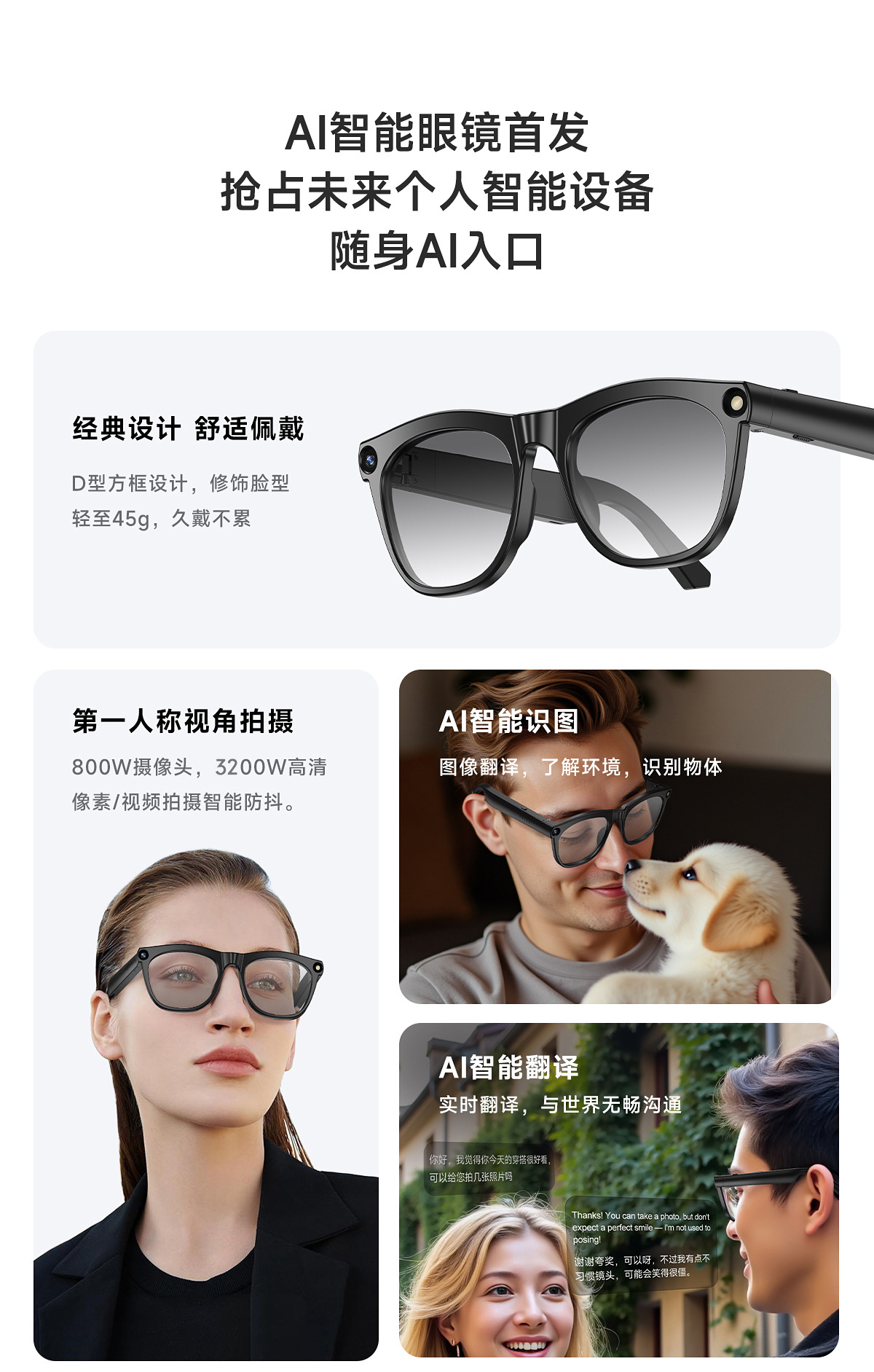 2025 new AI shooting and translation smart Bluetooth glasses metal frame multi-functional cross-border ChatGPT large model