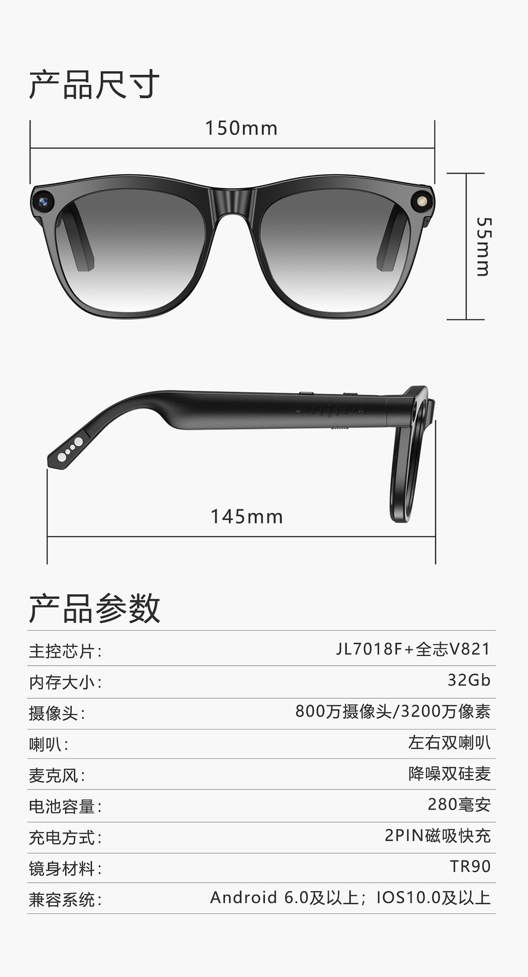 | Built-in sensor | 10m and above UV protection, listening to music, call navigation and translation |