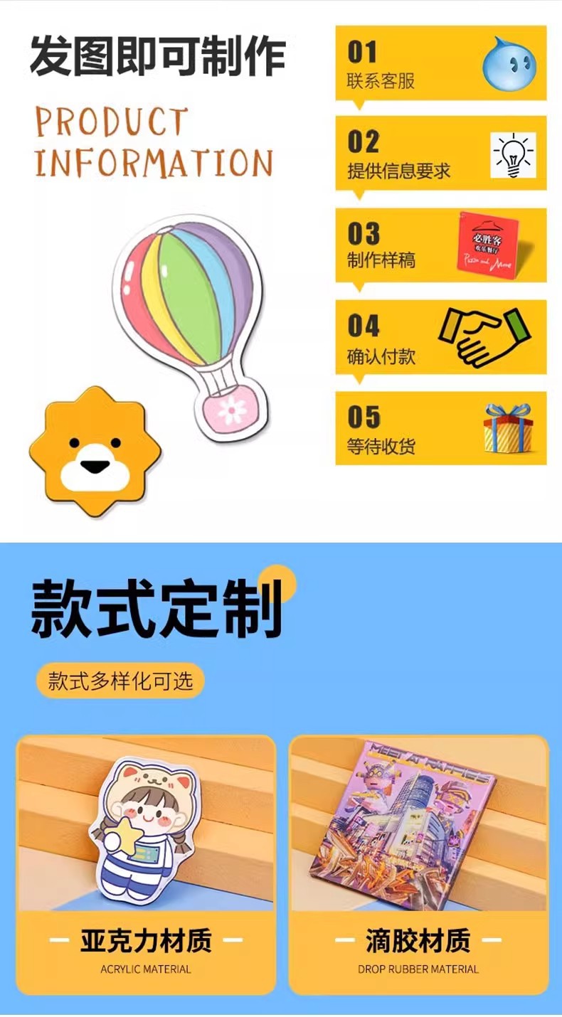 Acrylic magnetic refrigerator magnet customized celebrity advertising cultural creative city cartoon animation pet photo magnetic sticker