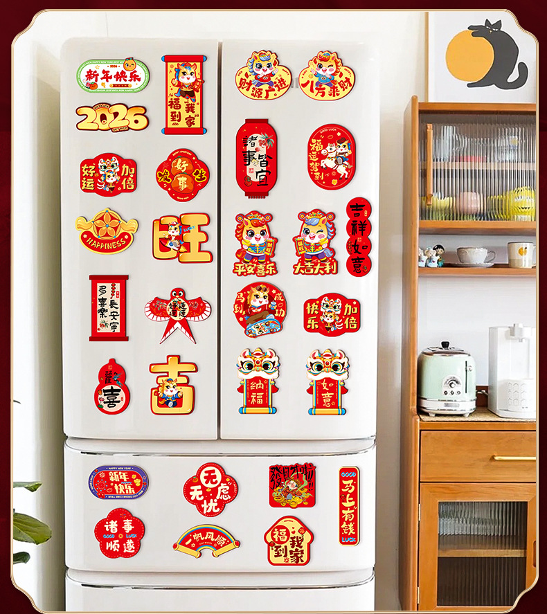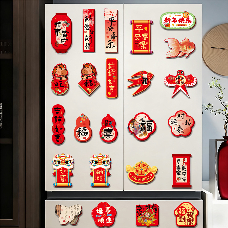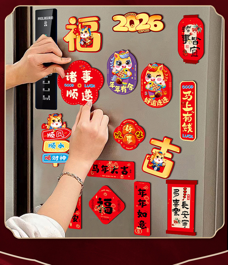 新年冰箱贴马年卡通磁吸贴2026过年氛围布置磁力贴门贴年货批货