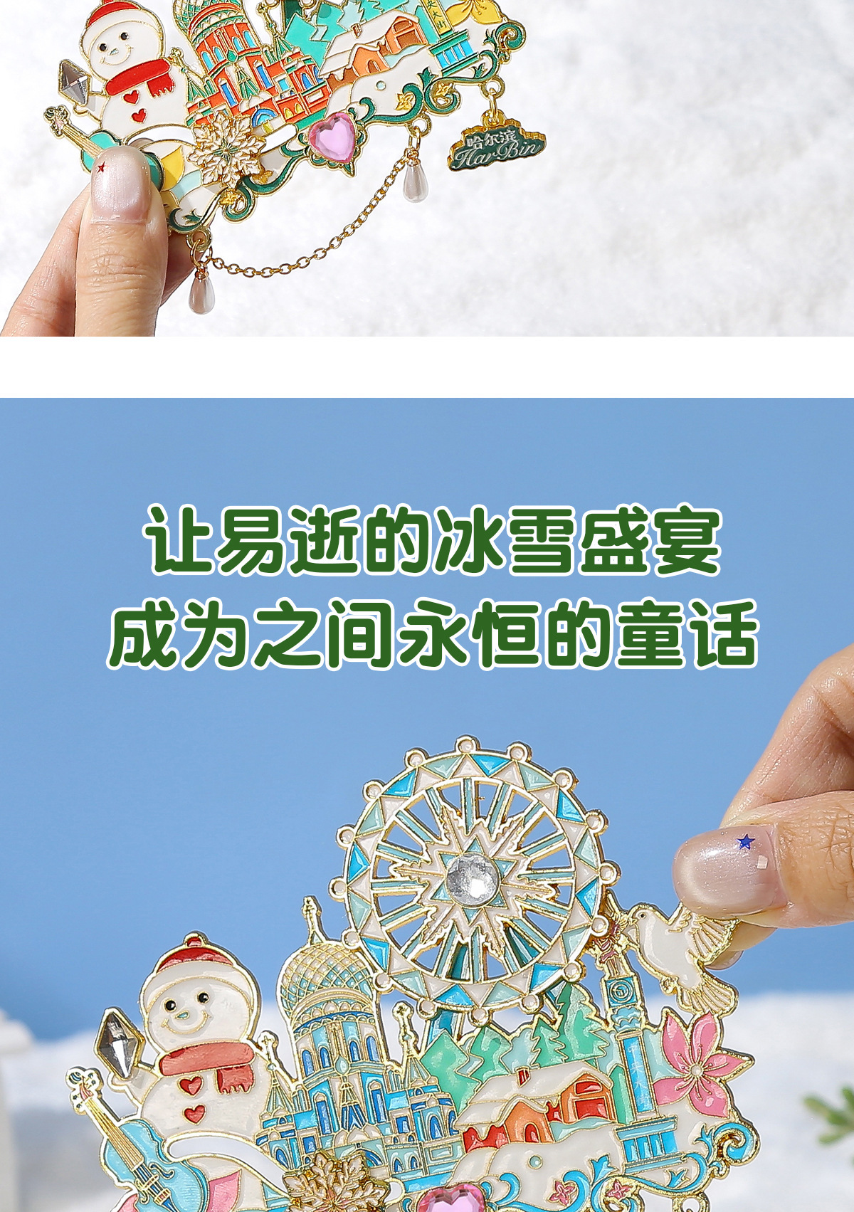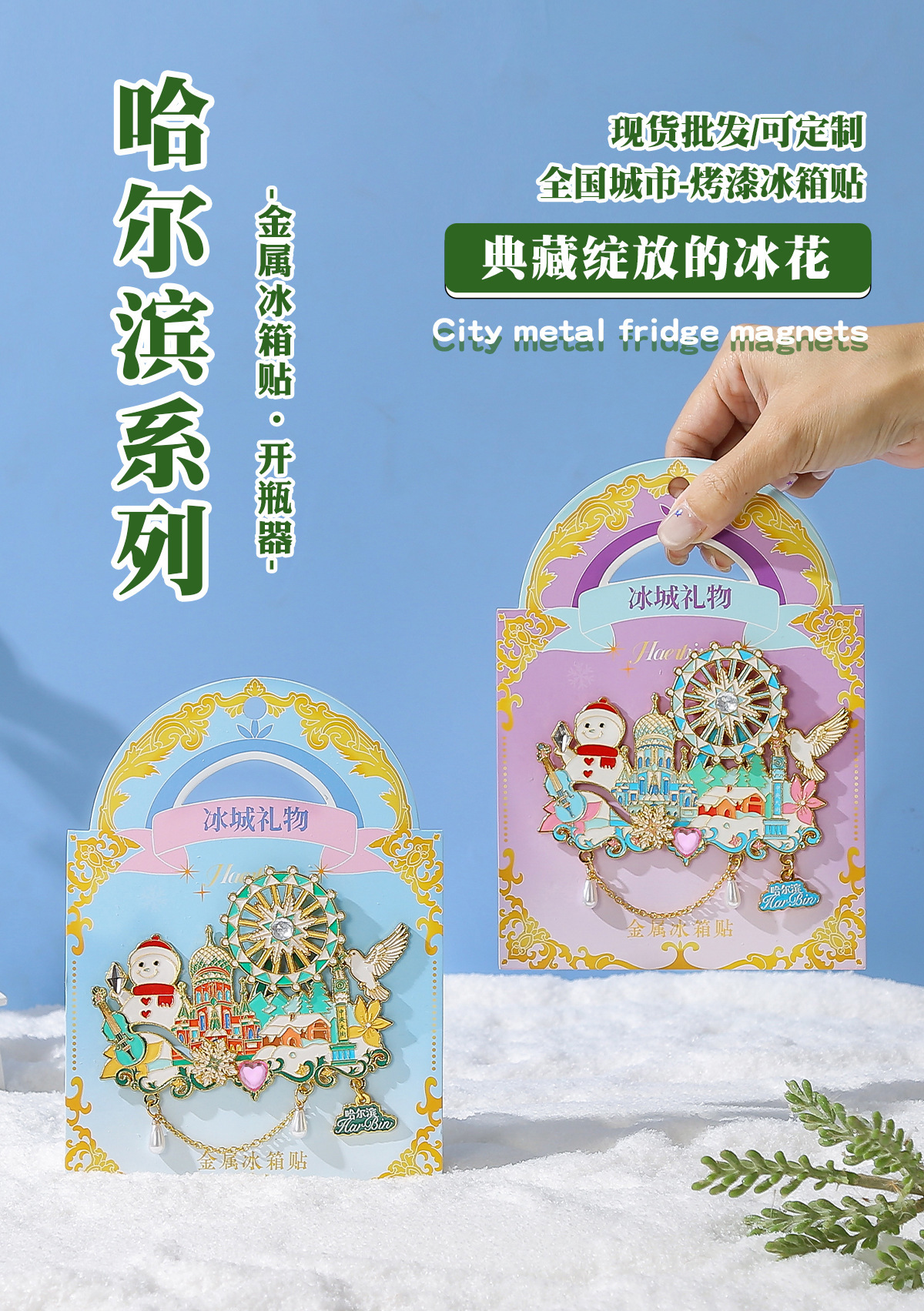 哈尔滨金属旋转冰箱贴景区旅游伴手礼纪念品收藏礼品国潮文创文旅