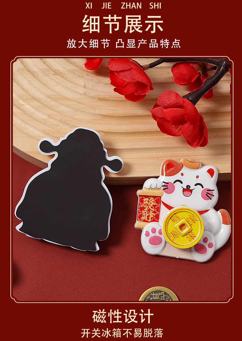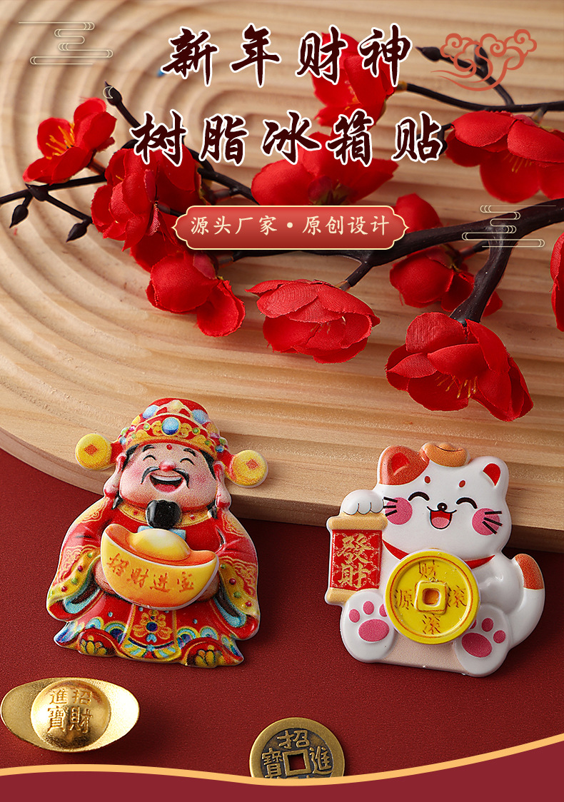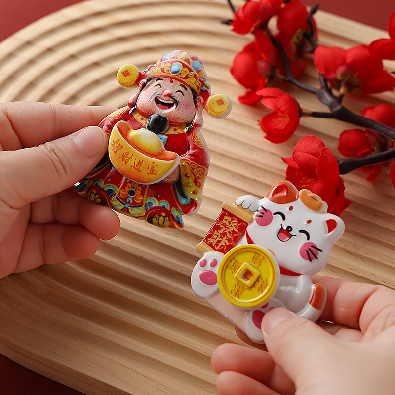 New Year magnetic sticker shaking head, God of Wealth magnetic suction ornament swinging, God of Wealth attracting wealth and blessings decoration festive refrigerator sticker batch