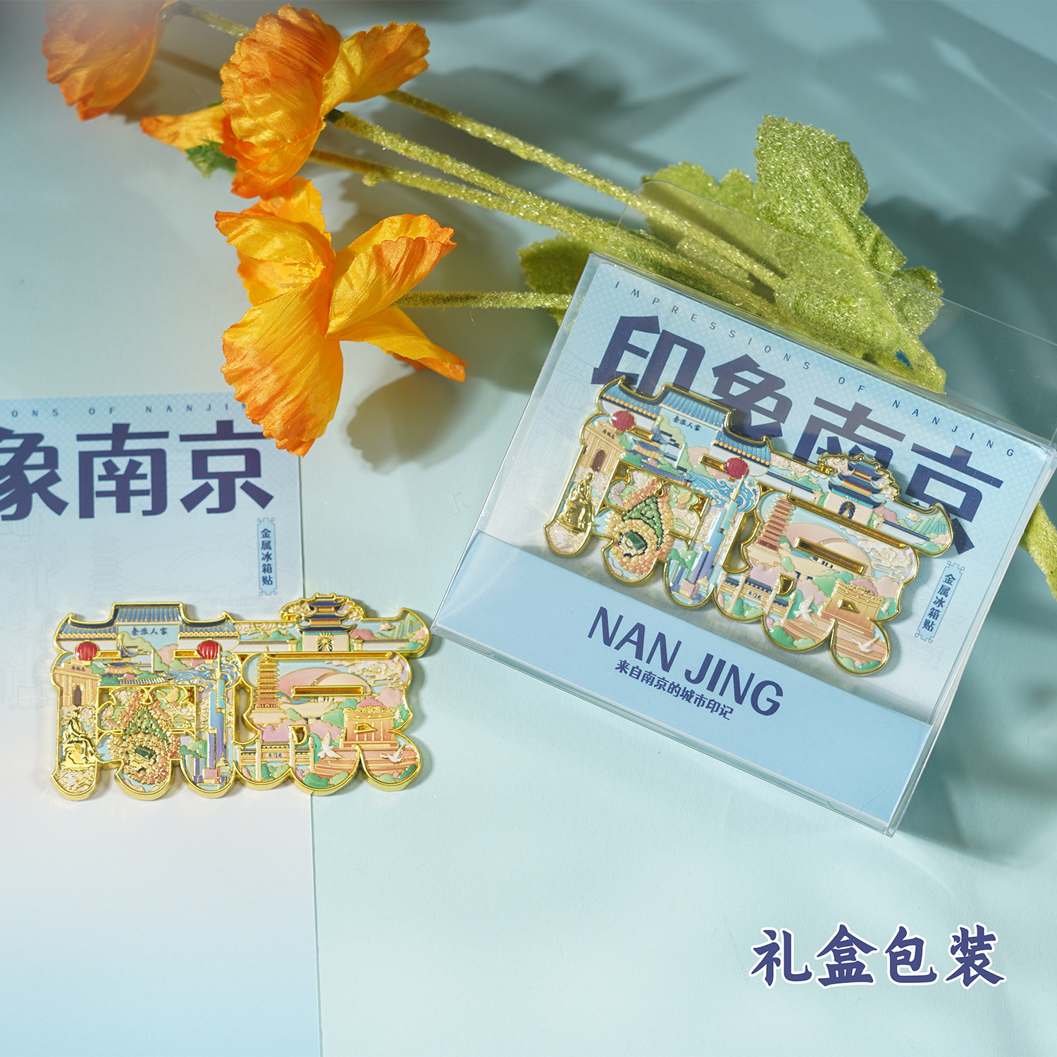 Nanjing City Refrigerator Sticker Scenic Area Cultural and Creative Companion Gift Qinhuai River Jiming Temple Commemorative Metal Refrigerator Sticker Wholesale