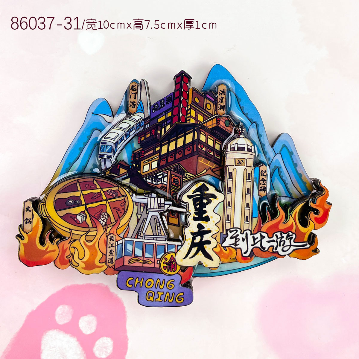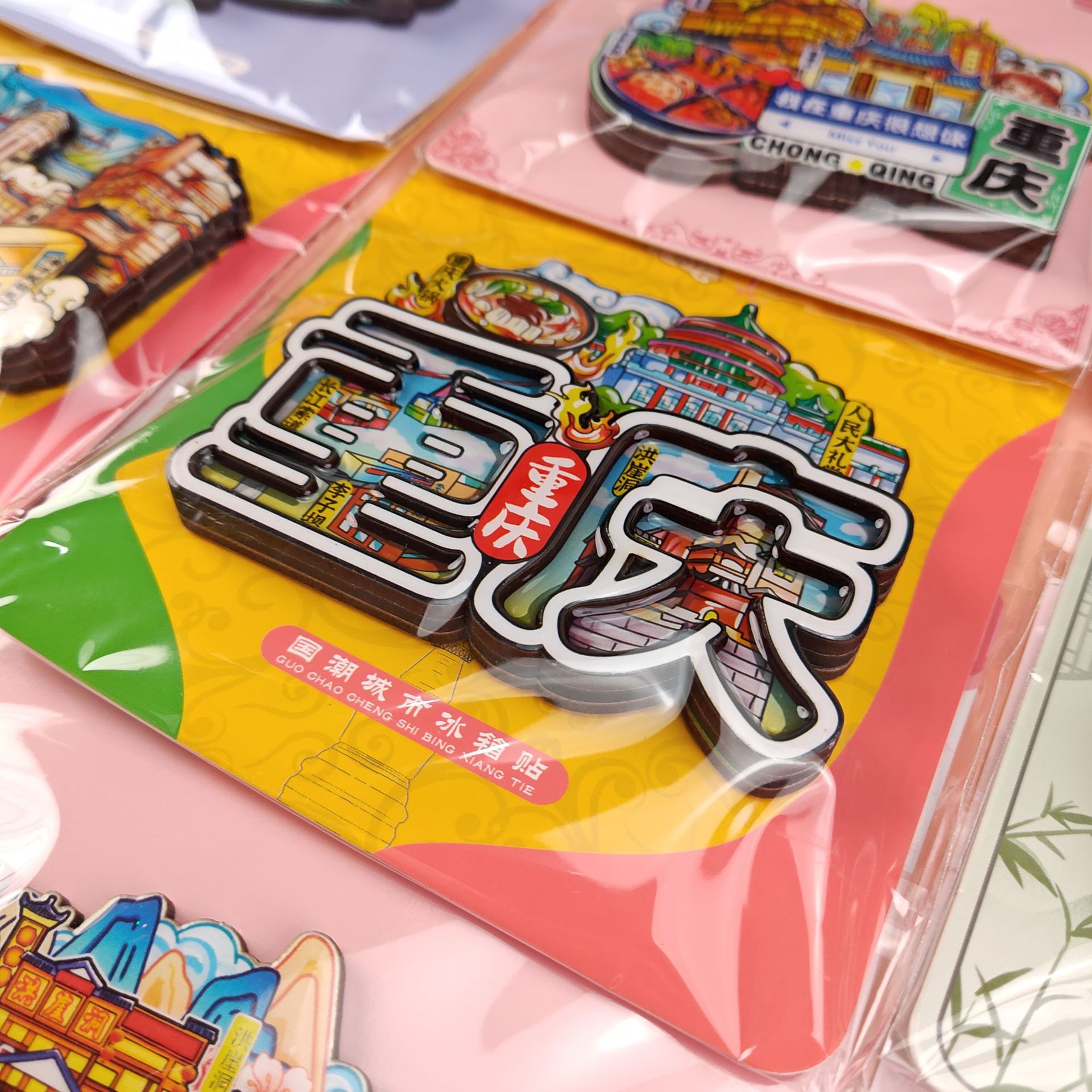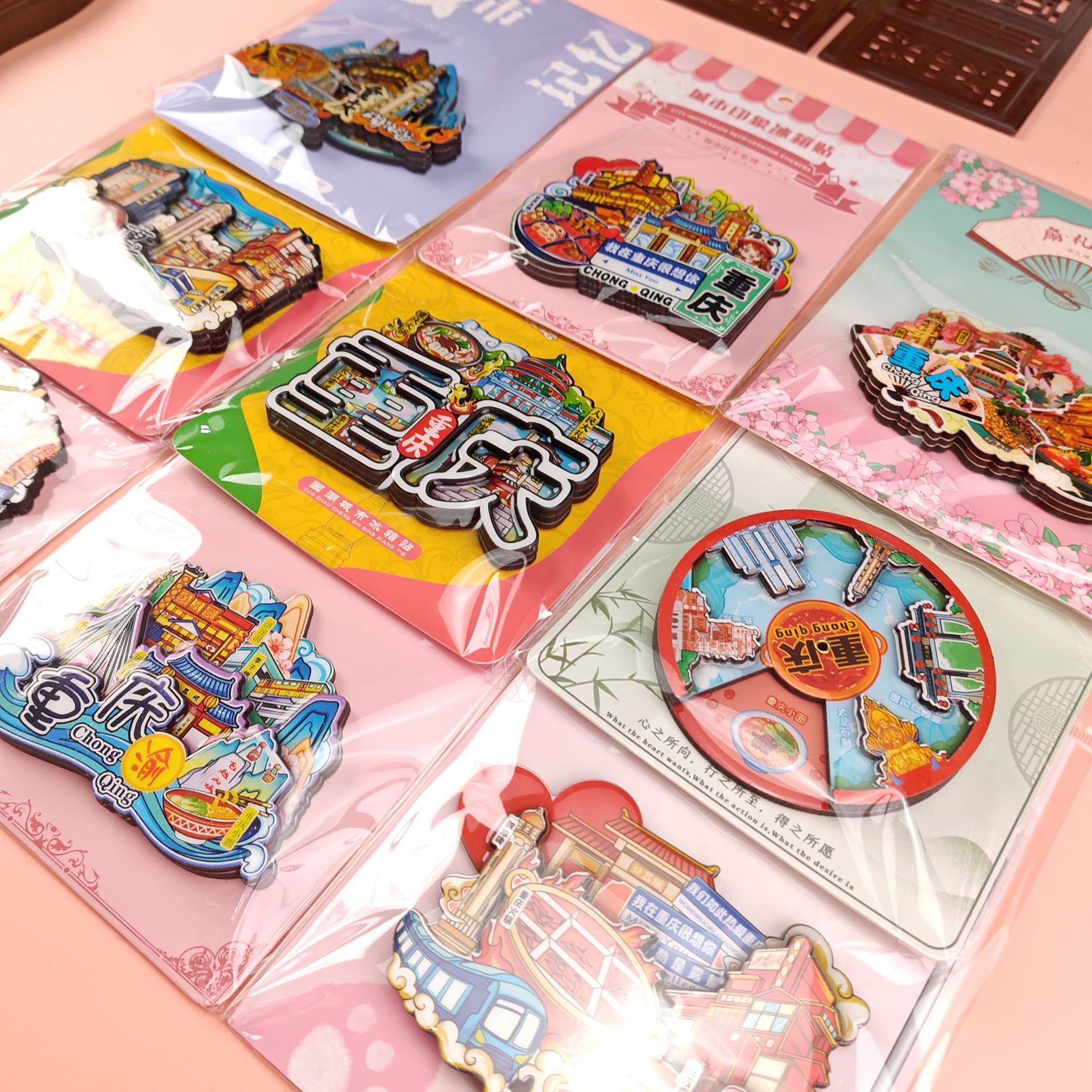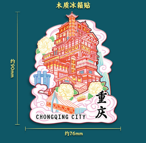 Чунцин Серия деревянных текстильных трехмерных магнитных холодильников наклеить креативный городской туристический сувенир холодильник наклеить оптом